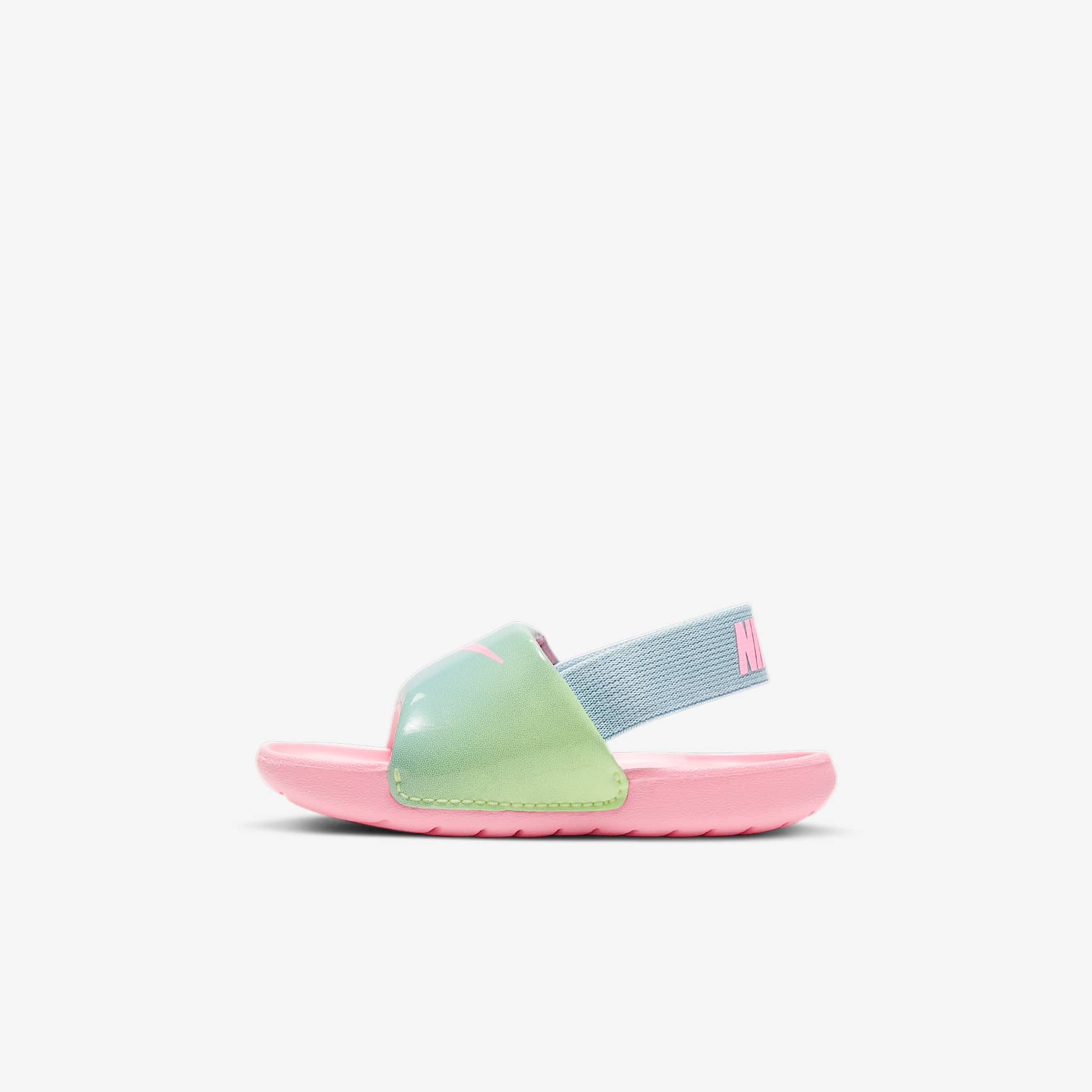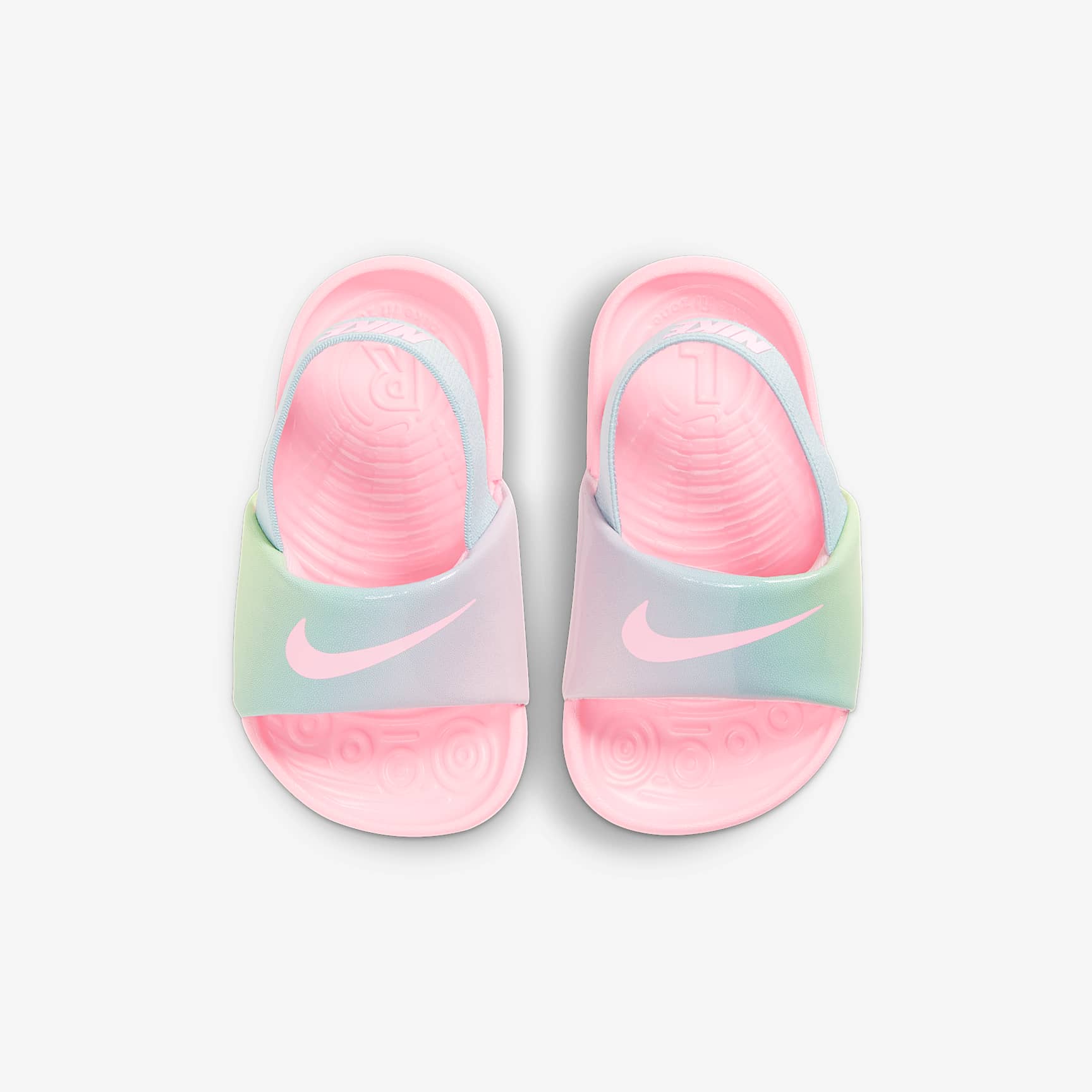 SLIDE INTO FUN. The Nike Kawa Slide SE is an easy slip-on for your kiddo. Straps keep small feet from doing the kick-off dance. With plush comfort and awesome colours, little toes can stay comfy all day. Strapped-In and Secure A soft, stretchy strap around the heel provides a secure fit. The top strap is durable and easy to clean. Foamy Feel Soft foam footbed is flexible and comfy. Thoughtful Design Hidden seams help prevent rubbing against little feet.