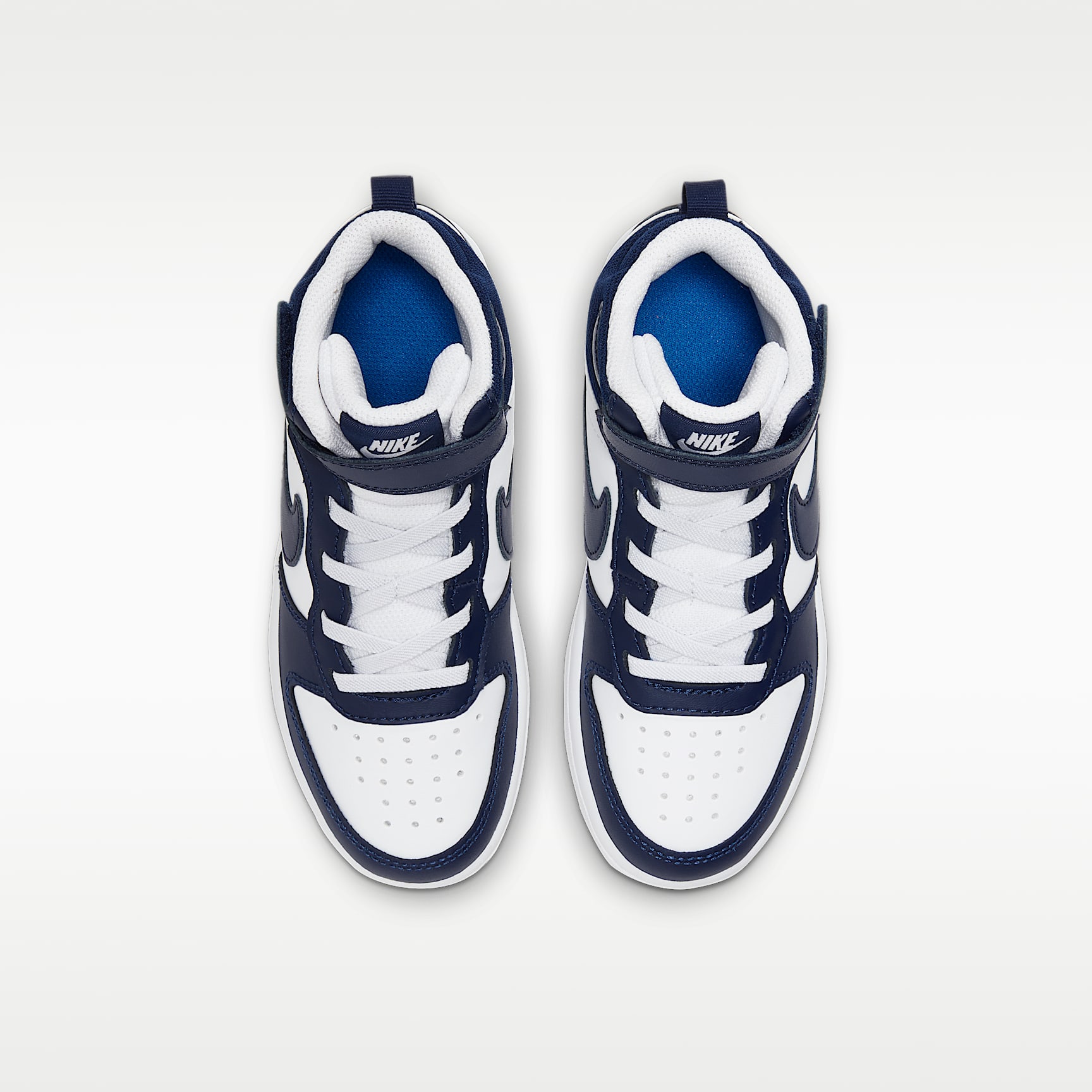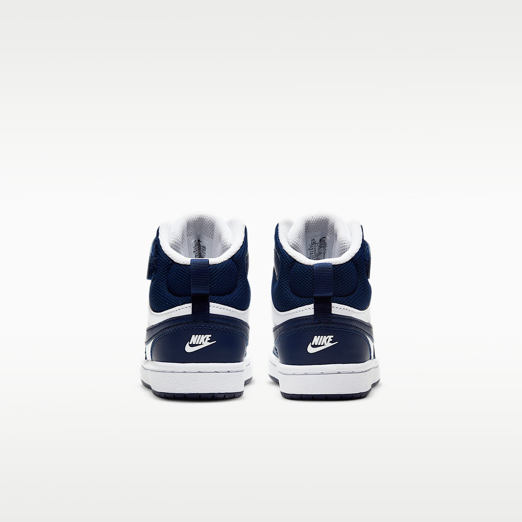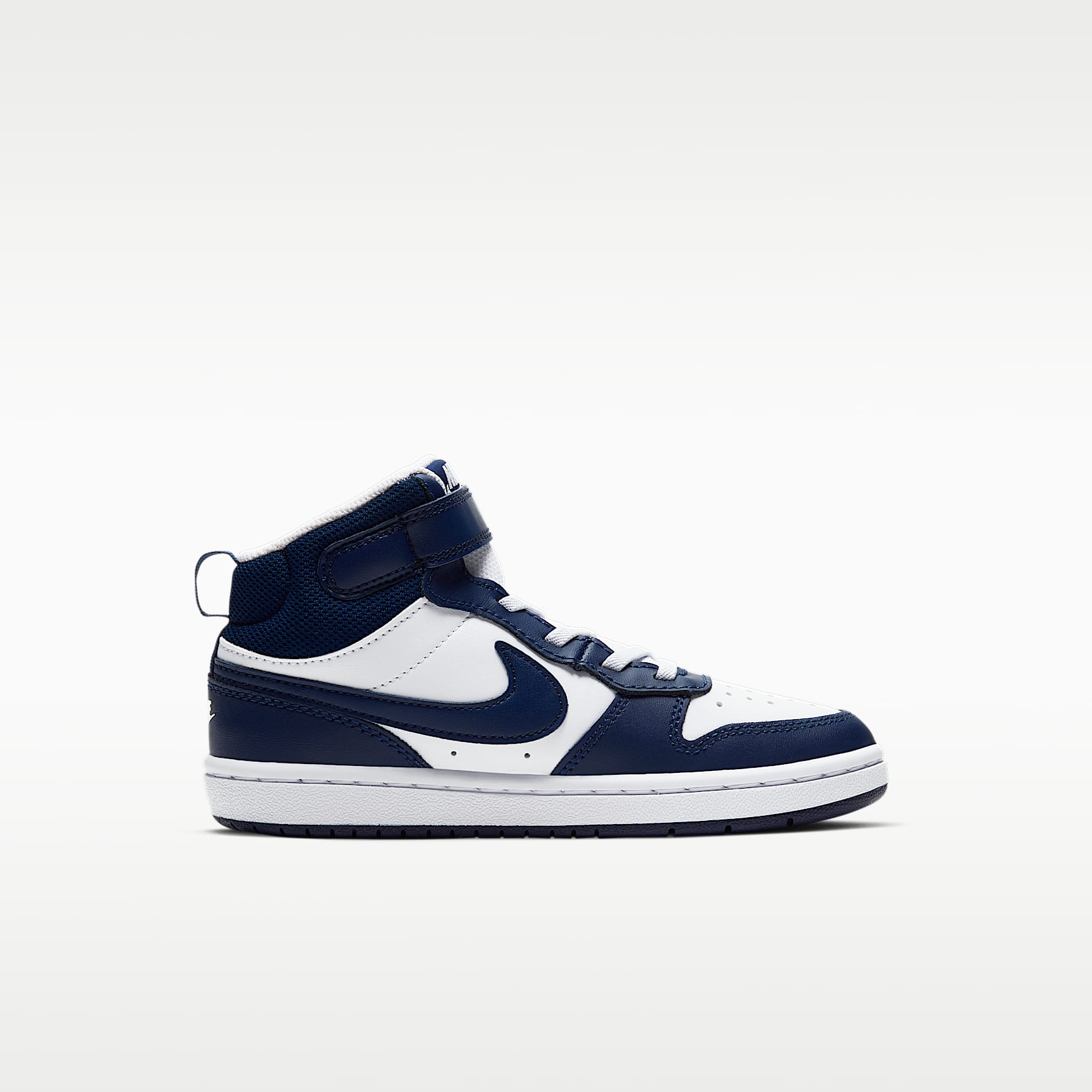 ALL-STAR COMFORT. Your little one will feel like an all-star off the court with the Nike Court Borough Mid 2. The classic mid-top design features durable leather for a premium look and feel. A hook-and-loop strap makes it easy to take the shoe on and off. Built to Last Leather gives a classic feel that's durable and easy to clean. Easy On, Easy Off Elastic laces with a hook-and-loop strap make it easy to take the shoe on and off. All-Day Traction A full-length rubber sole provides durable traction where you need it. Plus, an "all-day play" graphic is stamped on. Product Details * Cupsole construction for a classic look and feel * Extra padding around the ankle and tongue