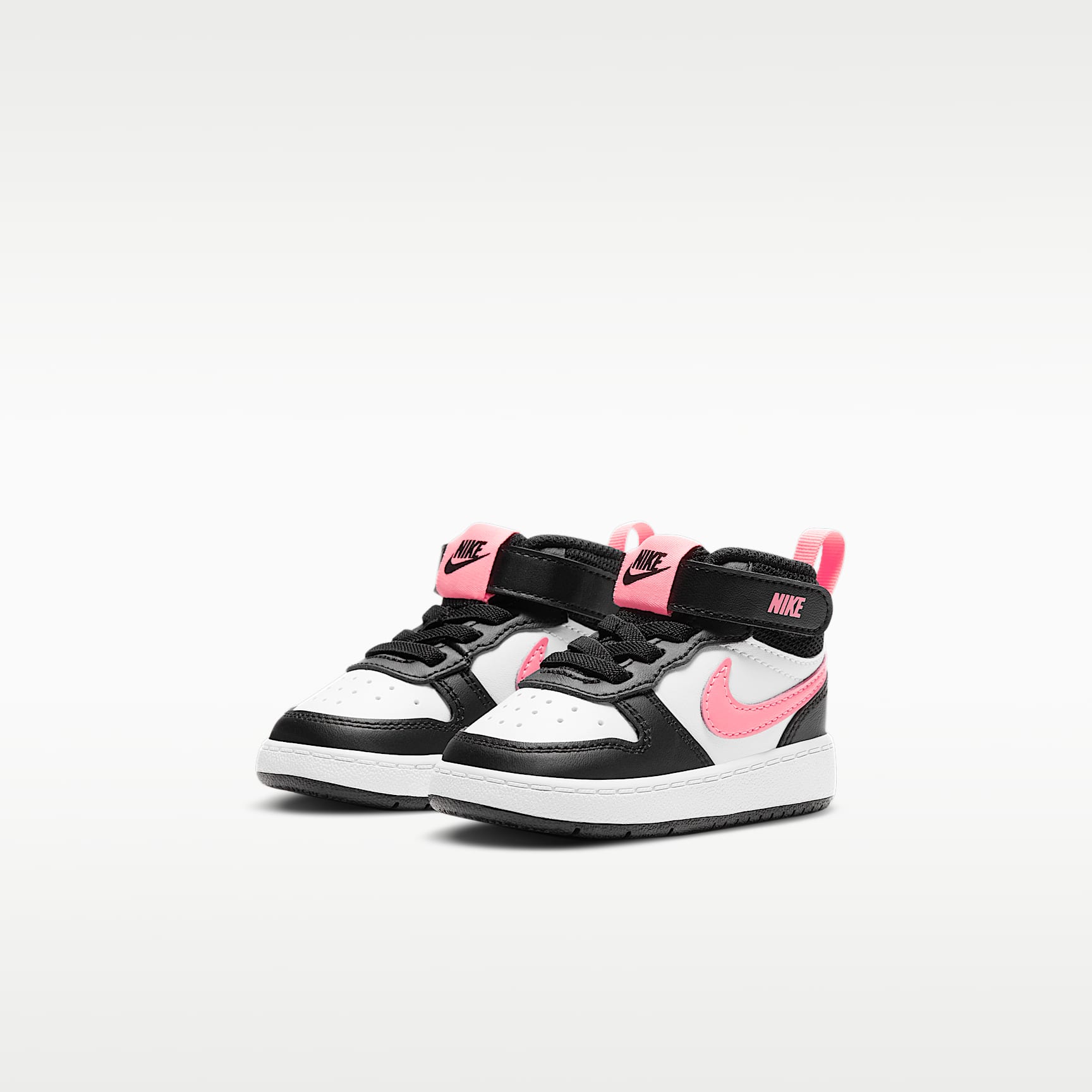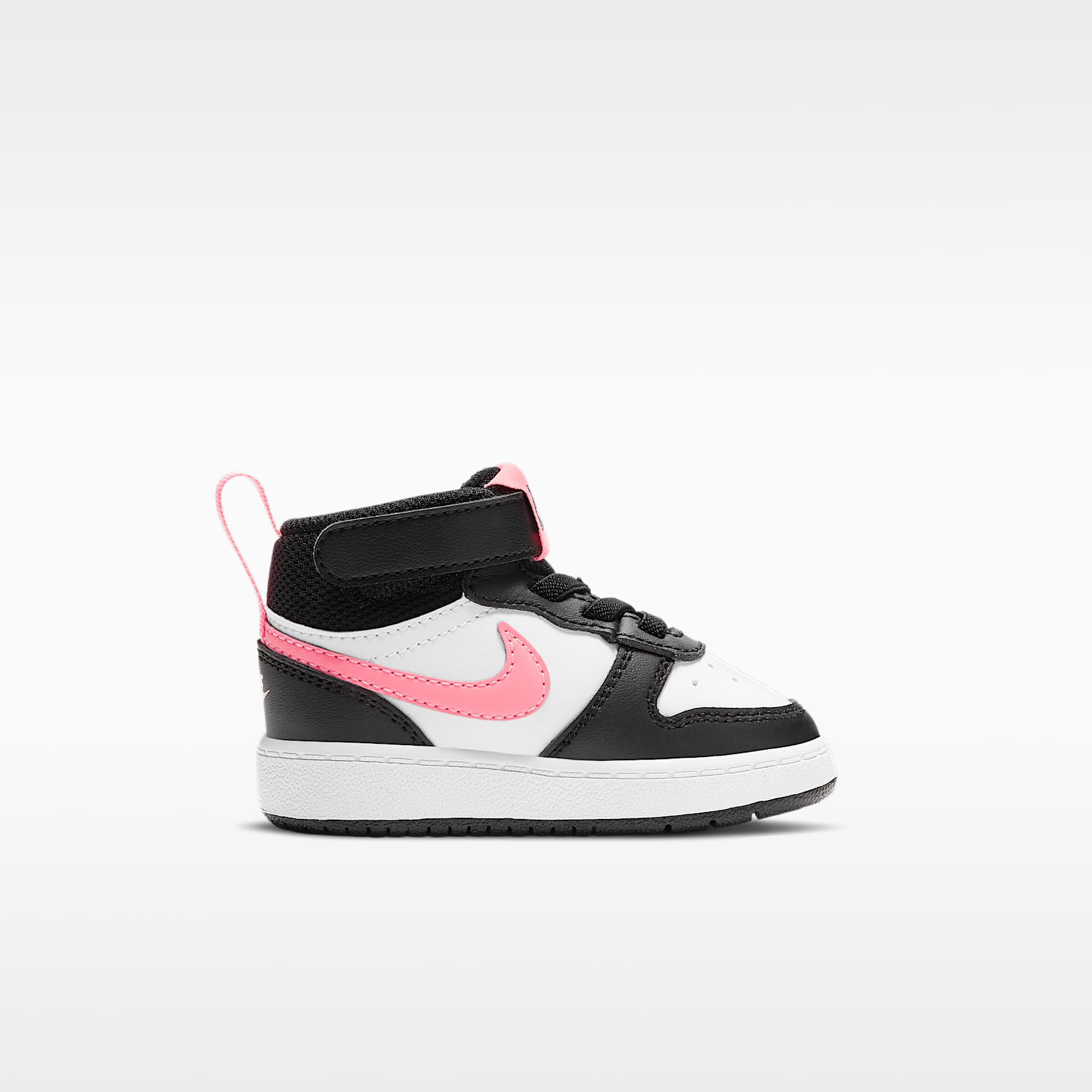 ALL-STAR COMFORT. Your little one will feel like an all-star off the court with the Nike Court Borough Mid 2. The classic mid-top design features durable leather for a premium look and feel. A hook-and-loop strap makes it easy to take the shoe on and off. Benefits * Leather is durable and easy to clean. * Elastic laces and a hook-and-loop strap make it easy to take the shoe on and off. * Padding around the tongue and ankle provide extra comfort. * Grooves in the sole make it flexible. Product Details * Cupsole construction for a classic look and feel