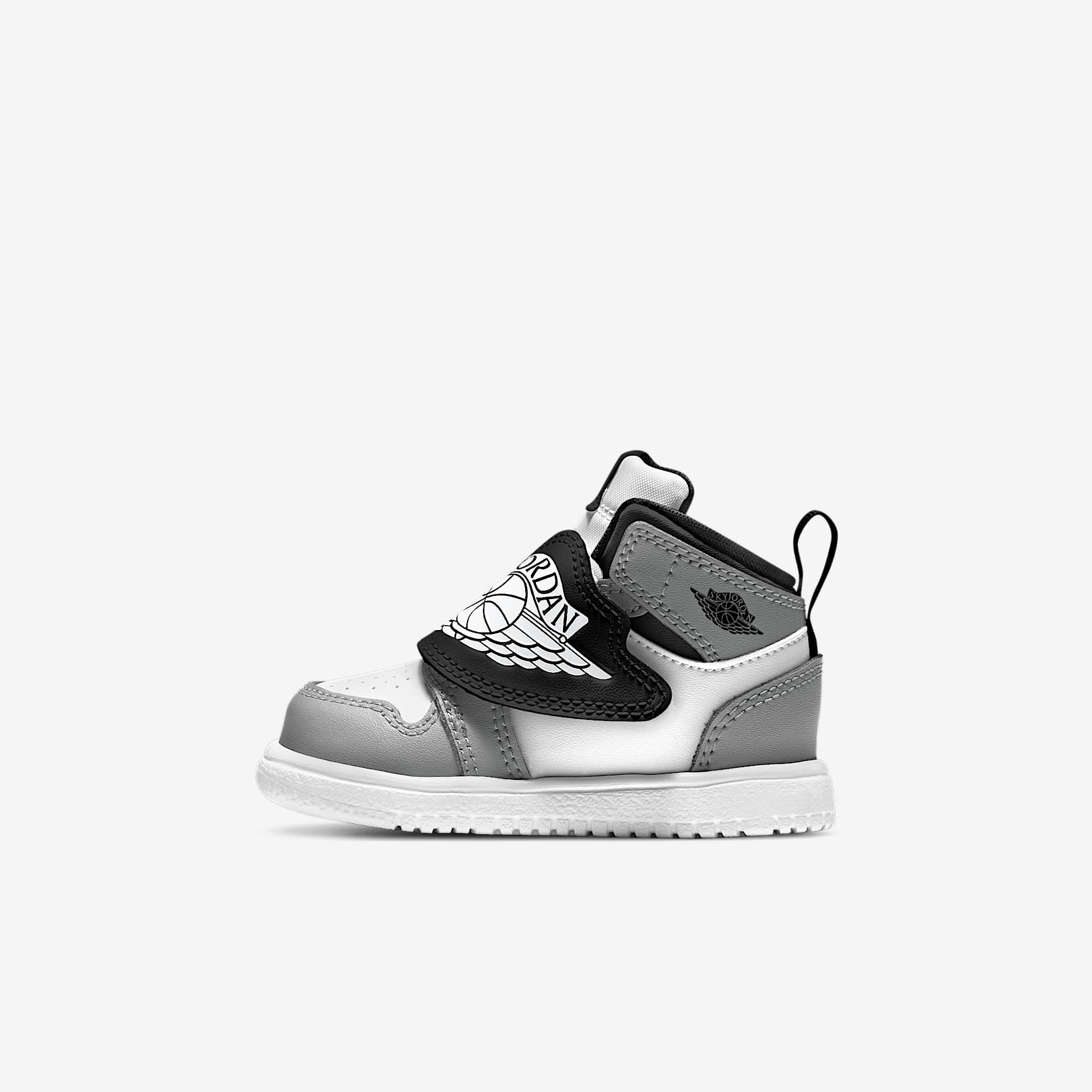 A KIDS' ORIGINAL INSPIRED BY MJ'S FIRST SHOE. Inspired by the AJ1, the Sky Jordan 1 is equal parts iconic and adorable. It has soft foam cushioning, durable traction and a hook-and-loop strap for easy on and off. Benefits * The real and synthetic leather materials have a classic look and feel. * A "Sky Jordan" logo on front doubles as a hook-and-loop strap to secure the fit. * The soft foam cushions little feet. * A durable sole provides traction. Product Details * Pull tab