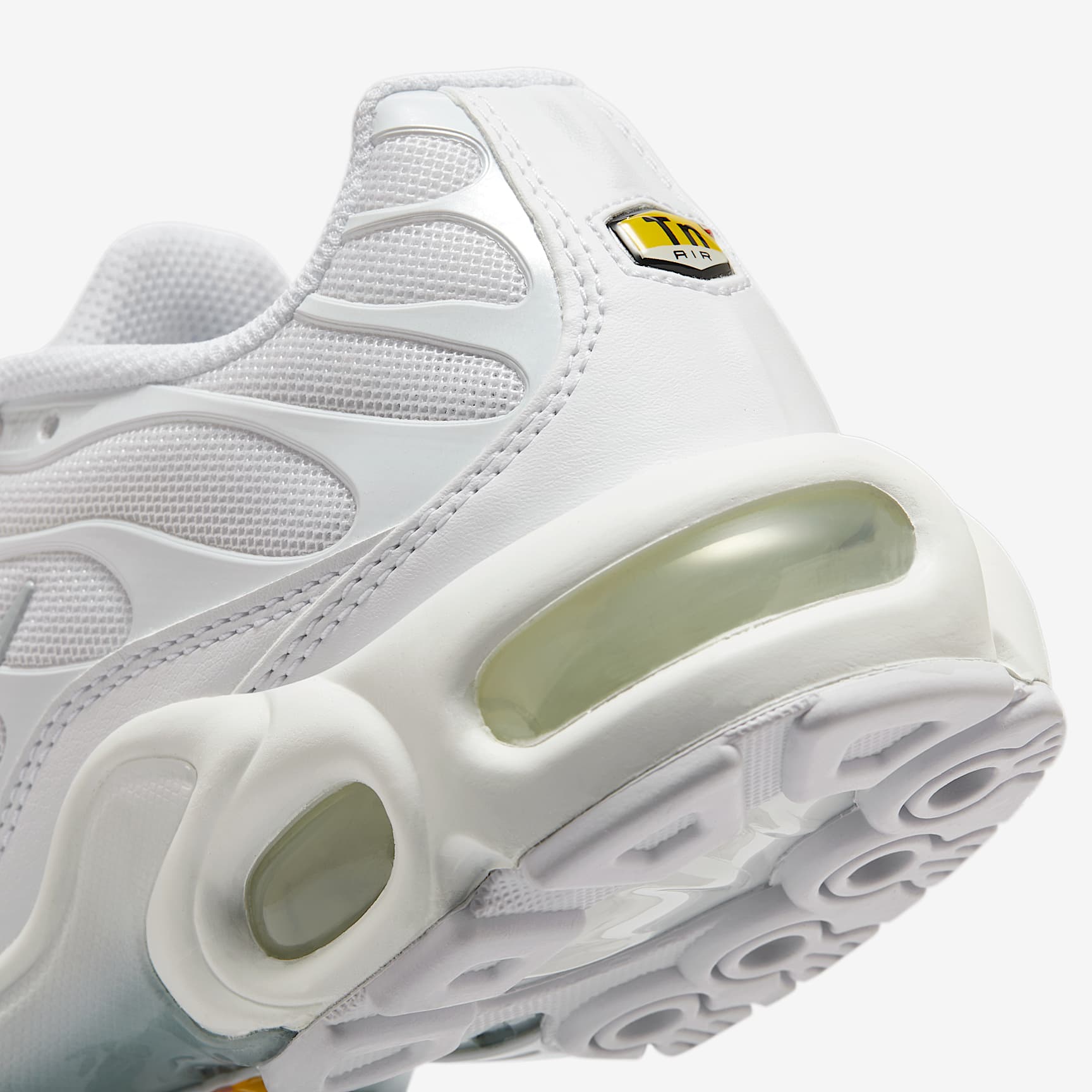 REBELLIOUS AIR. Let your attitude have the edge in the Nike Air Max Plus, a tuned Air experience that offers premium stability and unbelievable cushioning. Featuring airy mesh, the original wavy design lines and polished TPU accents on the toe and sides, it celebrates your defiant style. Benefits * Synthetic upper features airy mesh for lightweight comfort and durability. * Originally designed for performance running, Nike Air units provide lightweight cushioning that lasts. * Bringing beach life to the city, the prominent TPU arch draws inspiration from a whale's tail and adds structure while the iconic TPU fingers on the sides nod to palm trees and ocean waves. * Padded, low-top collars looks sleek and feels great. * Reinforced toe tip for added durability. Product Details * Rubber outsole * Visible Air * Not intended for use as Personal Protective Equipment (PPE) Nike Air Max Origins Revolutionary Air technology first made its way into Nike footwear in 1978. In 1987, the Air Max 1 debuted with visible Air technology in its heel, allowing fans more than just the feel of Air cushioning—suddenly they could see it. Since then, next-generation Air Max shoes have become a hit with athletes and collectors by offering striking color combinations and reliable, lightweight cushioning.