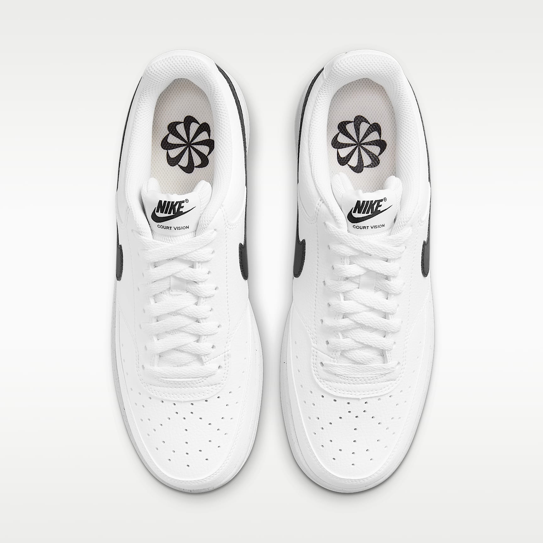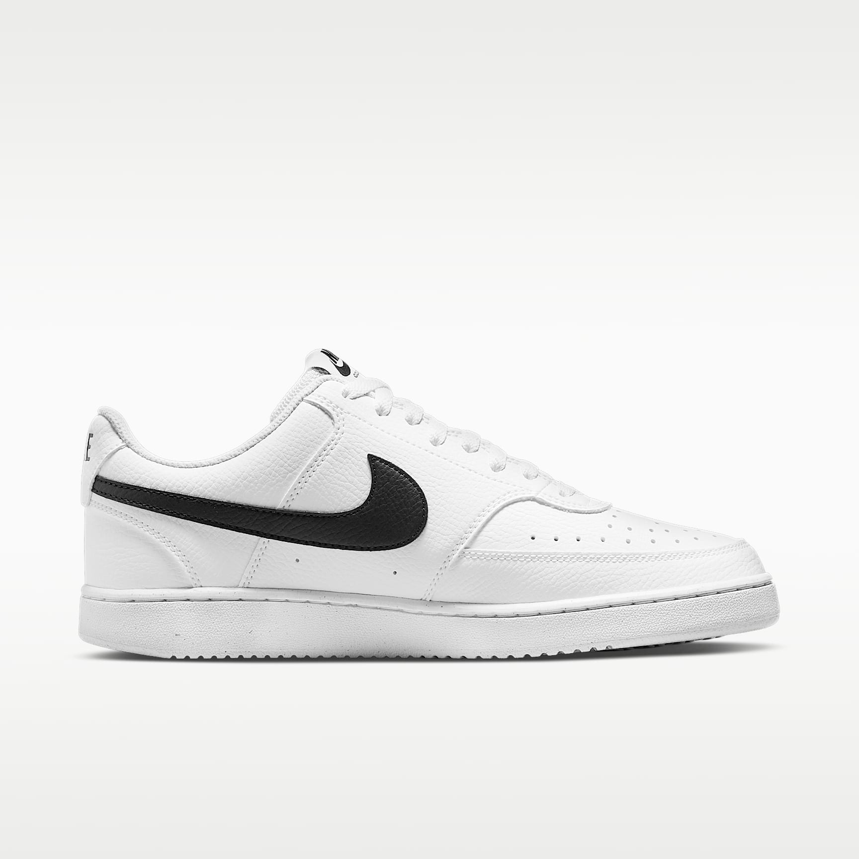 FRESH OFF THE COURT. In love with the classic look of '80s basketball but have a thing for the fast-paced culture of today's game? Meet the Nike Court Vision Low. A classic remixed with at least 20% recycled materials by weight, its crisp upper and stitched overlays keep the soul of the original style. The plush, low-cut collar keeps it sleek and comfortable for your world. Benefits * Made from at least 20% recycled material by weight. * Using synthetic materials, the design features materials that echo mid-1980s basketball shoes. * Padded, low-cut collar looks sleek and feels great while the perforations on the toe and sides add comfort and breathability. Product Details * Perforations on the toe and sides * Rubber outsole