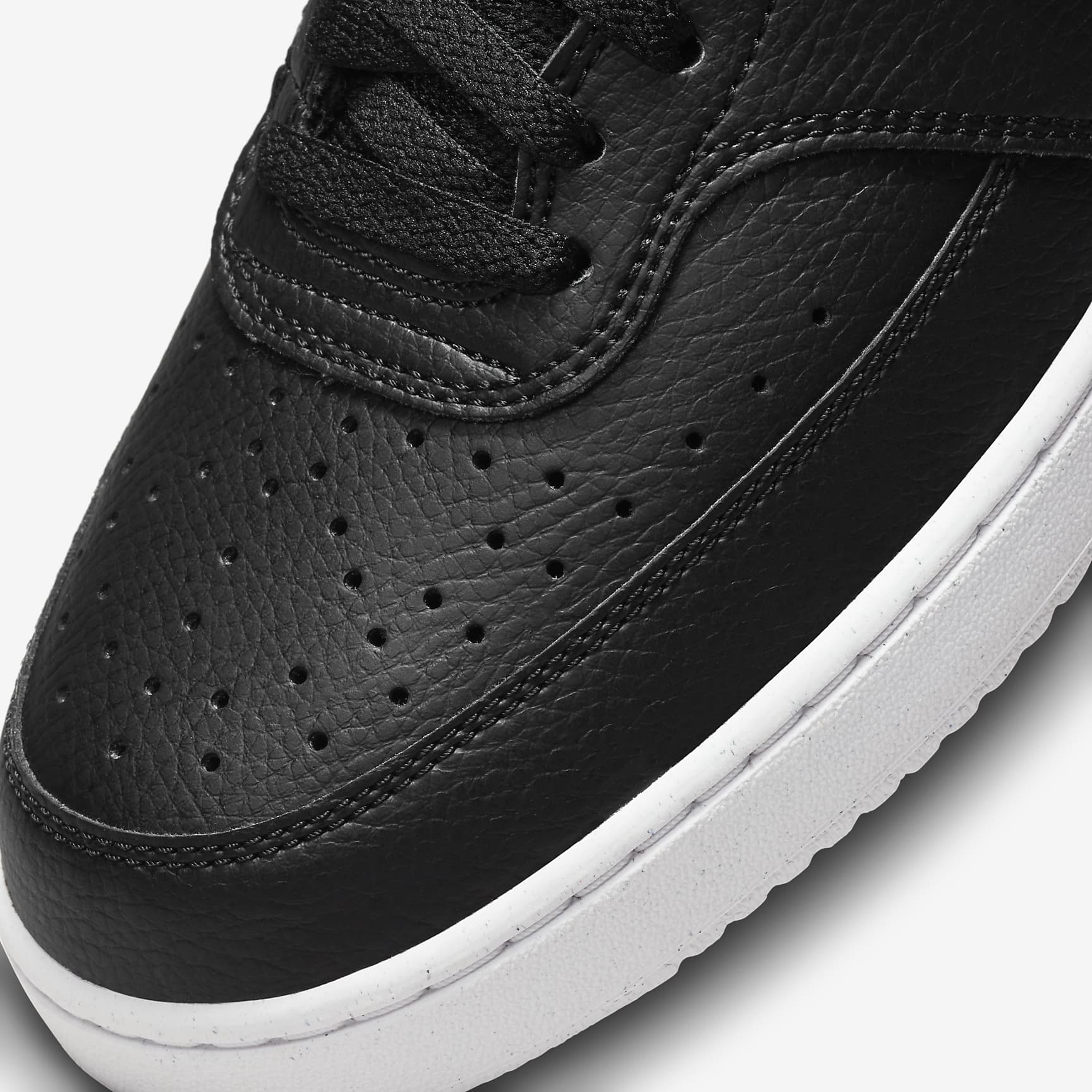 FRESH OFF THE COURT. In love with the classic look of '80s basketball but have a thing for the fast-paced culture of today's game? Meet the Nike Court Vision Low. A classic remixed with at least 20% recycled materials by weight, its crisp upper and stitched overlays keep the soul of the original style. The plush, low-cut collar keeps it sleek and comfortable for your world. Benefits * Made from at least 20% recycled material by weight. * Whenever you see the Nike Sunburst or the name Next Nature (NN), you see one more step on our journey towards zero carbon and zero waste. * Using synthetic materials, the design features materials that echo mid-1980s basketball shoes. * Padded, low-cut collar looks sleek and feels great while the perforations on the toe and sides add comfort and breathability. Product details * Perforations on the toe and sides * Rubber outsole
