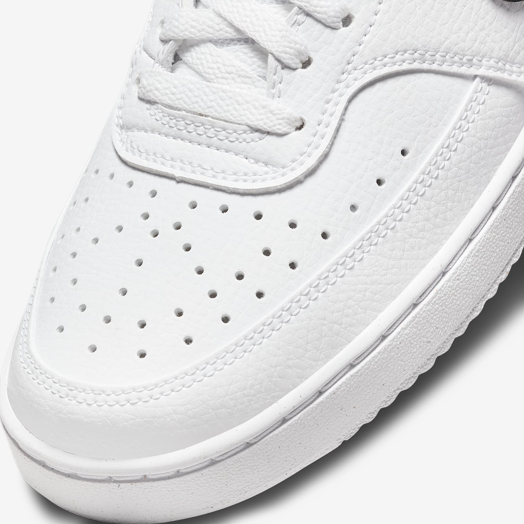 FRESH OFF THE COURT. In love with the classic look of '80s basketball but have a thing for the fast-paced culture of today's game? Meet the Nike Court Vision Low Next Nature. Made from at least 20% recycled materials by weight, its crisp upper and stitched overlays are inspired by the days of hook-shots and tube socks. The padded collar and rubber outsole bring comfort and traction for your world. Benefits * Made from at least 20% recycled material by weight. * Whenever you see the Nike Sunburst or the name Next Nature (NN), you see one more step on our journey towards zero carbon and zero waste. * Using synthetic materials, the design features materials that echo mid-1980s basketball shoes. * Padded, low-cut collar looks sleek and feels great while the perforations on the toe and sides add comfort and breathability. * Vulcanised construction fuses the outsole to midsole for a streamlined look that's durable and comfortable. Product details * Perforations on the toe and sides * Rubber outsole