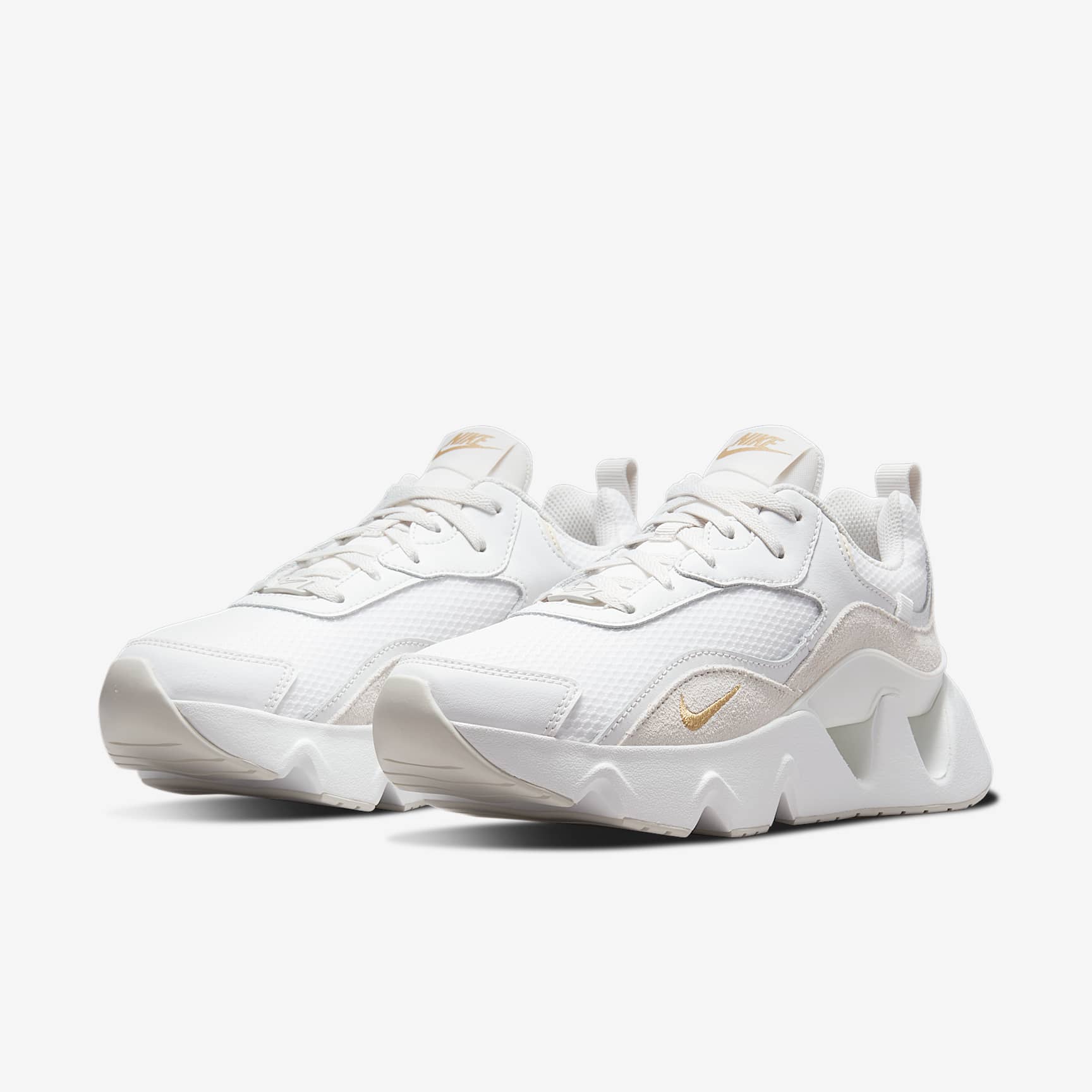 FASHION STARTS FROM THE FEET. The Nike RYZ 365 2 brings you a futuristic take to classic '90s sneakers. The eye-catching midsole with stylized cutouts modernizes the chunky style with an airy aesthetic. A rich mixture of materials on the upper adds texture and style versatility. To top it off, the DIY lacing lets you personalize your style—wrap under the midsole or through webbing on the side and heel for a delicate touch to your bold look. Benefits * The incredibly soft and eye-catching midsole features see-through cutouts, modernizing the '90s sneaker look with an airy aesthetic that feels great. * The 2 sets of lacing let you personalize your style—wrap under the midsole or through the webbing details on the sides and heel. The DIY look can even be wrapped up and around your ankle. * The upper combines a rich mixture of materials like airy mesh, durable leather and stylized webbing. * The TPU plate above the midsole cutouts looks sporty, adds support and gives you a flash of that ‘90s style you love. * The padded, low-cut collar looks sporty and feels comfortable. Product Details * Large, triangular flex grooves in sole help you move naturally * The rubber sole adds traction and durability * Embroidered Swoosh design * Pull tab on heel