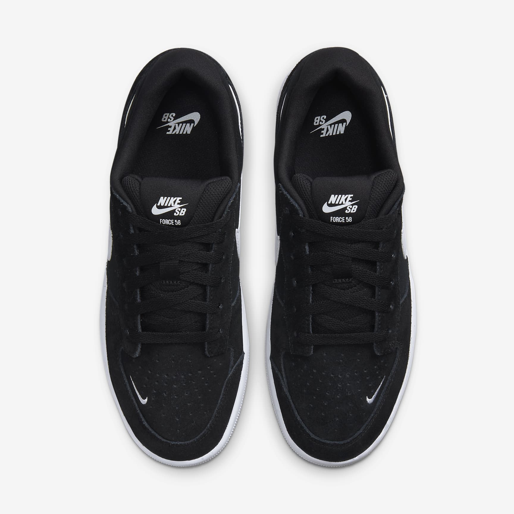 FEEL THE FUTURE OF CUPSOLE. The latest and greatest innovation to hit the streets, the Nike SB Force 58 gives you the durability of a cupsole with the flexibility of a vulcanised shoe. Made from canvas and suede and finished with perforations, the whole look is infused with heritage basketball DNA. Basketball DNA Suede and canvas are the perfect pairing of durability and breathability. The perforations and Swoosh on the toe are a nod to heritage basketball styles. New Cupsole The new design delivers the durability of a cupsole with the flexibility you need to reduce break-in time and maximise skate days. Tri-star shapes on the sole expand and contract for better grip and boardfeel straight out of the box. Secure Fit A stretchy internal gusset hugs your foot to help keep your shoe on if your laces blow out.