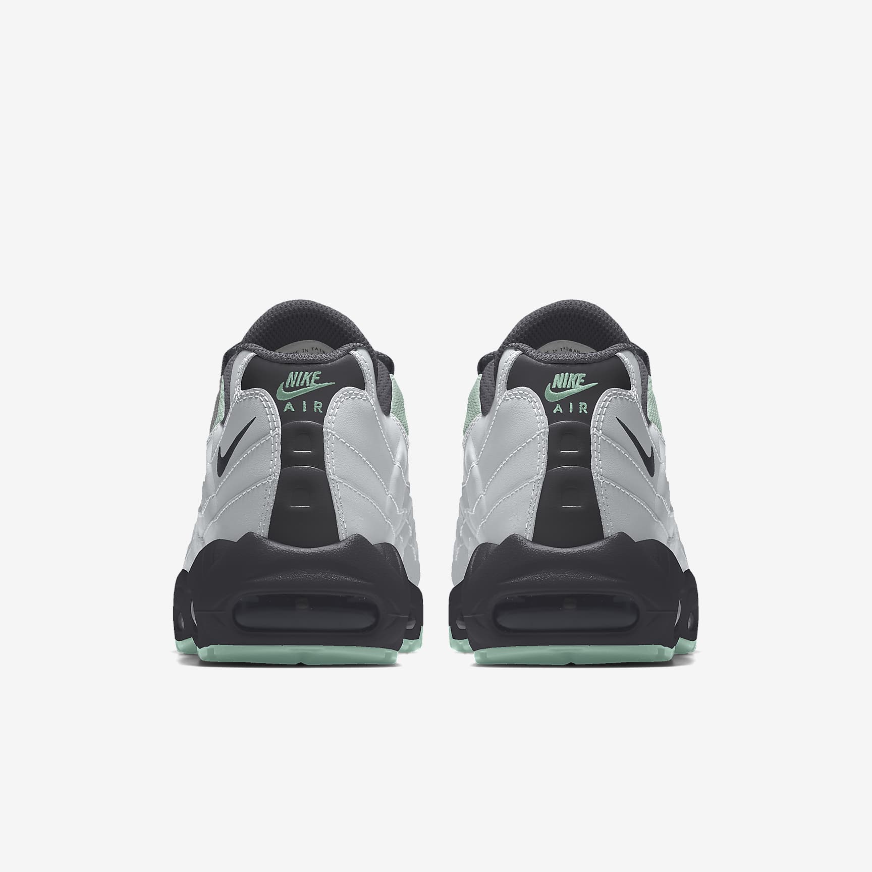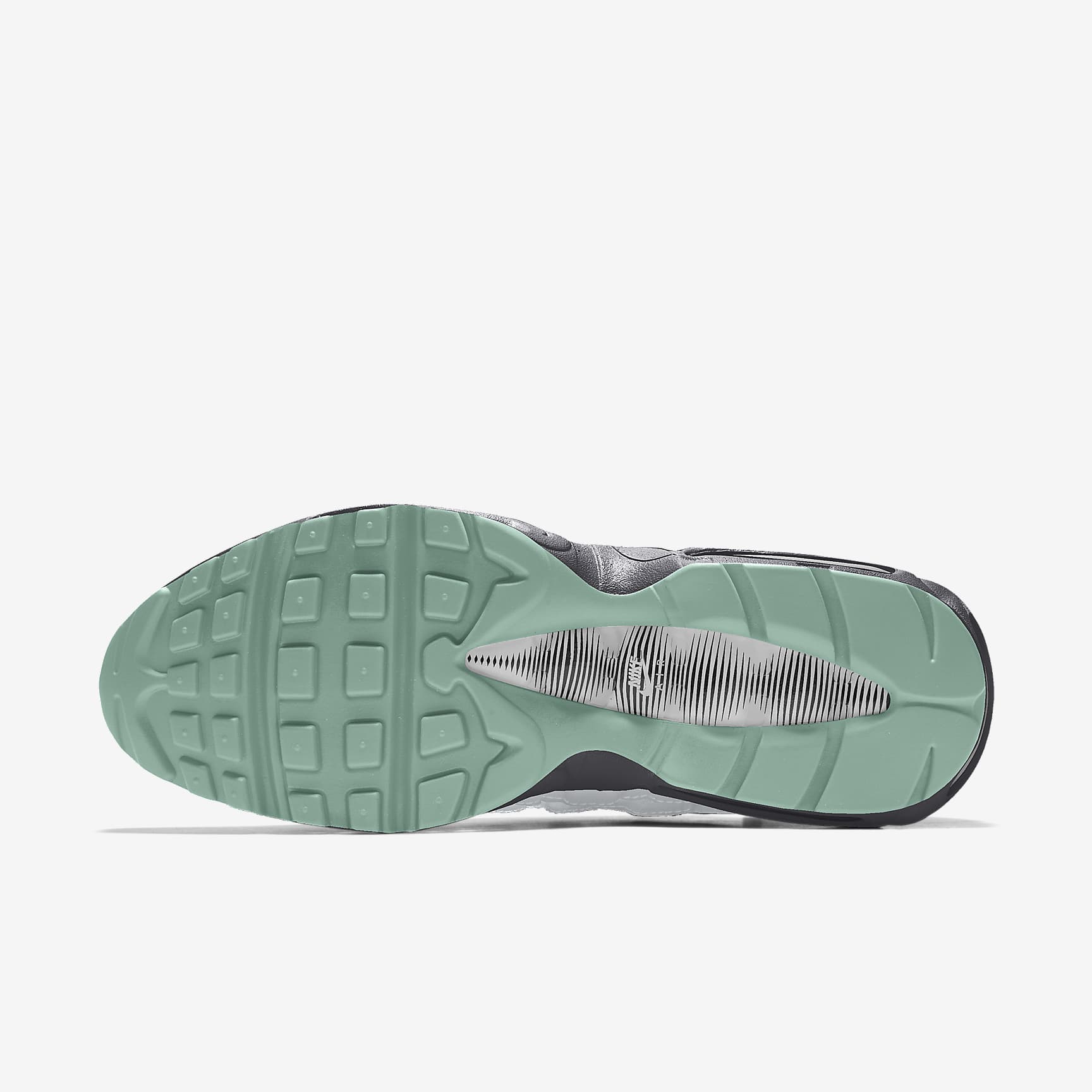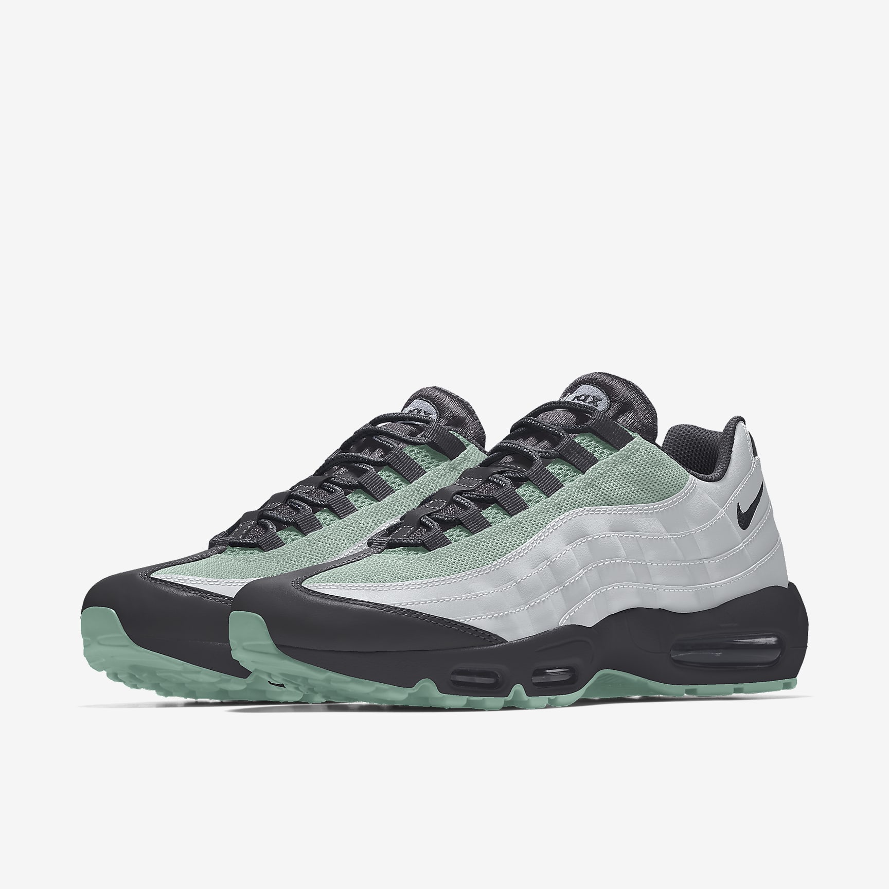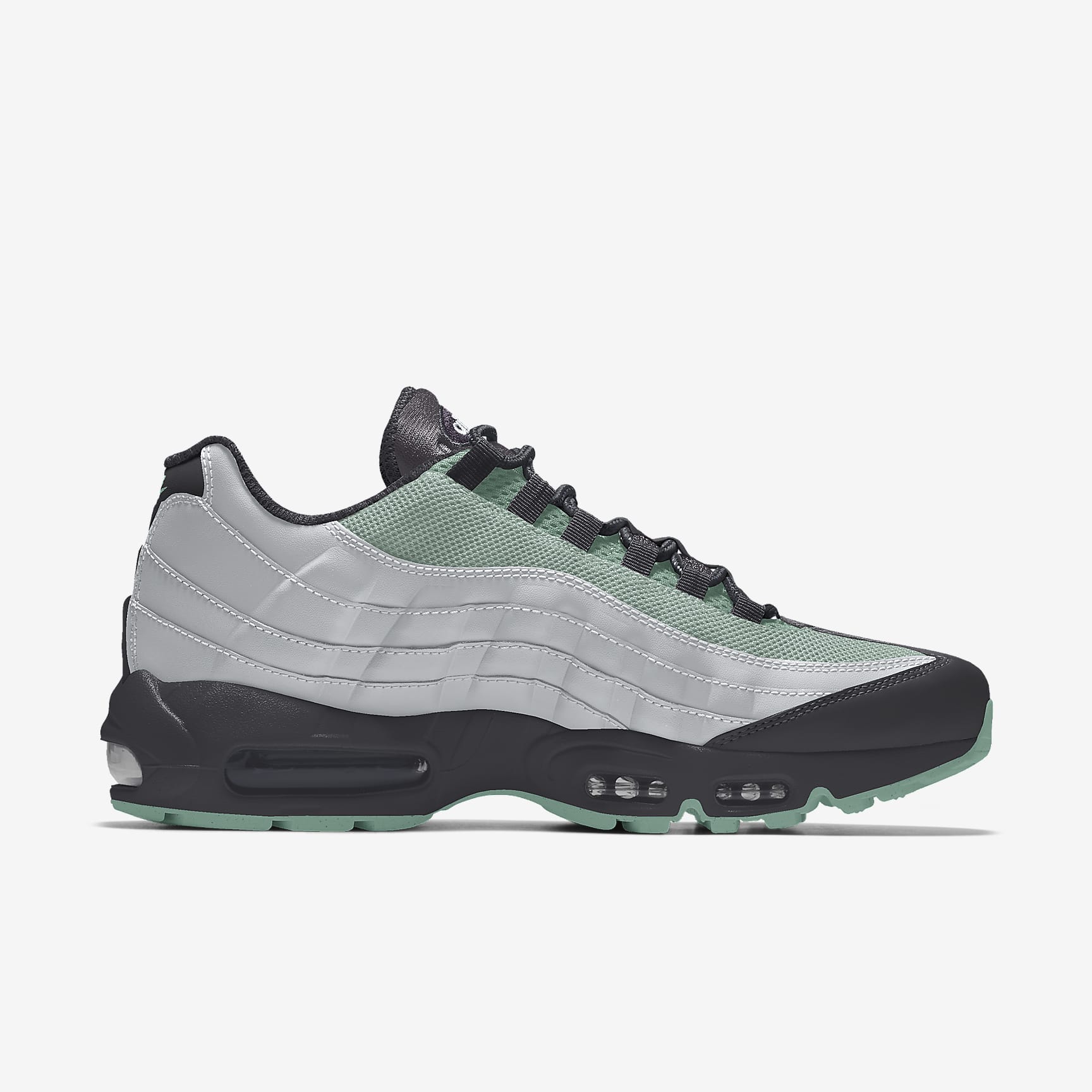 WORK IN PROGRESS. Celebrate workwear's wide appeal with a new take on the Nike Air Max 95 By You. Utilitarian materials like polished twill and leather are rugged and durable with an undeniable nod to runway style. Perfectly understated details like contrast stitching and gradient layers add a new level of depth to this long-time favourite. Back To Work The workwear world crosses over with style inspiration from the '00s with durable materials like polished twill that has the slightest shine or classic leather for the iconic layers. Subtlety at Its Best You have to look closely to appreciate the tonal and flooded colour plays designed for this shoe. The optional contrast stitching gives novice and professional designers an opportunity to let their stylistic sensibilities shine. Unmistakeable Pride Add a personalised message with up to 3 characters on each heel or keep the original "Air" logo. More Benefits * The AM95 was inspired by the components of the human body and its fine-tuned integration of form and function. * Originally developed for performance running, visible Nike Air cushioning delivers all-day comfort. * The OG lacing system was an innovative take on traditional laces, making it easy to put on and take off while also letting you personalise your fit. * A foam midsole has flex grooves for a comfortable feel that lets you move freely.