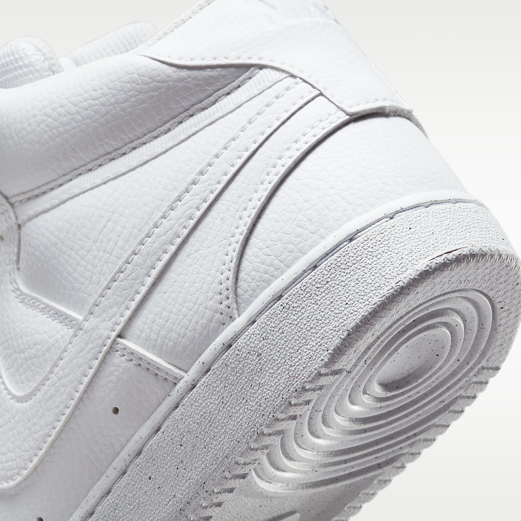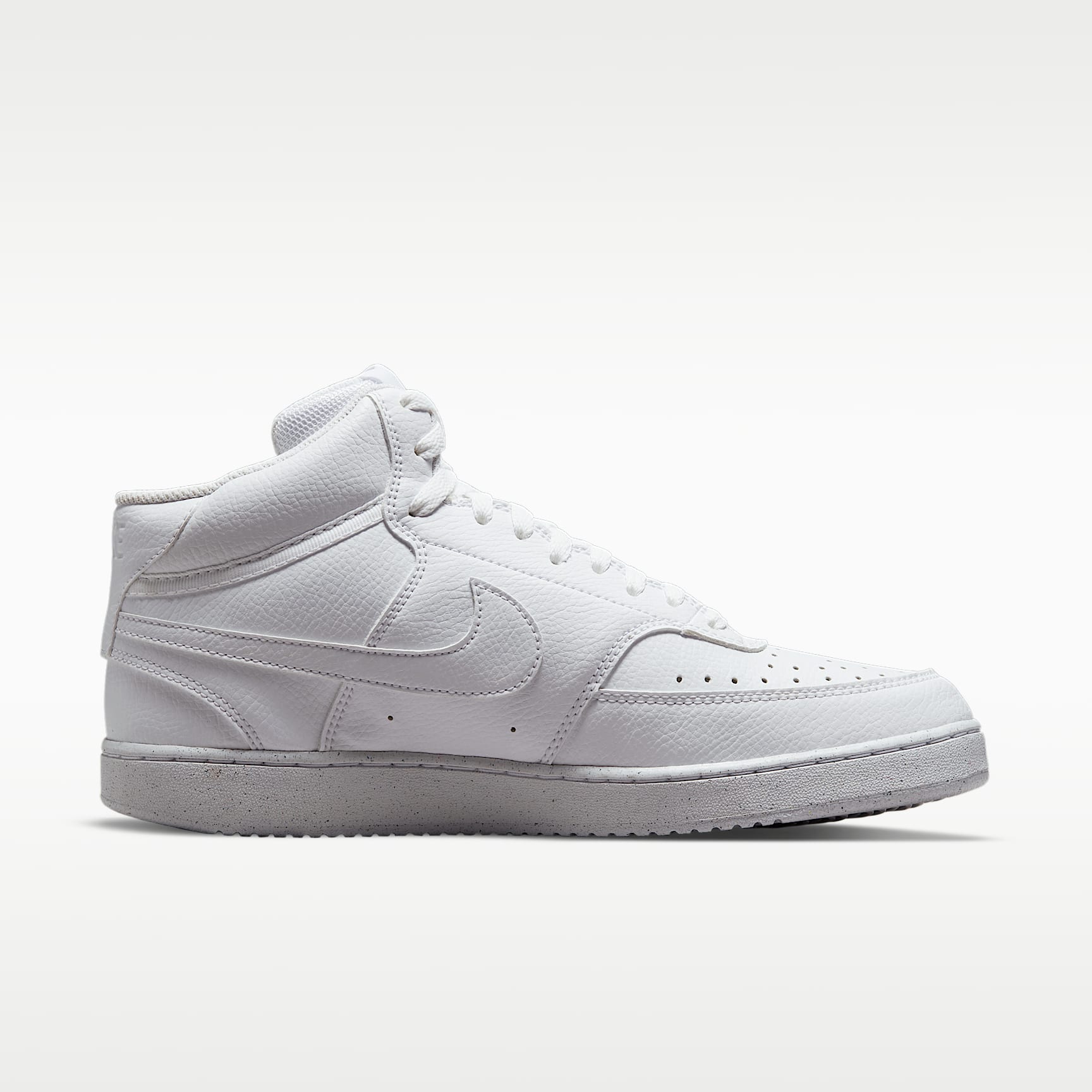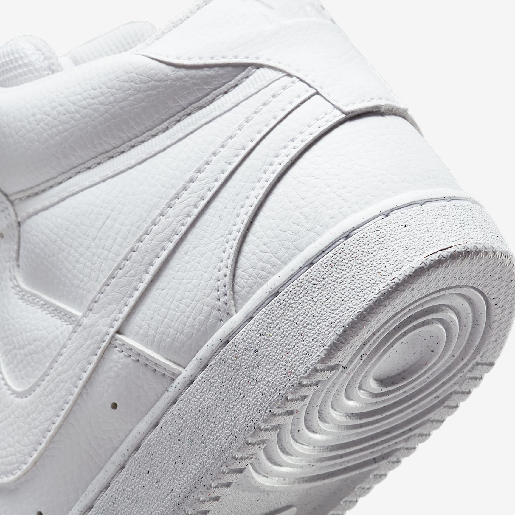 FRESH OFF THE COURT. In love with the classic look of '80s basketball but have a thing for the fast-paced culture of today's game?Meet the Nike Court Vision Mid.A classic remixed with at least 20% recycled materials by weight.We replaced leather with recycled and synthetic materials that keeps the soul of the original style.Its crisp upper and stitched overlays stays true to its origins.The plush collar keeps it sleek and comfortable for your world. Benefits * Made from at least 20% recycled material by weight. * Using synthetic materials, the design features materials that echo mid-1980s basketball shoes. * Padded collar looks sleek and feels great while the perforations on the toe and sides add comfort and breathability.
