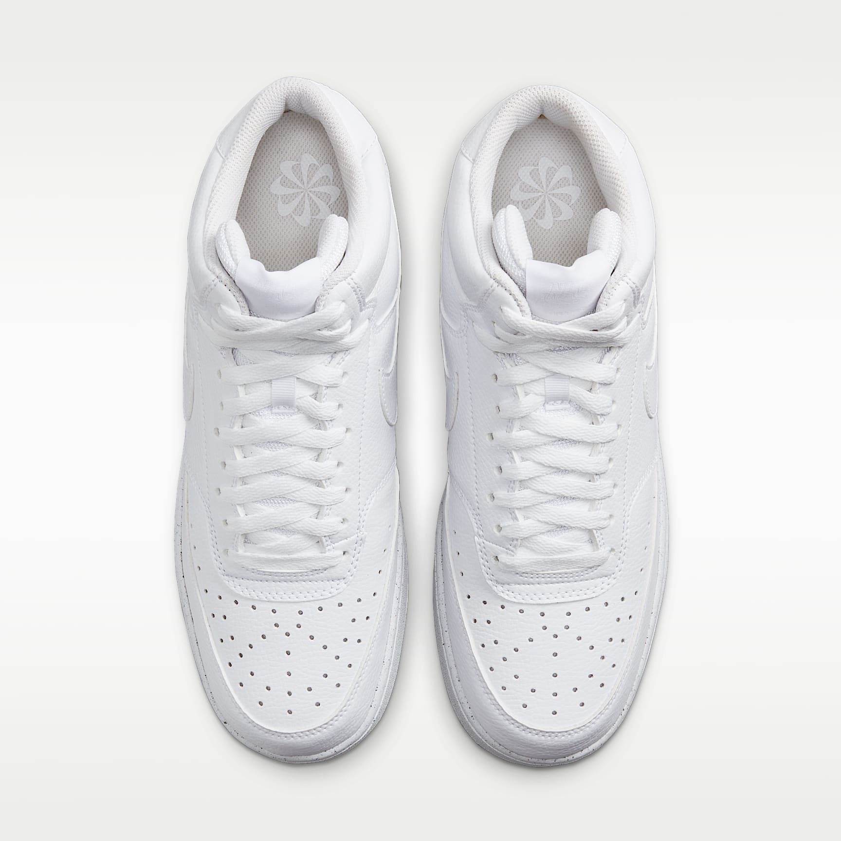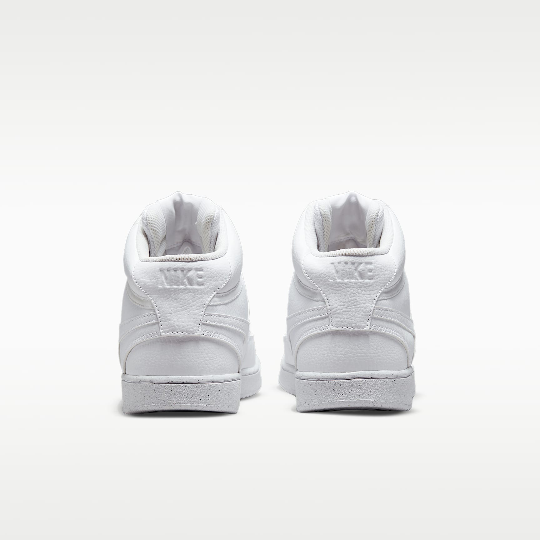 FRESH OFF THE COURT. In love with the classic look of '80s basketball but have a thing for the fast-paced culture of today's game?Meet the Nike Court Vision Mid.A classic remixed with at least 20% recycled materials by weight.We replaced leather with recycled and synthetic materials that keeps the soul of the original style.Its crisp upper and stitched overlays stays true to its origins.The plush collar keeps it sleek and comfortable for your world. Benefits * Made from at least 20% recycled material by weight. * Using synthetic materials, the design features materials that echo mid-1980s basketball shoes. * Padded collar looks sleek and feels great while the perforations on the toe and sides add comfort and breathability.