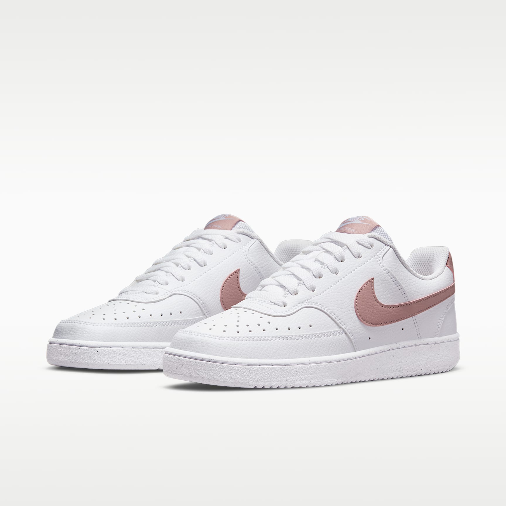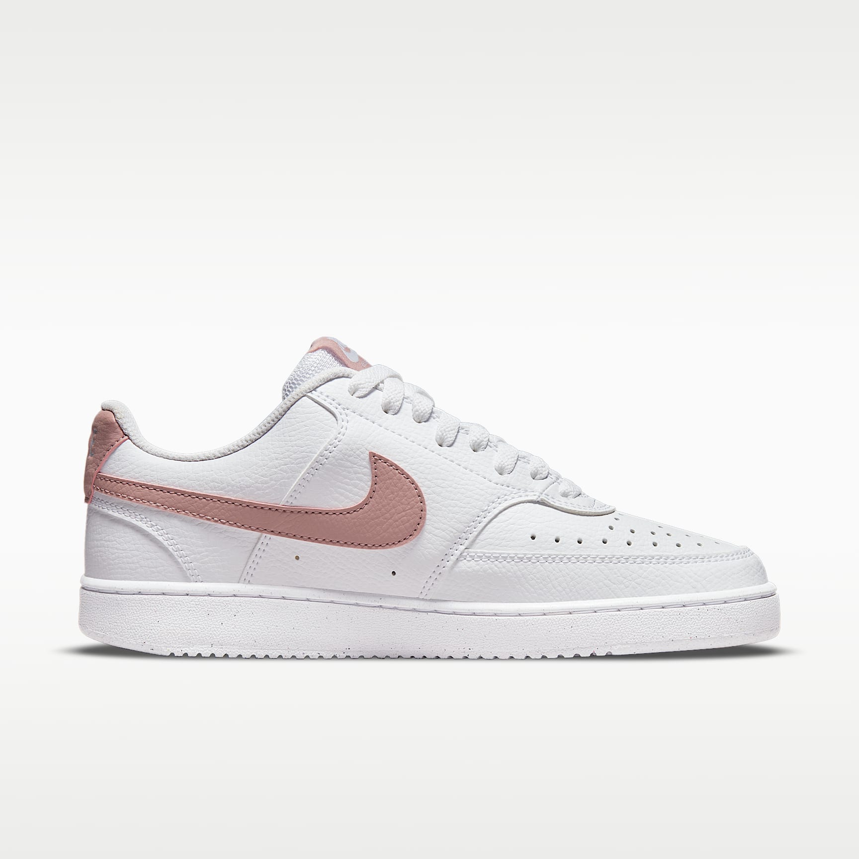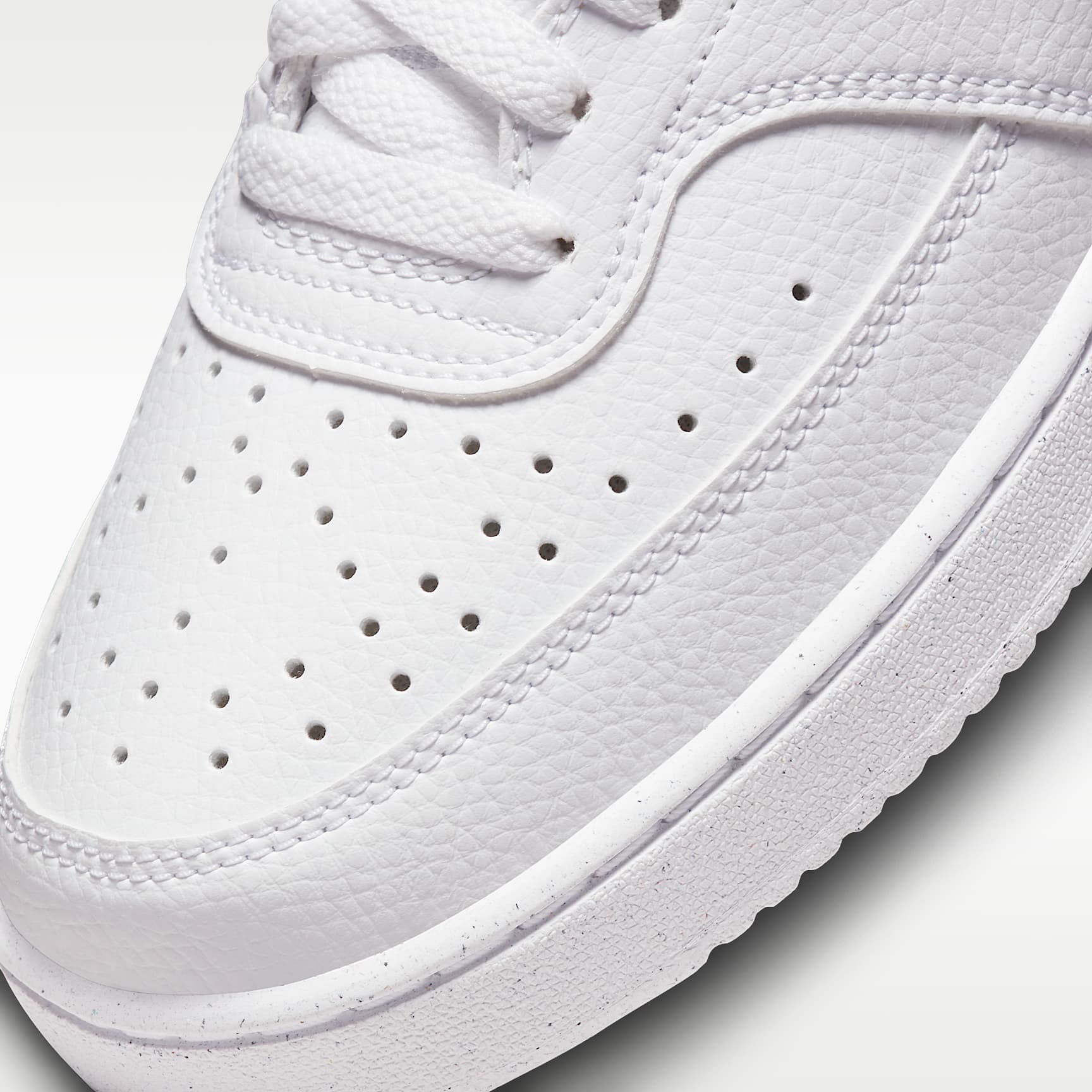 FRESH OFF THE COURT. In love with the classic look of '80s basketball but have a thing for the fast-paced culture of today's game? Meet the Nike Court Vision Low Next Nature. Made from at least 20% recycled materials by weight, its crisp upper and stitched overlays are inspired by the days of hook-shots and tube socks. The padded collar and rubber outsole bring comfort and traction for your world. Benefits * Made from at least 20% recycled material by weight. * Using synthetic materials, the design features materials that echo mid-1980s basketball shoes. * Padded, low-cut collar looks sleek and feels great while the perforations on the toe and sides add comfort and breathability. * Vulcanised construction fuses the outsole to midsole for a streamlined look that's durable and comfortable. Product Details * Perforations on the toe and sides * Rubber outsole