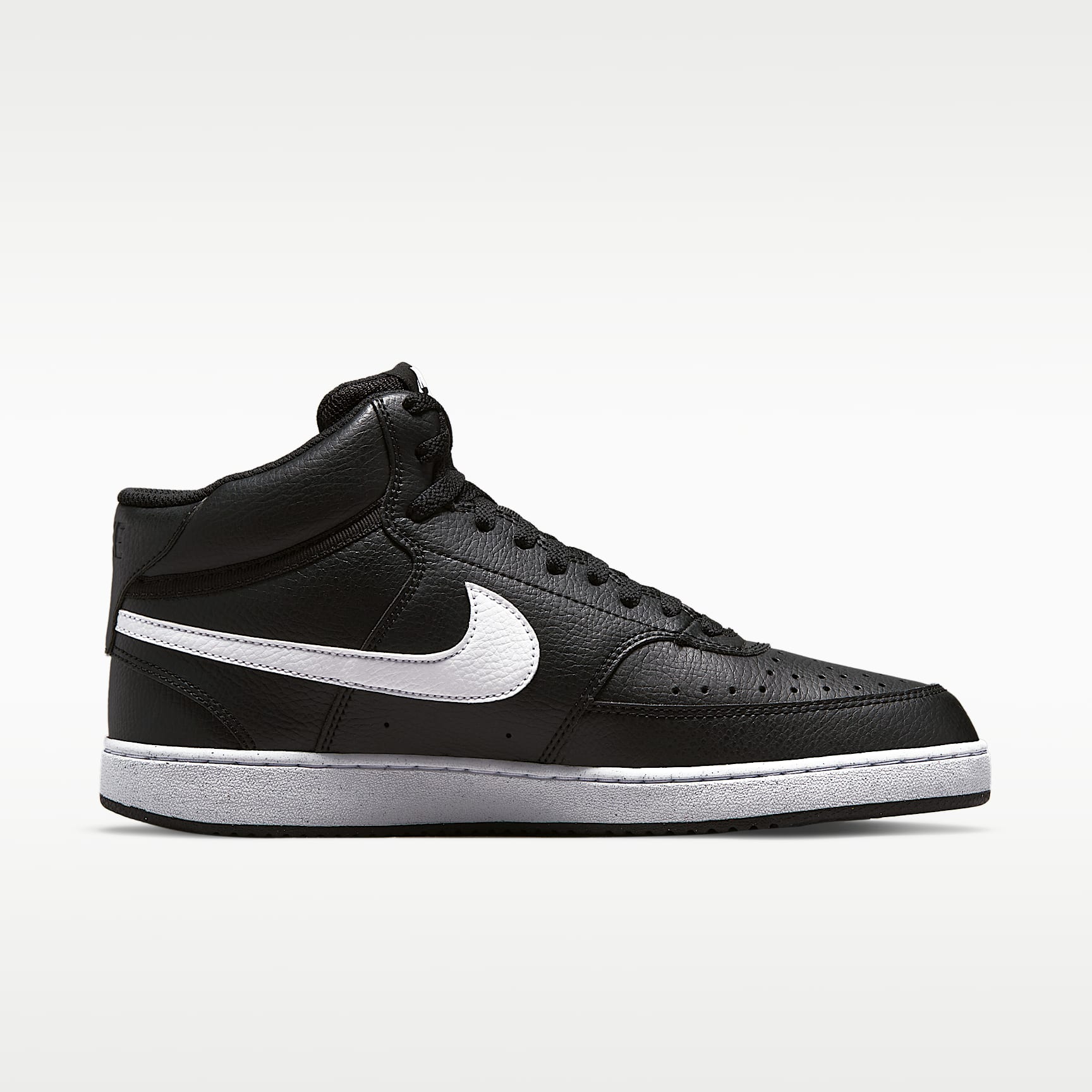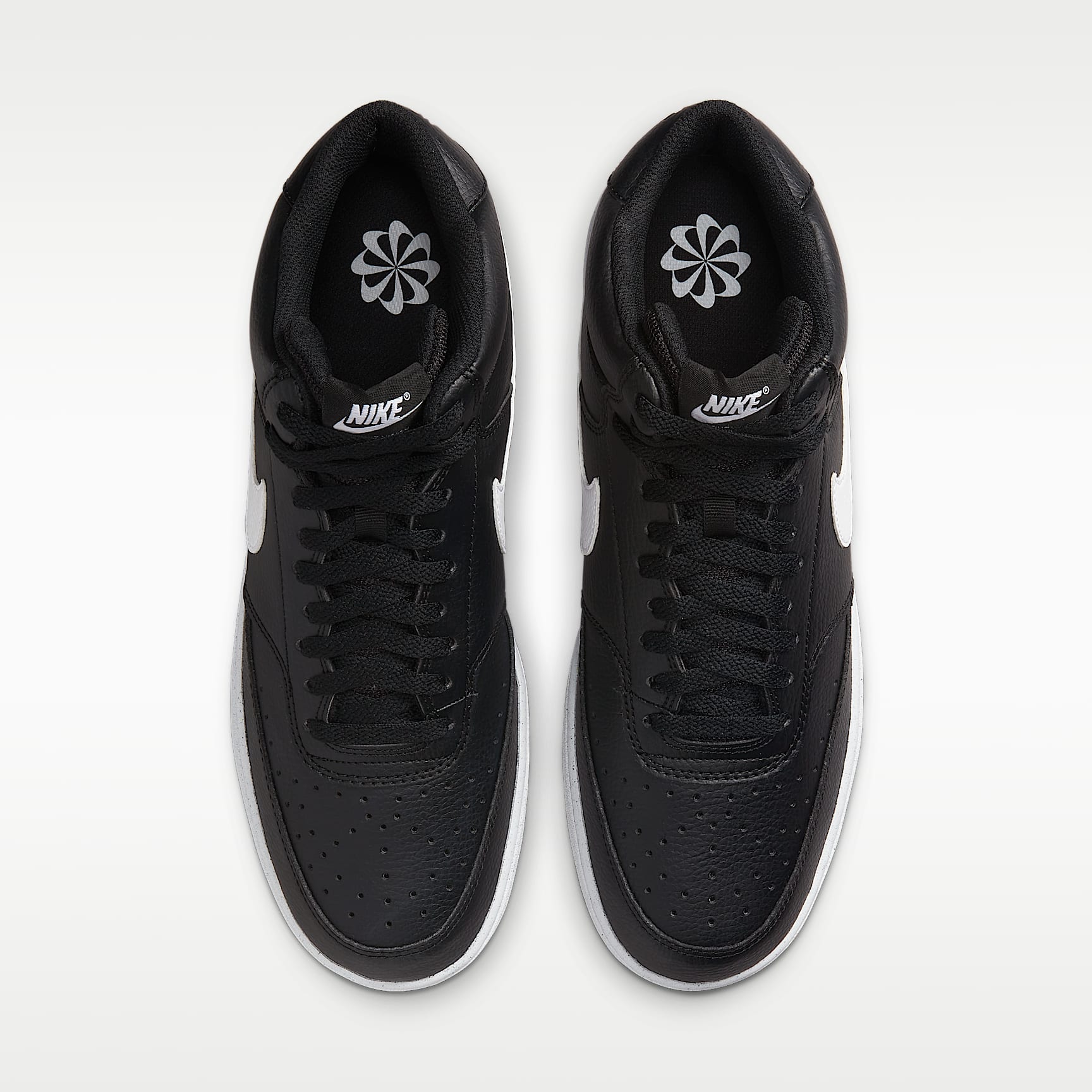 FRESH OFF THE COURT. In love with the classic look of '80s basketball but have a thing for the fast-paced culture of today's game?Meet the Nike Court Vision Mid.A classic remixed with at least 20% recycled materials by weight.We replaced leather with recycled and synthetic materials that keeps the soul of the original style.Its crisp upper and stitched overlays stays true to its origins.The plush collar keeps it sleek and comfortable for your world. Benefits * Made from at least 20% recycled material by weight. * Using synthetic materials, the design features materials that echo mid-1980s basketball shoes. * Padded collar looks sleek and feels great while the perforations on the toe and sides add comfort and breathability.