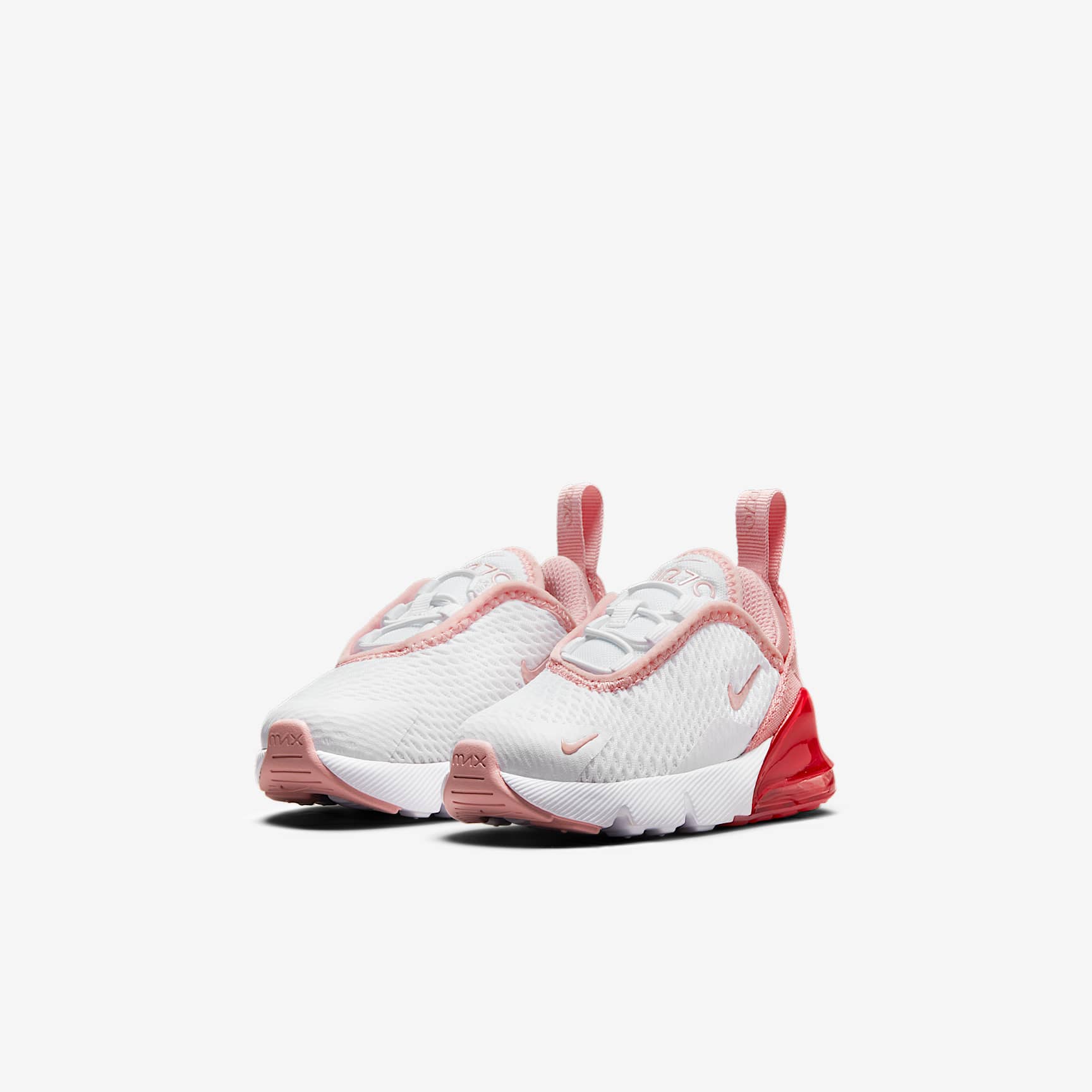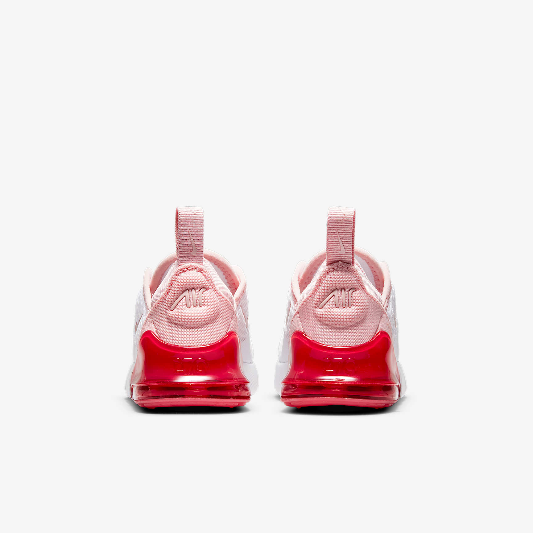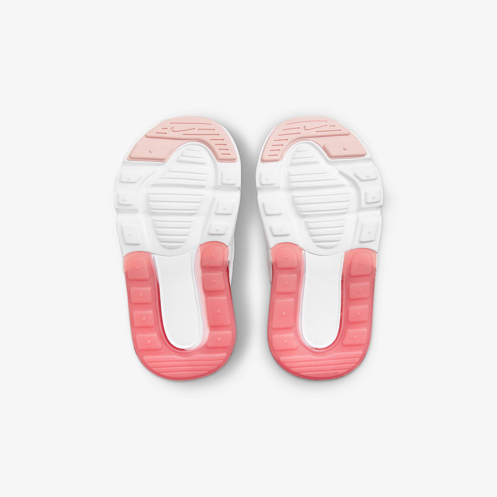 ALL ABOUT AIR. The Nike Air Max 270 is all about BIG Air for little feet. Kiddos can see 270 degrees of Air cushioning from the sides to the back. Plus, these everyday kicks are comfy for all of their daily adventures. Lightweight and Breathable Fabric provides a breathable, structured fit around the top of the foot. Everything Air The 270 Max Air unit means kiddos can see Air from 270 degrees around. Soft foam is added for cushioning that never stops. Natural Motion Grooves in the rubber sole make it flexible so every growing step feels natural.