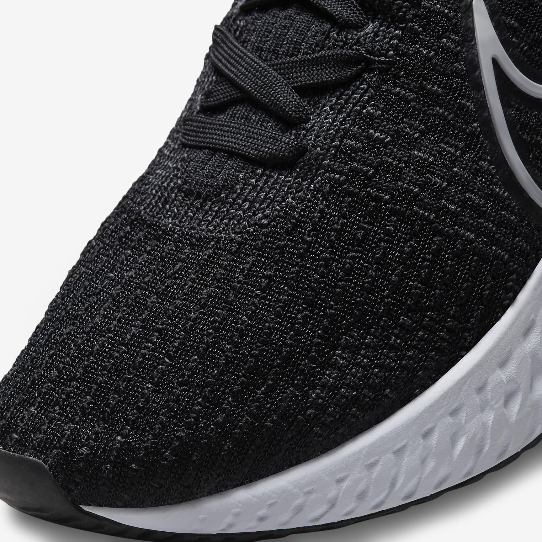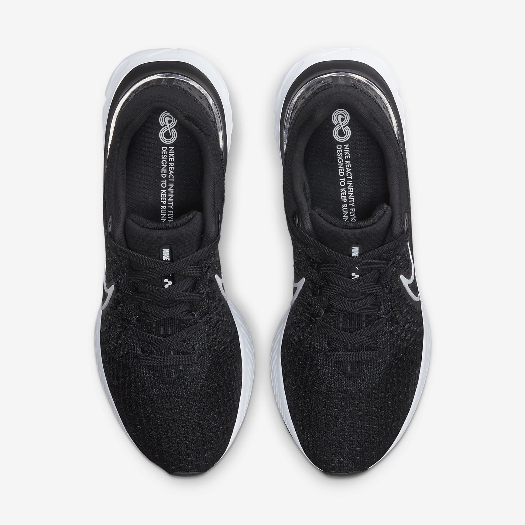 STAY RUNNING WITH SOFT, STABLE SUPPORT. Still 1 of our most tested shoes, the Nike React Infinity 3 has soft and supportive cushioning. Its soft, stable feel with a smooth ride will carry you through routes, long and short. A breathable upper is made to feel contained, yet flexible. We even added more cushioning around the heel and ankle for a supportive sensation. Keep running—we've got you. A Secure, Breathable Flex We added Flyknit throughout the upper, creating specific zones of breathability, flexibility and containment. The result is a cool feel that helps your foot feel secure, while letting it move without restriction. It still has Flywire technology for support through the midfoot. Smooth and Steady The sole has a unique rocker design that's shaped for support during all 3 phases of your stride. It feels flexible when you push off the ground, provides a smooth ride when your foot moves forwards and cushions when you land. Nike React technology provides that soft yet responsive sensation with every step. The bottom is wider for more stability on contact. Cushioned Feel, Higher Stacks High-rise cushioning is placed directly under your foot so you're closer to the foam for a truly responsive experience. More Benefits * Hybrid tongue combines a sock-like feel with the adjustability of a traditional design. * Soft padding along the collar provides a cushioned touch point. * Increased rubber at the outsole gives traction and durability.