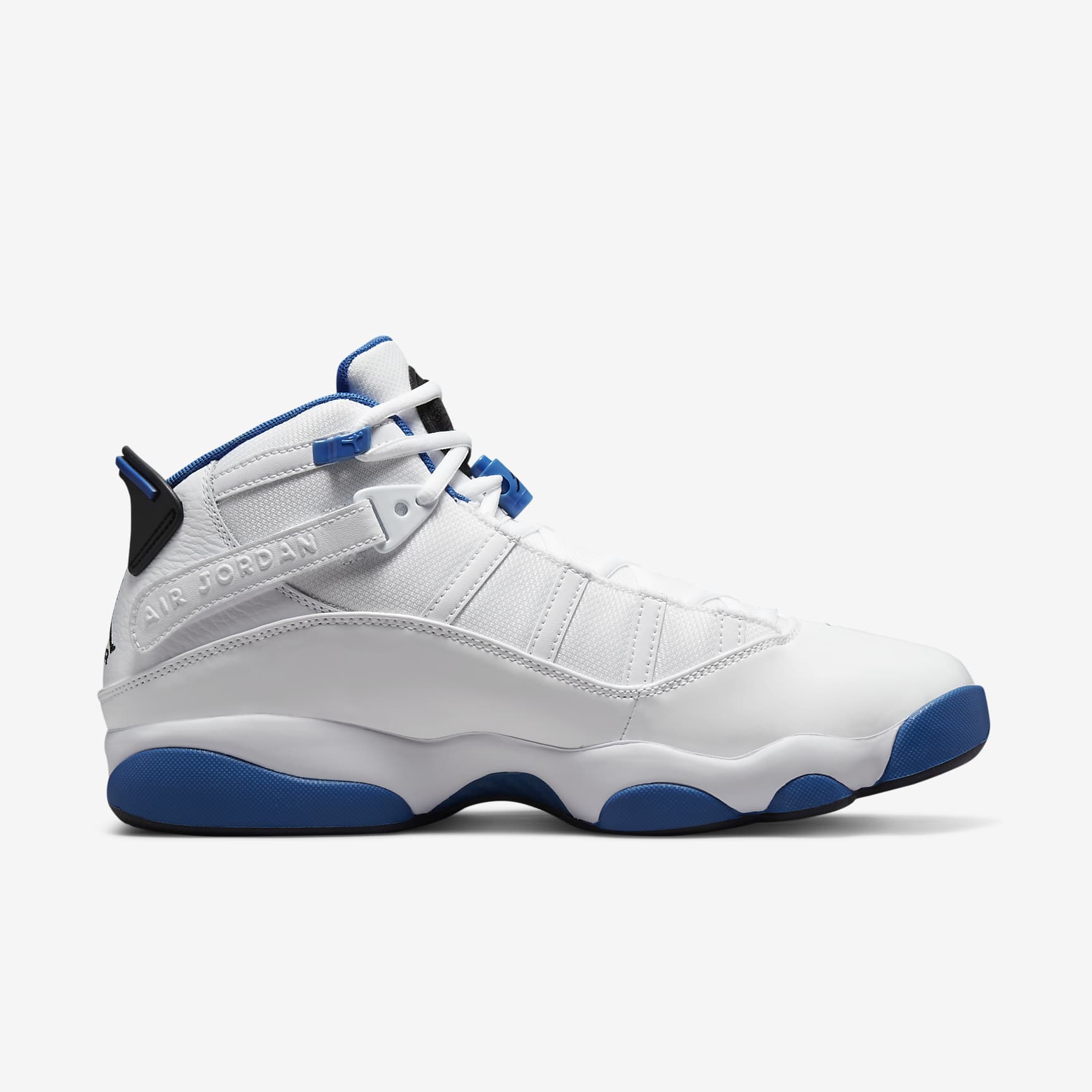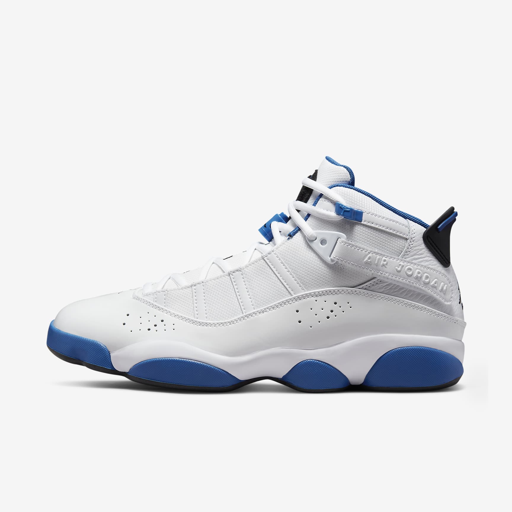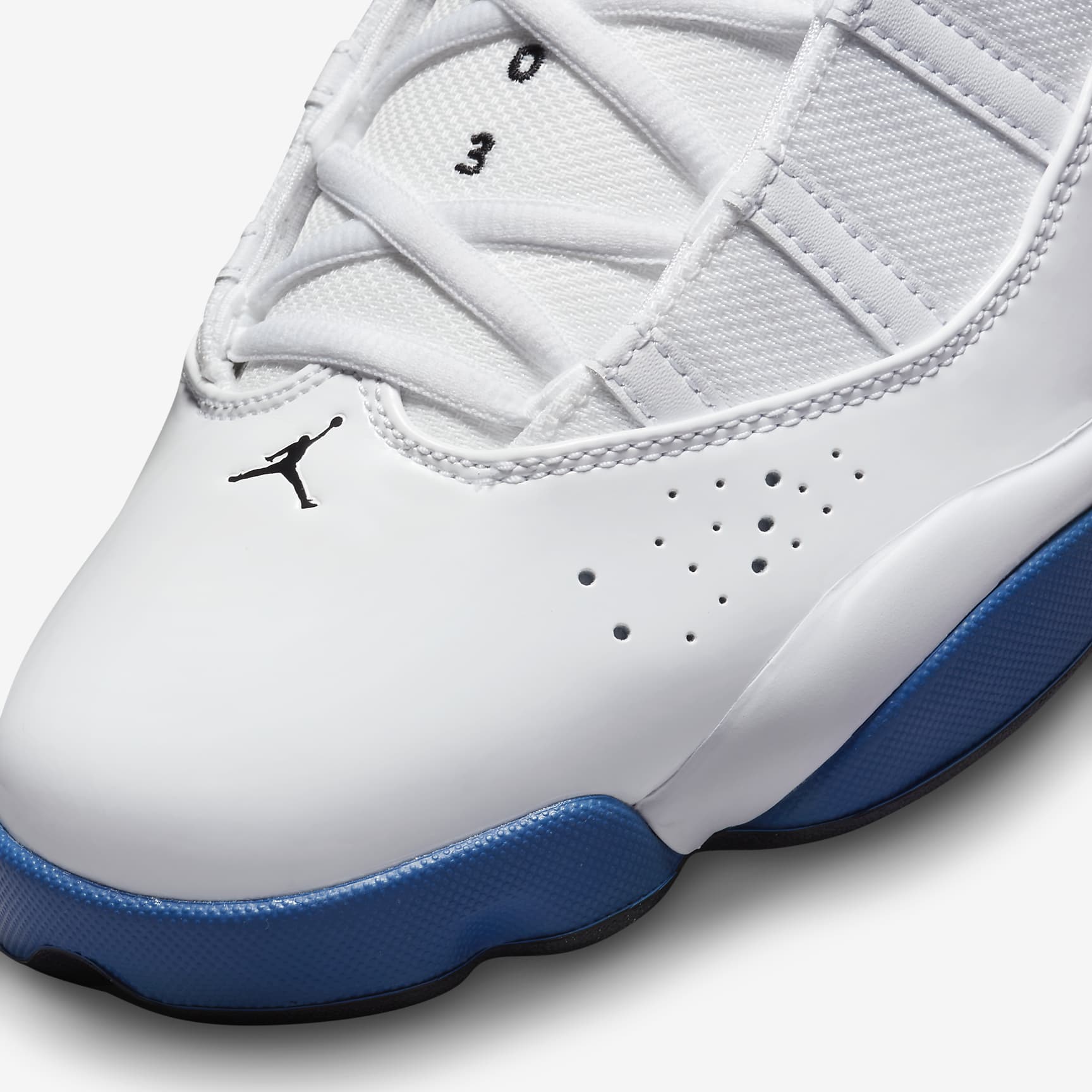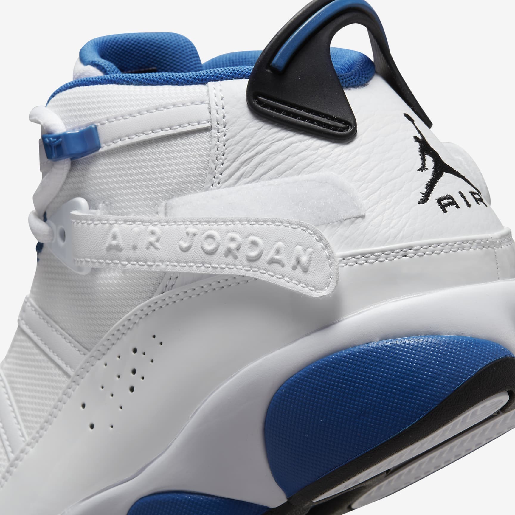 LIGHTWEIGHT DESIGN. HEAVYWEIGHT LEGACY. Celebrate the legendary career of "His Airness" with the Jordan 6 Rings. Incorporating key features of each shoe worn during the championship series, it has premium details and lightweight, low-profile Zoom Air cushioning that delivers a responsive feel underfoot. Benefits * Zoom Air units in the heel and forefoot provide lightweight, responsive cushioning. * Leather, synthetic leather and/or textile materials in the upper for comfort and durability. * Foam midsole for stability and lightweight cushioning. * Rubber outsole offers durability and traction. * Heel tab for easy on and off.