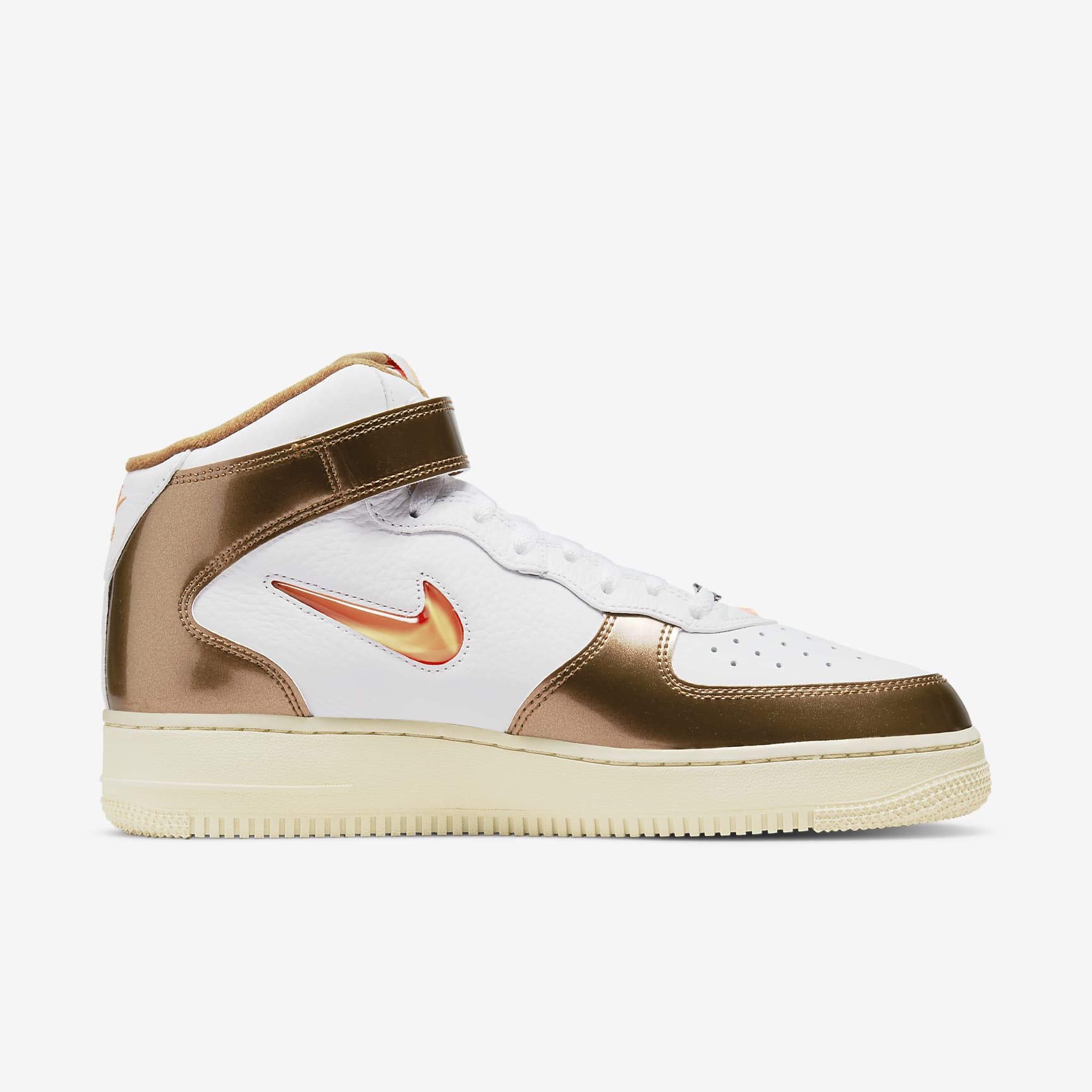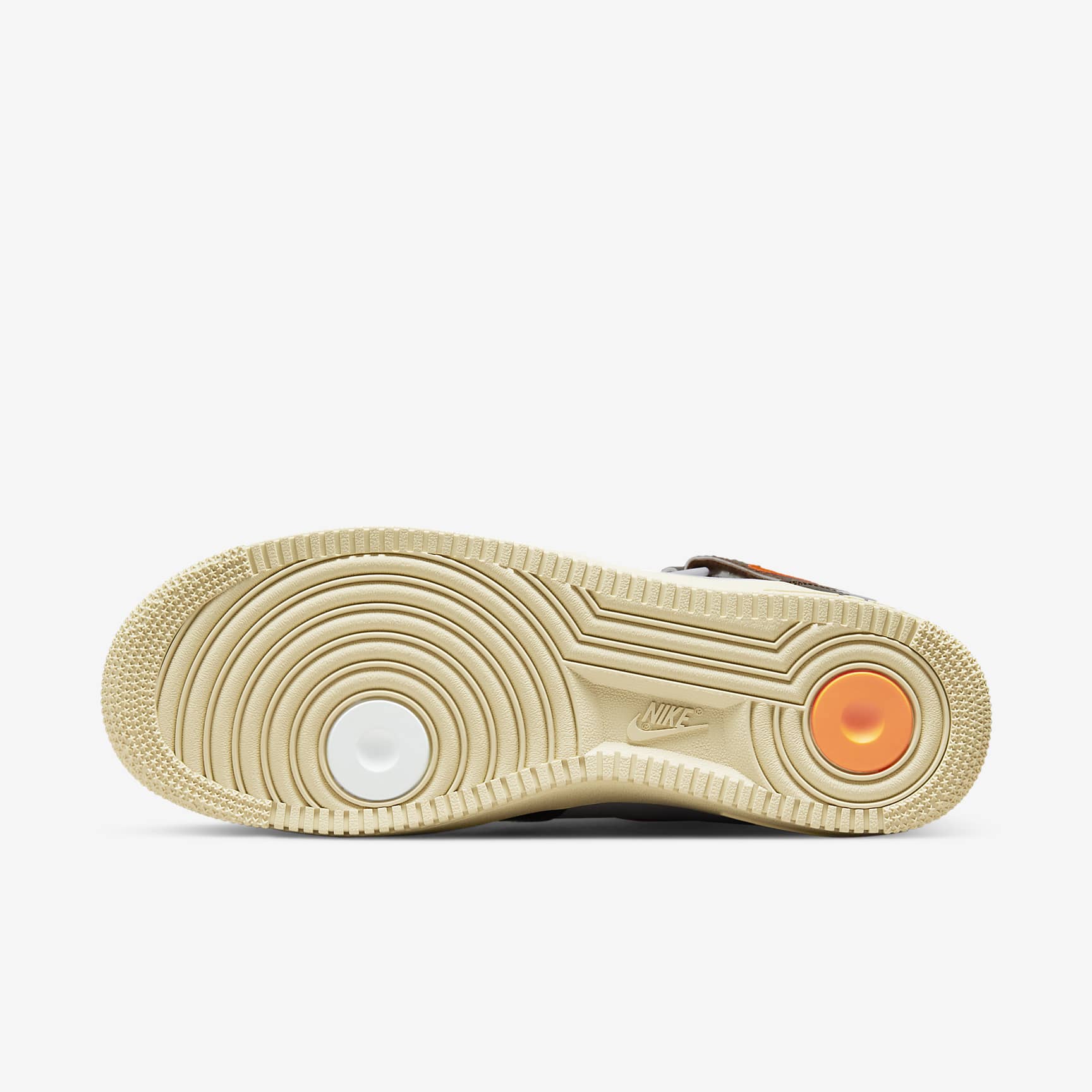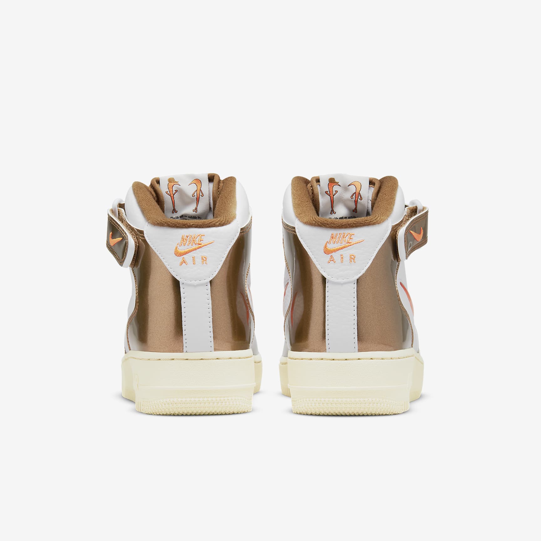 Celebrating those things we can't do without, this rendition of the hoops original aims to bring the outdoors inside and vice versa. Its witty Swoosh characters and sleek metallic finish put a fresh spin on what you know best: era-echoing, '80s construction, bold details and nothin'-but-net style. Open the box and transport yourself. Benefits * Embroidered characters on the inside of the tongue celebrate what's within. * Metallic overlays and supple leather deliver a premium off-court touch. * Brown and orange colourway nods to the original Nike shoe box. * From tough stitching to pristine materials to the cupsole design, it delivers durable style that's smoother than backboard glass. * Originally designed for performance hoops, the Air cushioning delivers lasting comfort while the padded ankle and tongue add to the soft ride. * Mid-cut, padded collar adds a classic look that feels great. Air Force 1 Debuting in 1982 as a basketball must-have, the Air Force 1 came into its own in the '90s. The clean look of the classic white-on-white AF-1 was endorsed from the basketball courts to the street and beyond. Finding its rhythm in hip-hop culture, releasing limited collabs and colourways, Air Force 1 became an iconic sneaker around the globe. And with over 2000 iterations of this staple, its impact on fashion, music and sneaker culture can't be denied.