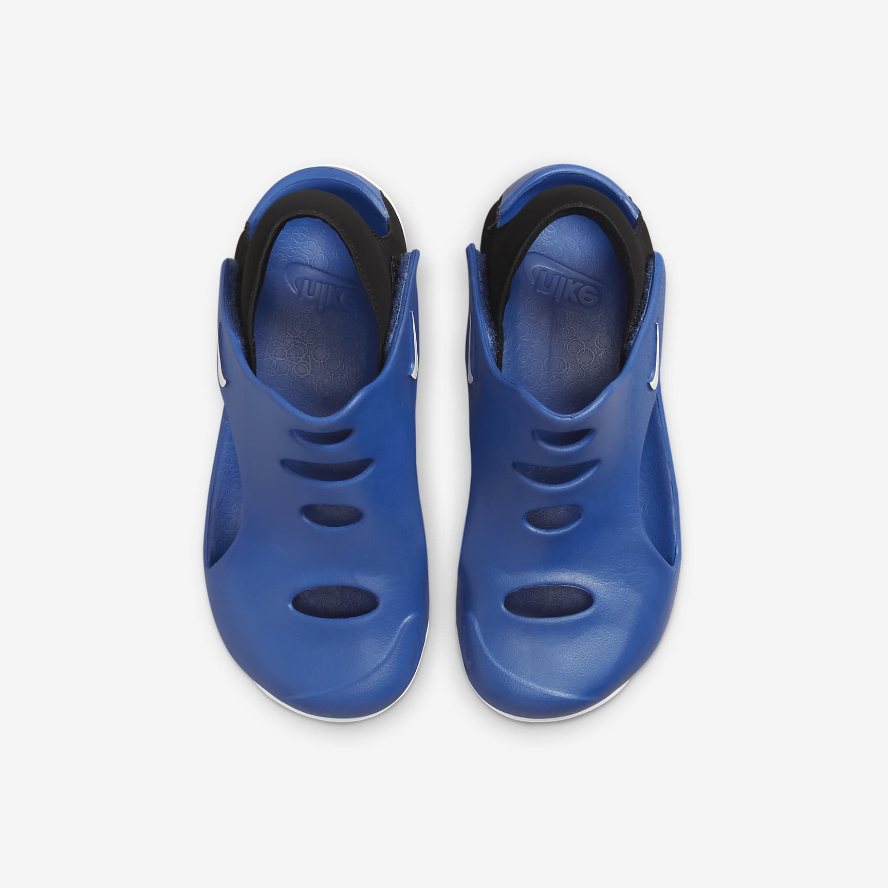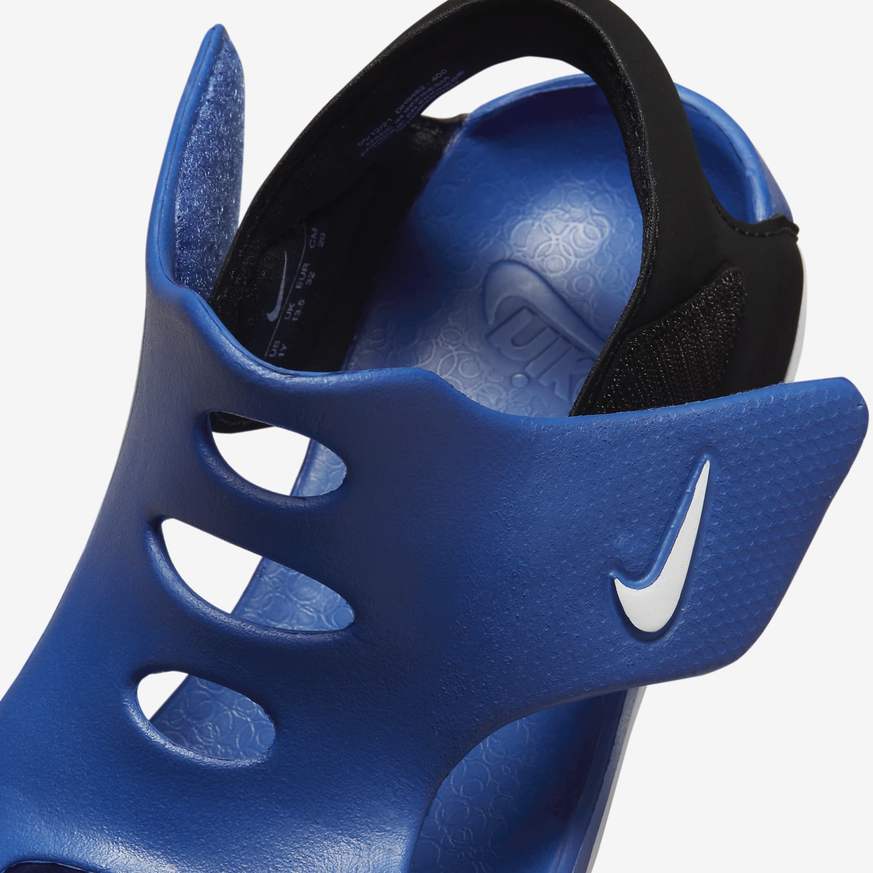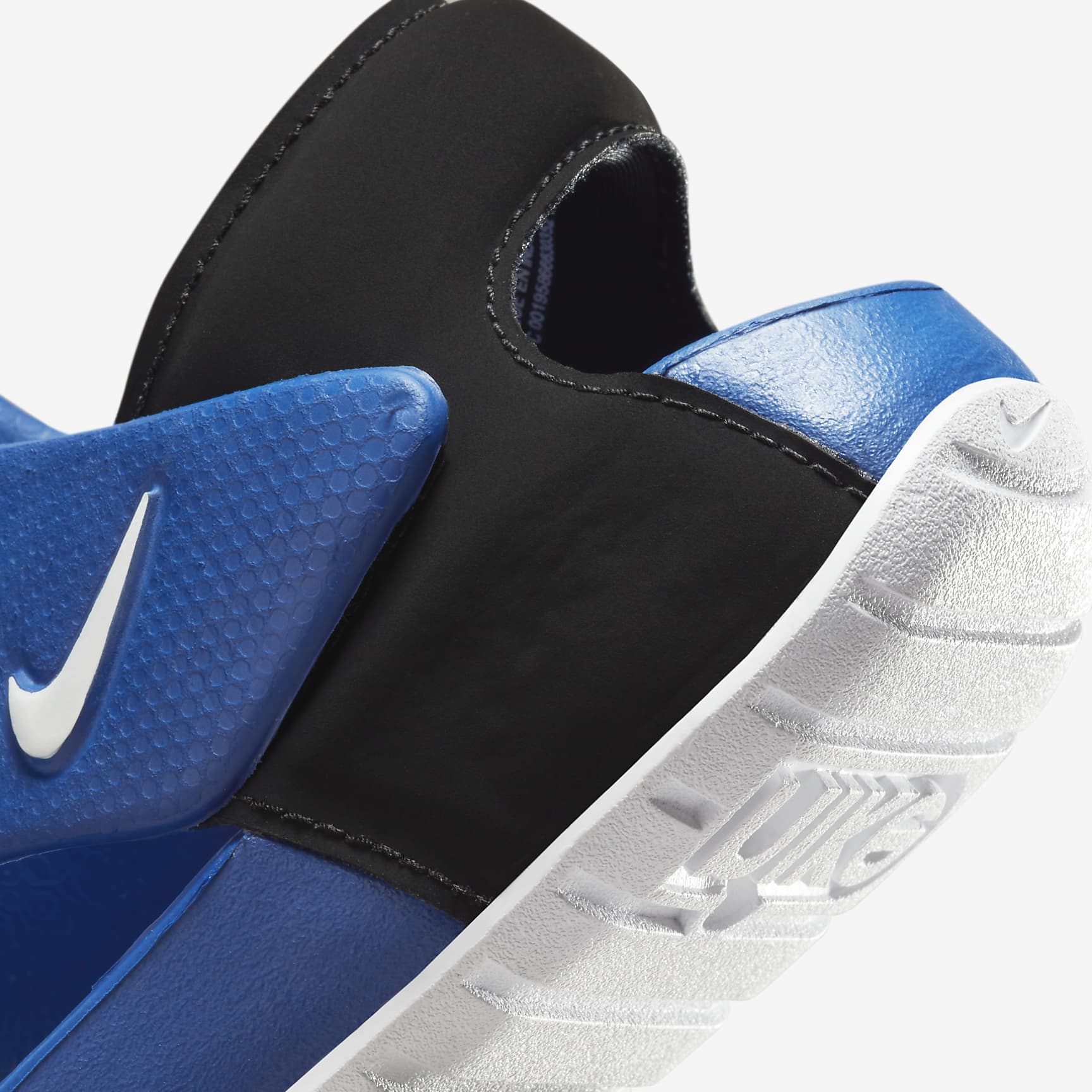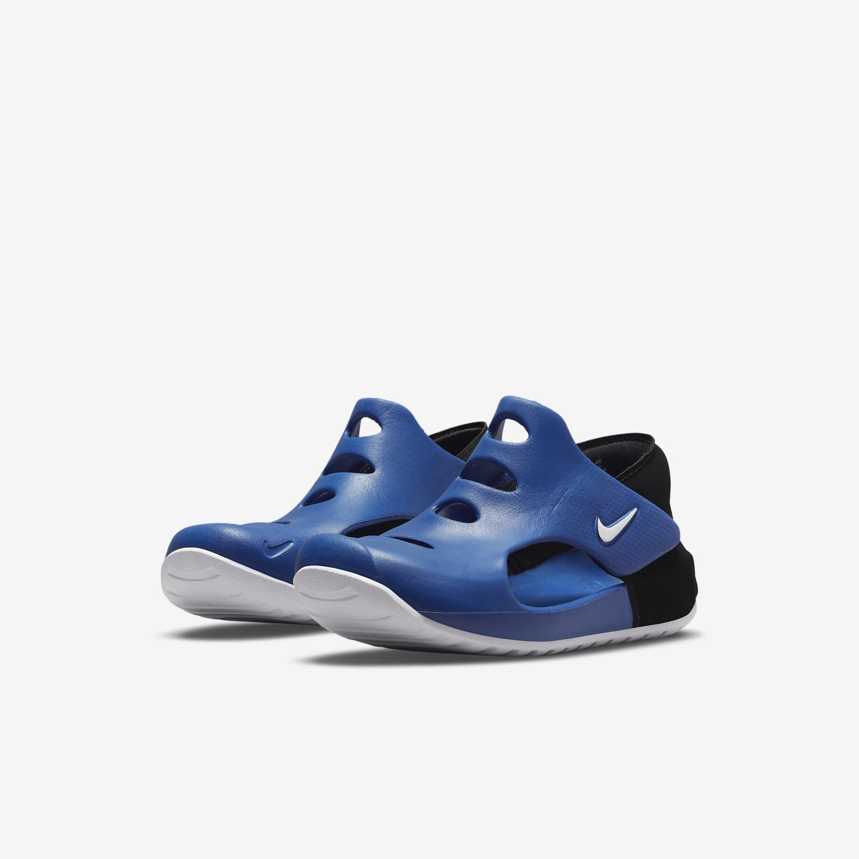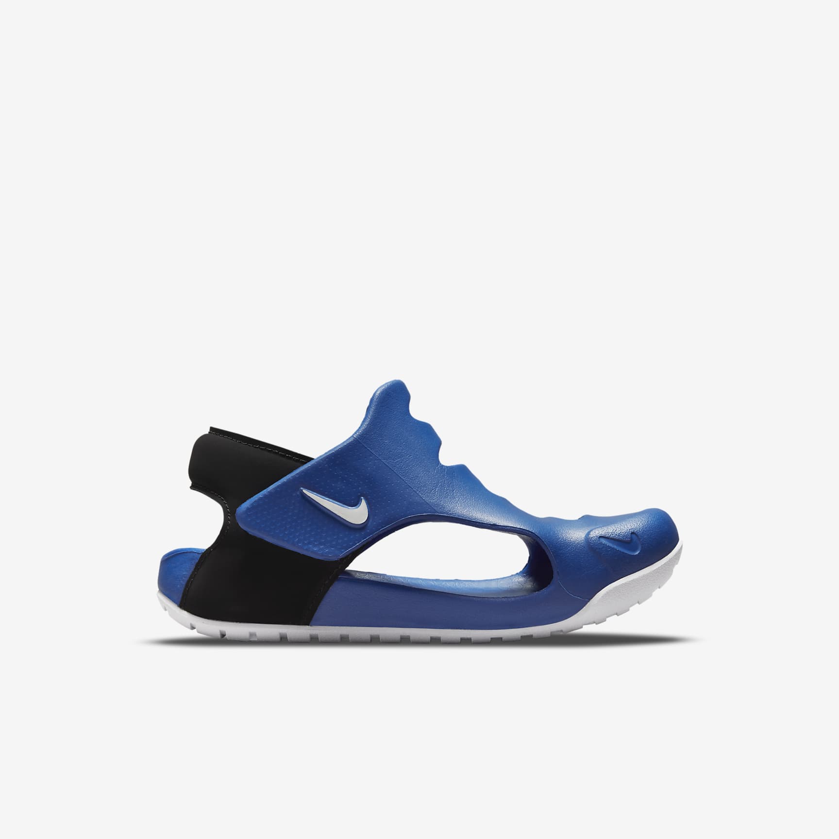 EASY SLIP-ONS TO KEEP THE FUN GOING. Step right into the sand, grass and pool with the Nike Sunray Protect 3. These lightweight sandals are super simple with straps that keep little feet in. Soft cushioning makes it comfy so playtime keeps going. And don't forget the closed-toe design—not worrying about stubbed toes is a lot more fun! Built to Last Flexible materials combine for a lightweight and durable design that also dries quickly after getting wet. Slip-In Style The hook-and-loop straps open wide like a butterfly so kids can quickly step right in and secure their feet. Soft Feel Foam cushioning underfoot helps every step feel comfortable—whether it's on the beach, grass fields or streets.