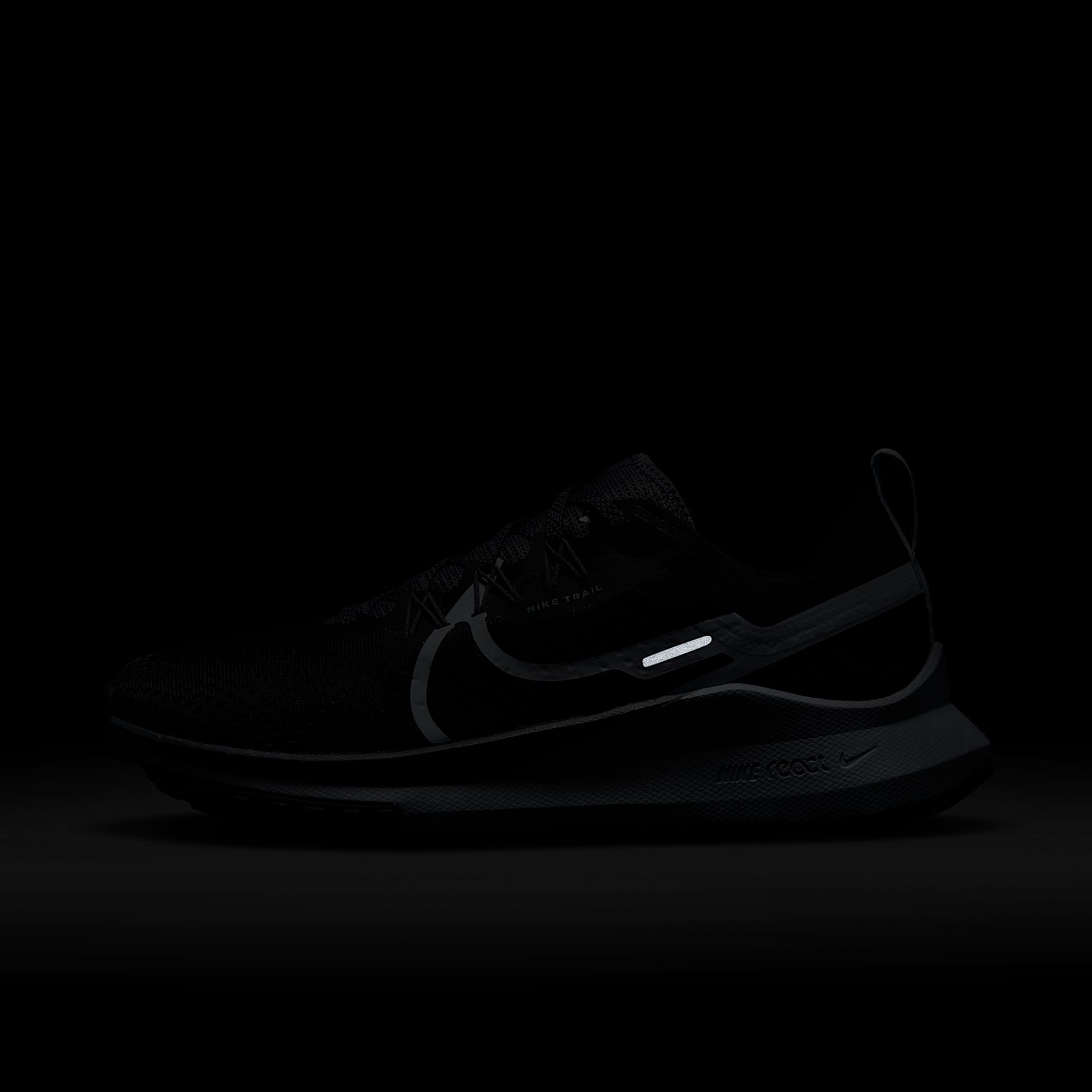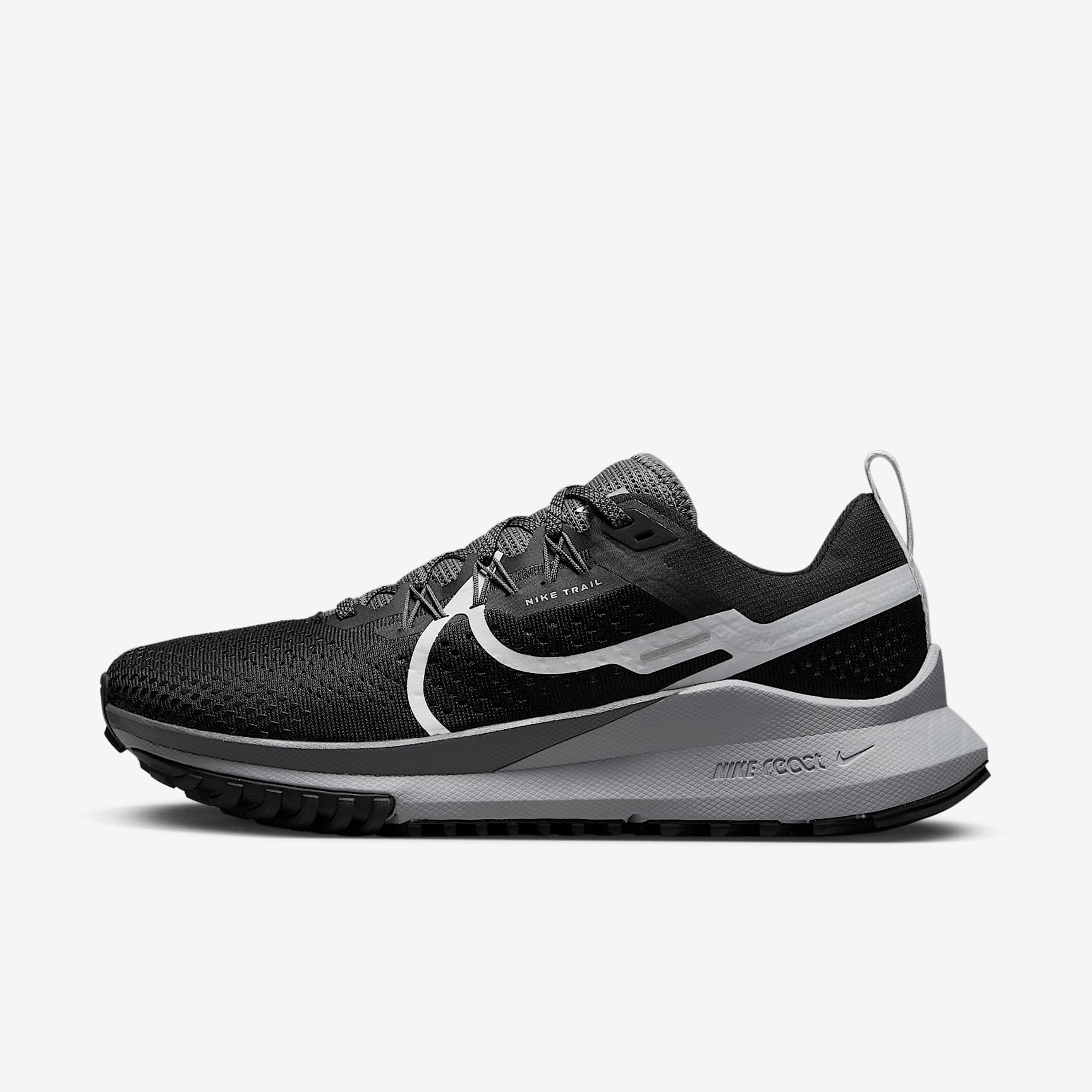 ENERGISED FROM ROAD TO TRAIL. Running is your daily ritual, taking you from road to trail as you seek out new adventures and goals. Let the Nike Pegasus Trail 4 take you there and back again with its supportive and springy feel. Underfoot traction keeps you going over rocky terrain, while still providing a smooth ride for the road. Your trusted workhorse with wings is ready for an off-road journey. Light, Yet Tough Runner-informed data was used to create and place engineered mesh throughout the upper for a sturdy and breathable feel. We placed an extra skin overlay across the toes for durability. Supportive Steps Flywire technology is integrated with a midfoot band for total support that helps keep your feet in place. Energised Movement Nike React technology is a lightweight, durable foam that delivers a smooth, responsive ride. Grip While You Rip The rubber outsole has a generative traction pattern, created using data from runners like you. It provides grip in key areas to help you stay upright and stable over rocky trails, while also maintaining a smooth ride on the road. More Benefits * Rubber from the outsole wraps up onto the forefoot for extra durability. Product Details * The inspirational message by the heel will vary between "JUST DO IT" and "JUST RUN IT", depending on the shoe * Not intended for use as Personal Protective Equipment (PPE)