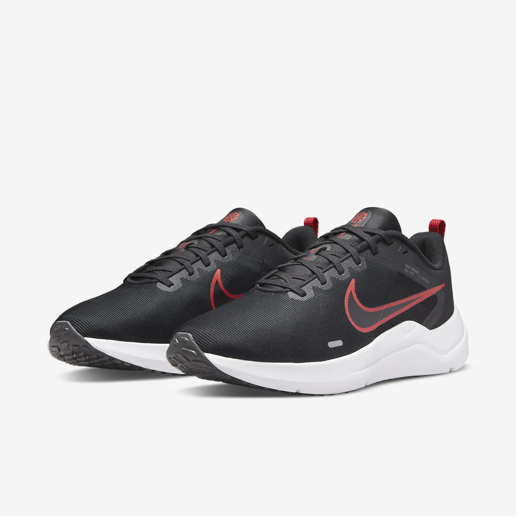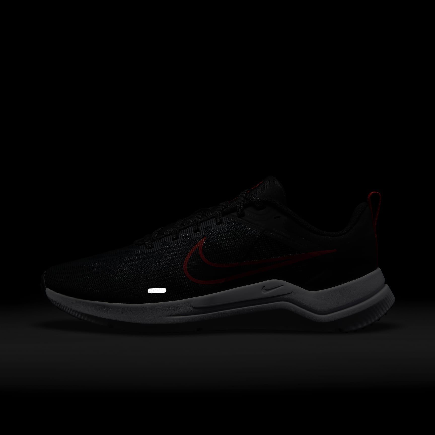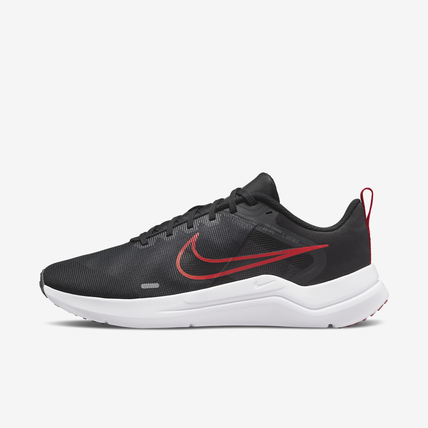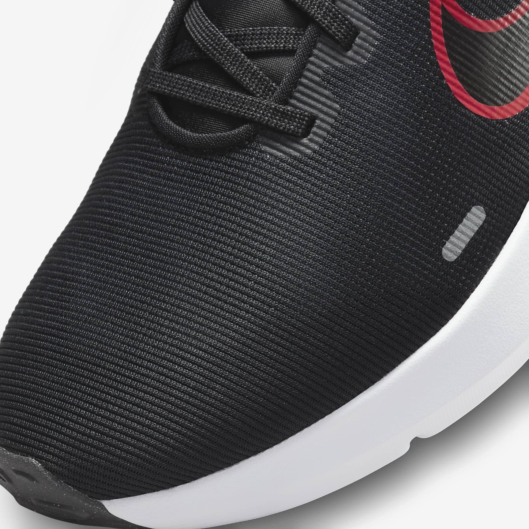 YOUR RUN BEGINS WITH STABLE SUPPORT. Take those first steps on your running journey in the Nike Downshifter 12. Made from at least 20% recycled content by weight, it has a supportive fit and stable ride, with a lightweight feel that easily transitions from your workout to hangout. Your trek begins. Lace up and hit the road. Cool, Light, Fast Mesh throughout the upper has a lightweight, breathable feel. The mesh was placed in key zones based on runner feedback, providing you with cooling where it counts. Lace Up, Support Up Feel the stability with the midfoot fitband. It works with your laces, keeping your foot more secure the tighter your laces are. Run Hard with a Soft Feel Super-soft foam through the midsole helps cushion your foot with every step. The increased height means a softer sensation as you run. More Benefits * The rubber outsole has the traction to keep your feet gripped to the pavement. * Skins at the toes and eyelets offer durability. * A mesh material shows off the internal components at the midfoot and toe. Product Details * Not intended for use as Personal Protective Equipment (PPE)