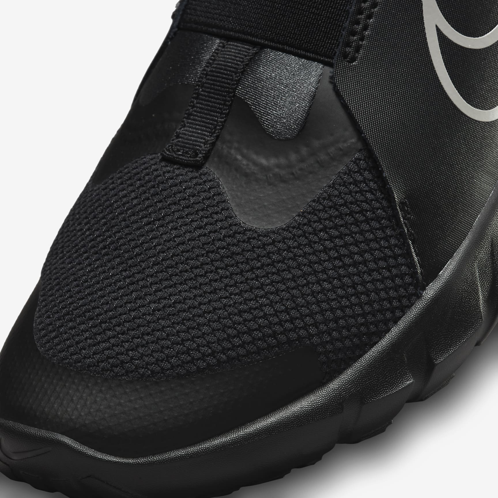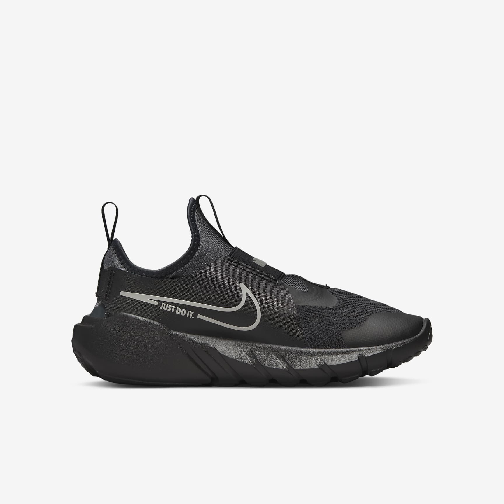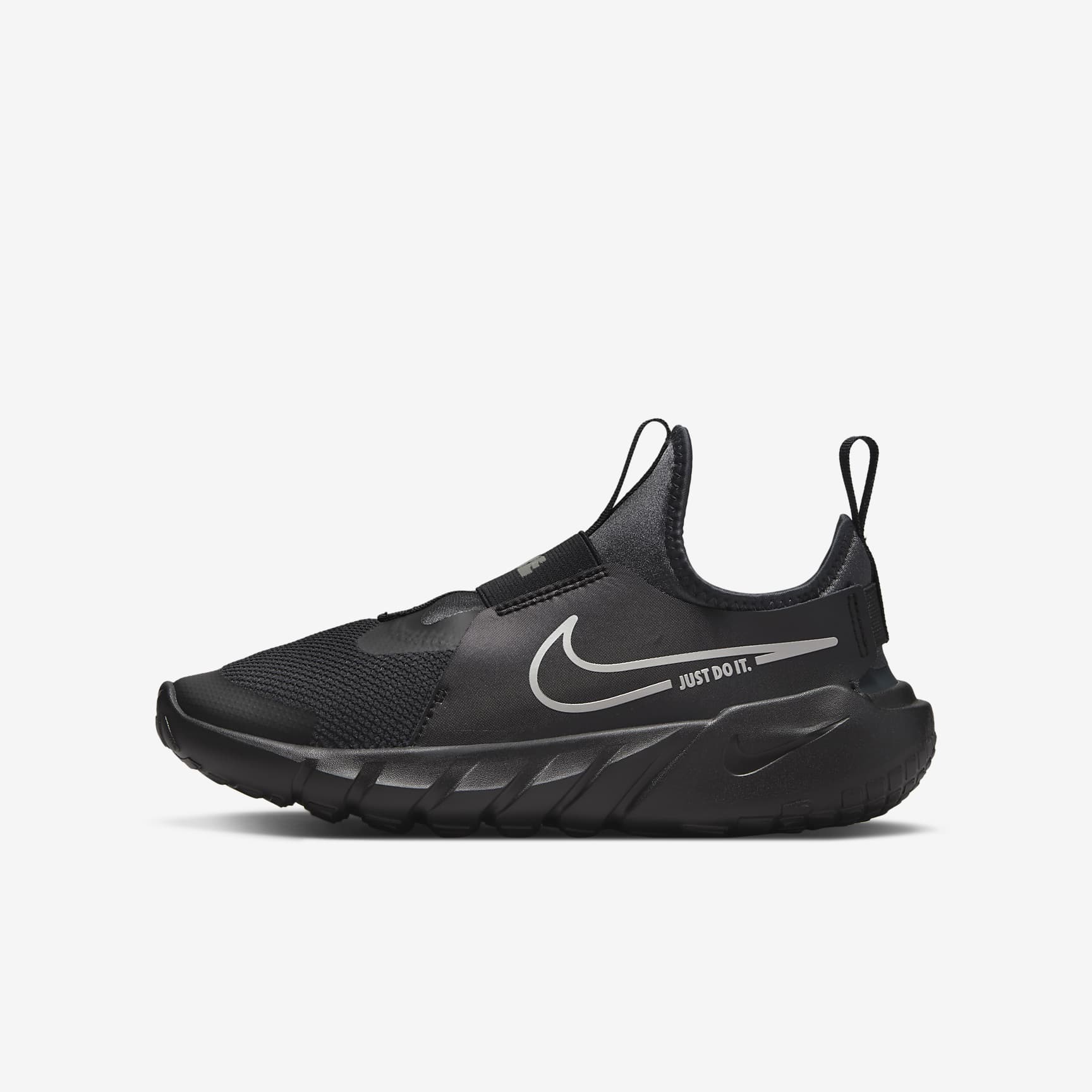 A SLIP-ON FOR SPEEDSTERS. Running shoes made easy! The Nike Flex Runner 2 is for the kid on the go who loves to play all day—from gym class to a sprint down the block. They're lace-free, meaning they're super-quick to slip on and off. Who's ready to race? Easy On, Easy Fit A stretchy bootie design makes it easy to slip your foot in with a snug and secure feel. A heel strap and leather on the sides stabilise your fit. Fast Steps The flexible foam sole is designed with deep grooves, so every step and stride feels secure while running. The sole's pattern also helps with multi-surface traction. Steady Feel The back of the shoe features foam that creates a wing-like shape around the heel for extra stability when moving in different directions. More Benefits * Breathable fabric on the front of the shoe is lightweight and helps keep feet cool. * Toe tip is reinforced with extra durability for toe draggers. * Pull tabs on the heel and tongue help you get the shoe on and off.