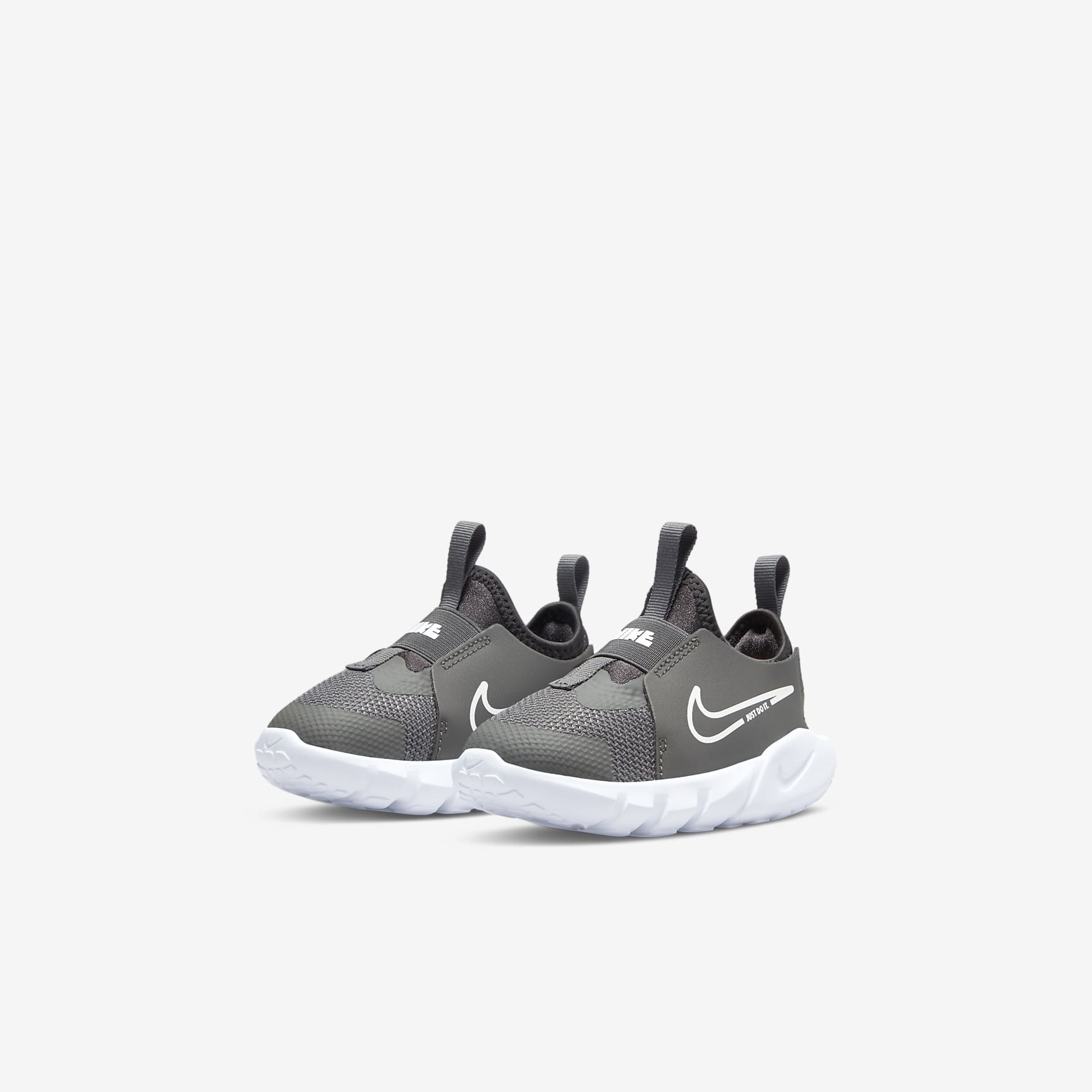 A SLIP-ON FOR LITTLE SPEEDSTERS. Who's ready to play? The Nike Flex Runner 2 is built for the kids on the go—from the cot to the playground to wherever their day takes them. It's laces free! Meaning it's super quick to slip on and off. The straps and bootie-like design make sure your little one's fit stays snug. Easy On, Easy Fit A stretchy bootie design makes it easy to slip little feet in with a snug and secure feel. A midfoot strap, a heel strap and leather on the sides stabilise the fit. Comfy Steps The flexible foam sole is designed with grooves so every step feels natural. The sole's pattern also helps with multi-surface traction. Steady Feel The back of the shoe features foam that creates a wing-like shape around the heel for extra stability when moving in different directions. More Benefits * Breathable fabric on the front of the shoe is lightweight and helps keep feet cool. * The toe tip is reinforced for extra durability for toe-draggers. * Pull tabs on the heel and tongue help make the shoe easy to get on and off.