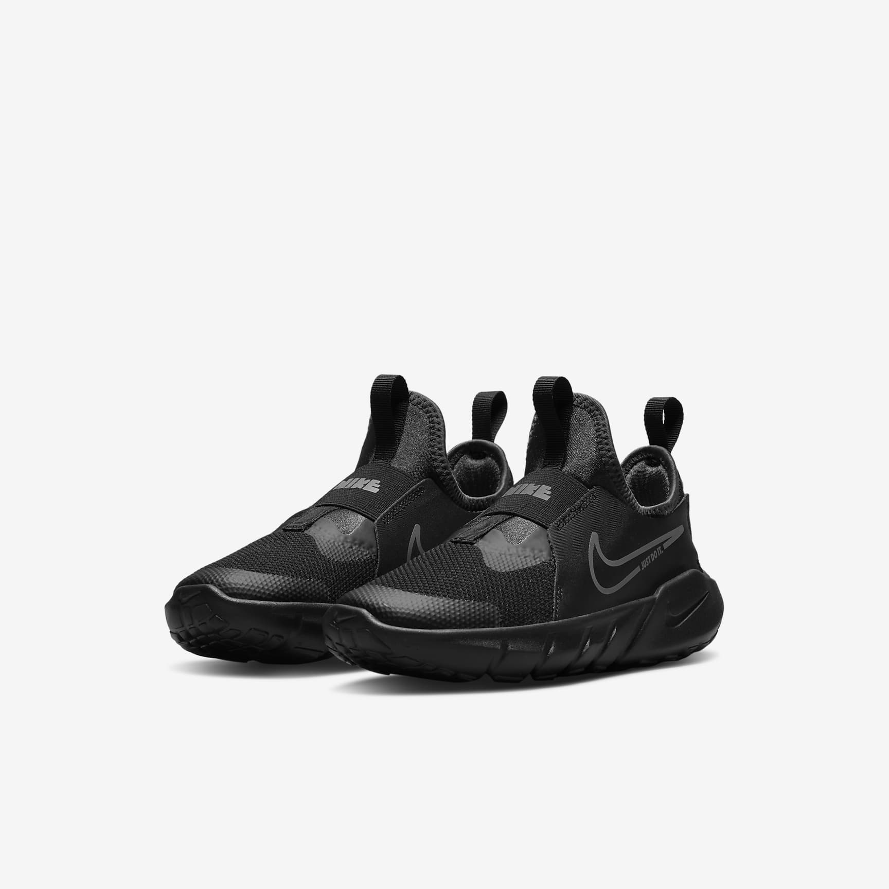 A SLIP-ON FOR LITTLE SPEEDSTERS. Who's ready to play? The Nike Flex Runner 2 is built for the kid on the go who loves to play—from the playground to wherever their day takes them. It's laces-free! Meaning it's super quick to slip on and off. The straps and bootie-like design make sure your little one's fit stays snug while they run and jump. Easy On, Easy Fit A stretchy bootie design makes it easy to slip little feet in with a snug and secure feel. A midfoot strap, a heel strap and leather on the sides stabilise the fit. Comfy Steps The flexible foam sole is designed with grooves so every step feels natural. The sole's pattern also helps with multi-surface traction. Steady Feel The back of the shoe features foam that creates a wing-like shape around the heel for extra stability when moving in different directions. More Benefits * Breathable fabric on the front of the shoe is lightweight and helps keep feet cool. * The toe tip is reinforced for extra durability for toe-draggers. * Pull tabs on the heel and tongue help make the shoe easy to get on and off.