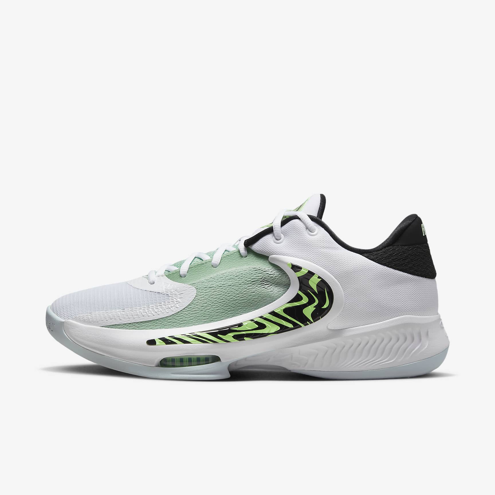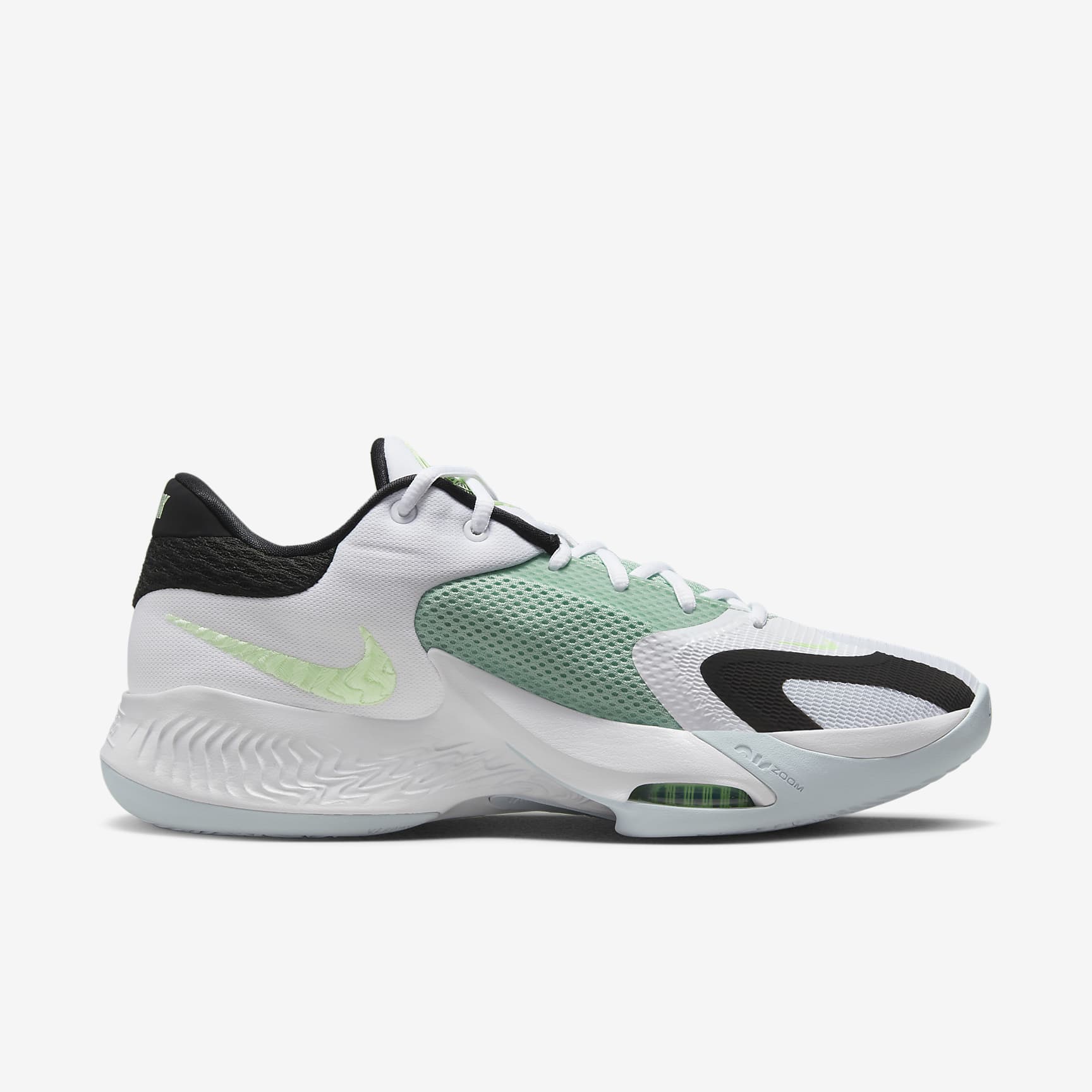 Giannis is an incessant storm of stamina and skill that keeps coming at opponents for 4 quarters or more. The forward-thinking design of his latest signature shoe helps propel you down the court in a lightweight fit that moves with you. It can handle quick changes in direction on both sides of the floor, giving you side-to-side stability and multi-directional traction as you Euro step to the hoop. The colours pay tribute to 1 of the Greek Freak's favourite coastal getaway spots, in the country he proudly calls home. Behind the Design Greece represents humble beginnings, roots, family, home to Giannis. The beautiful coastlines, with crystal-clear blue waters, forested green hills and white sandy beaches, are where the Greek Freak can go to get away from it all, reflecting on the past while dreaming of a future that's as vast as the Mediterranean. Details on the outsole pay homage to Giannis's family including his son, Maverick. Drive Downhill The lightweight midsole is hollowed out under the forefoot, where 2 Zoom Air units are positioned. This allows the Zoom Air units to compress under the weight, then expand and help return energy. Also, they're slightly tilted and primed for your forwards motion, like a 100 metre sprinter emerging from the starting blocks, so that you can keep attacking the rim. Attack the Rim from All Angles The computer-generated outsole has multi-directional traction in a pattern that resembles a topographical map. It helps optimise ground contact and change-of-direction opportunities. Stability for Moving Quickly An external piece of lightweight, durable foam is built into the outer-side midsole. It helps keep your foot stable over the footbed when making quick side-to-side changes. More Benefits * Cut-outs in the foam under the toe and heel help reduce overall weight. * Moulded grooves in the rubber outsole allow the shoes to bend and flex. * The moulded backwards Swoosh logo is a signature of Giannis's Freak shoes.