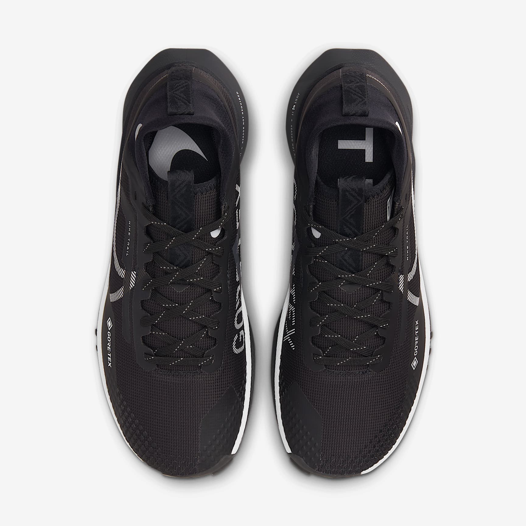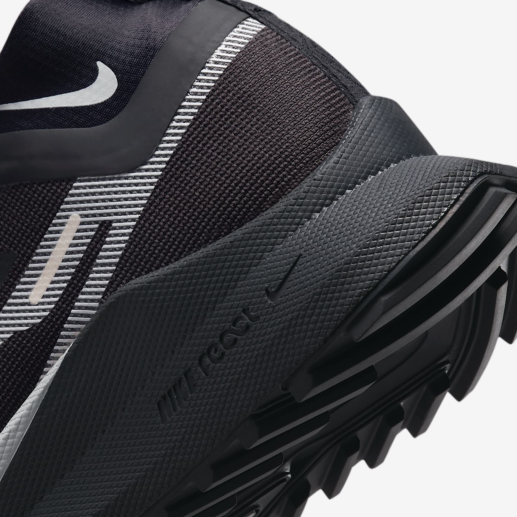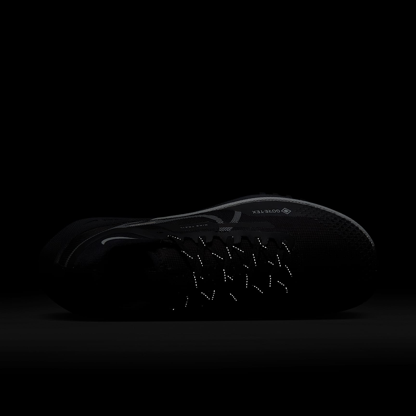 TRAIL-READY RESPONSIVENESS FOR WET WEATHER. The Nike Pegasus Trail 4 GORE-TEX is made for those moments when you don't want to turn back, no matter what. Feel confident even in the most unforeseen weather conditions with waterproof GORE-TEX keeping you dry, so you can run harder for longer and take your wet run from the road to the trail without breaking stride. A waterproof layer paired with a higher ankle gaiter gives you extra coverage so you stay dry. Storm Ahead A GORE-TEX layer helps keep out water so your feet stay dry. The all-new gaiter at the collar is higher to help keep extra debris and water from getting inside your shoe. GORE-TEX's invisible fit along the upper provides protection from precipitation without sacrificing that comfortable feel of the Peg Trail. Its flexible, lightweight design keeps your foot dry when running between the wet roads and trails. Smooth and Stable Nike React technology is a lightweight, durable foam that delivers a smooth, responsive ride. Its full-length design provides stability as you brave rocky terrain. Traction In All Directions Less rubber along the outsole creates a smoother transition from road to trail. The rubber wraps around the front of the shoe for extra durability. Its generative traction pattern is combined with rubber nubs to give you grip when going uphill or downhill. A generative traction pattern combined with rubber provides extra grip for technical trails while maintaining a smooth ride for the road. Product Details * The inspirational message by the heel will vary between "JUST DO IT" and "JUST RUN IT", depending on the shoe * Pull loops on the heel and tongue * Not intended for use as Personal Protective Equipment (PPE)