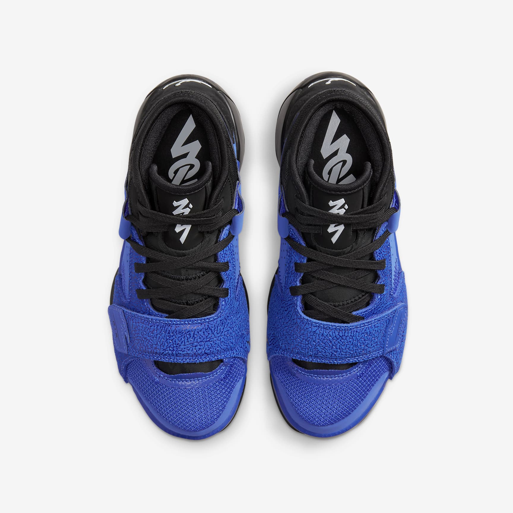 Channel the unique blend of speed and power in a shoe designed for Zion and built for ballers at any level. An adjustable strap up top helps lock your foot in place while a firm midsole supports high-paced play. Plus, a wider outsole provides extra stability—perfect for playing on outdoor courts. Revolutionary Air The Zion 2 is the first shoe to feature our Air Strobel unit in the heel. You'll get into the clouds easier—and land softer. Responsive Cushioning Zoom Air in the forefoot provides lightweight cushioning, on and off the court. Stay Contained Reinforced sidewalls wrap your foot and keep you from slipping around inside your shoe. The new forefoot strap lets you harness your full mobility without sacrificing any movement to slide. More Benefits * Synthetic leather in the upper provides structure and durability. * Rubber outsole offers solid traction. Product Details * Zion signature on the tongue and on the outsole * Strap over laces for a secure fit