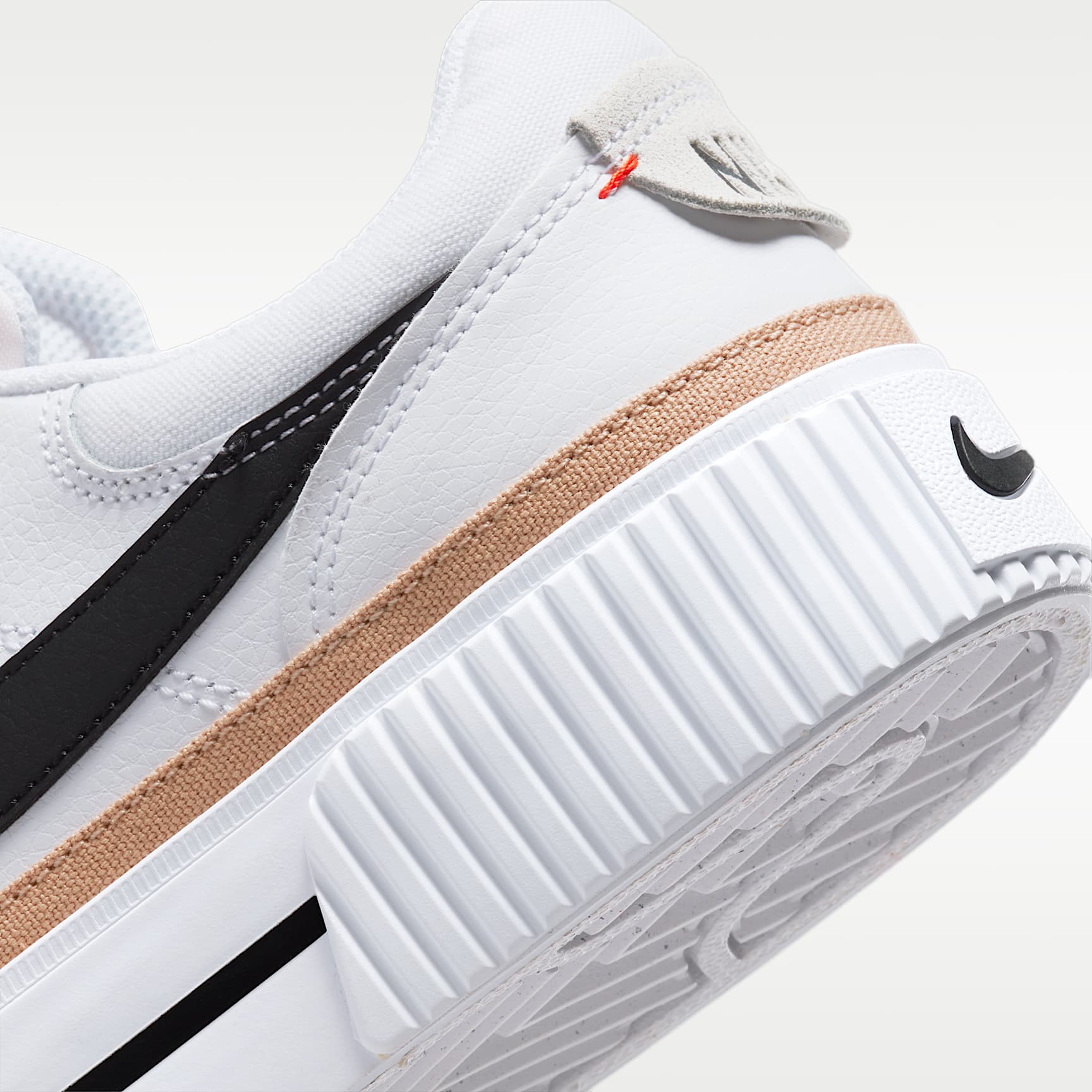 Elevate your style with the Nike Court Legacy Lift. Its platform midsole delivers a bold statement on top of the classic, easy-to-wear design. And don't worry, we've kept the fit you love. Benefits * Subtly layered upper keeps it classic and easy to wear. * Rubber outsole delivers traction and durability. * Padded heel and plush tongue feel soft.