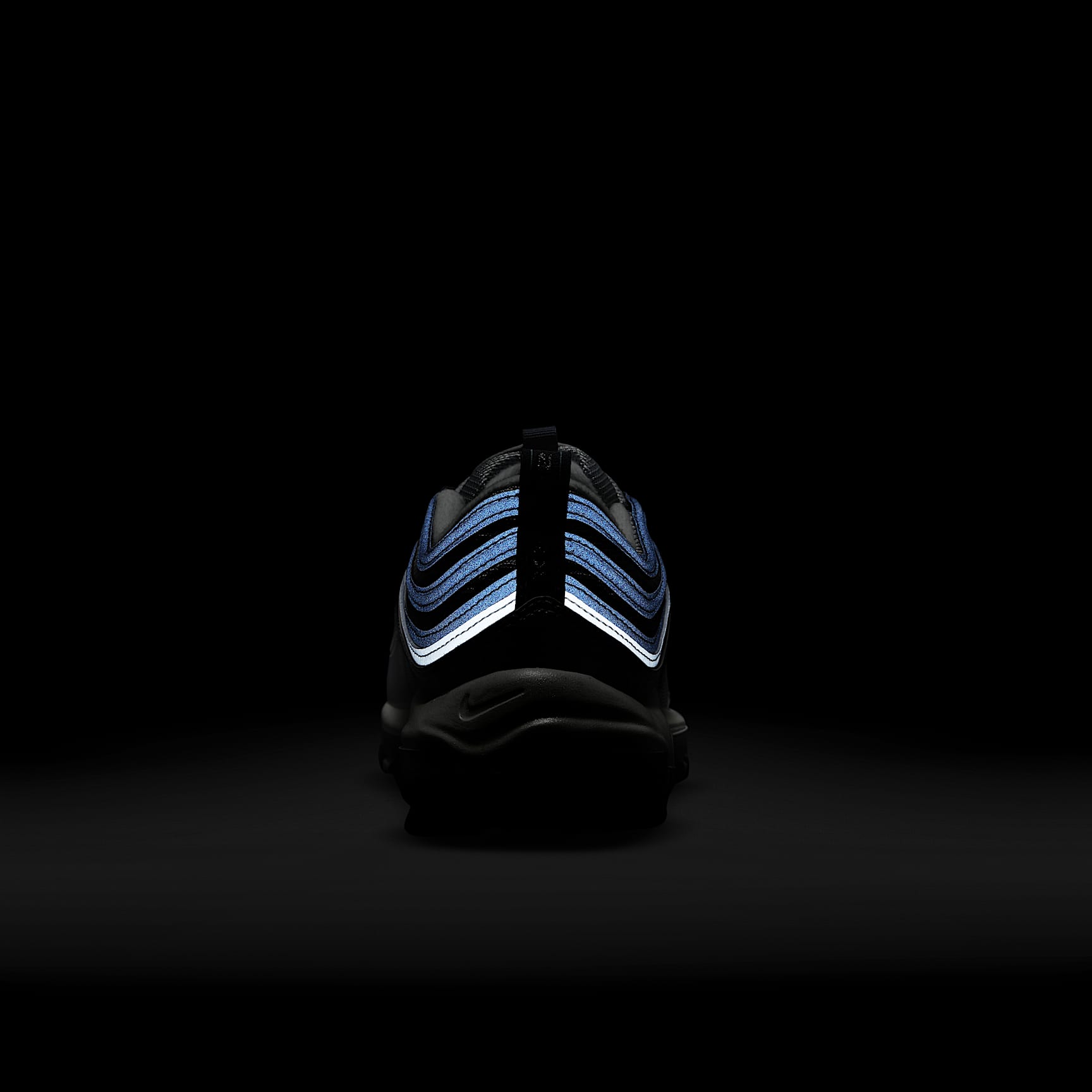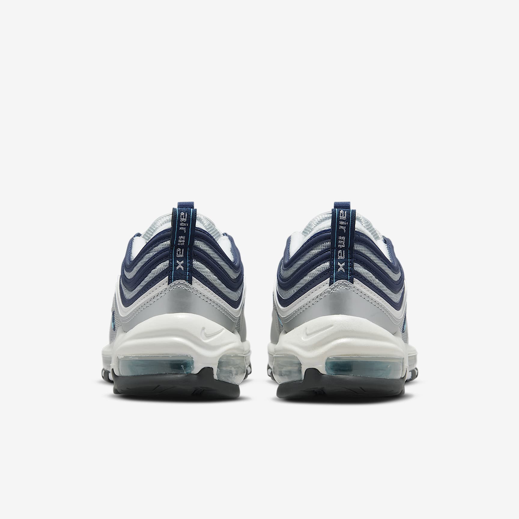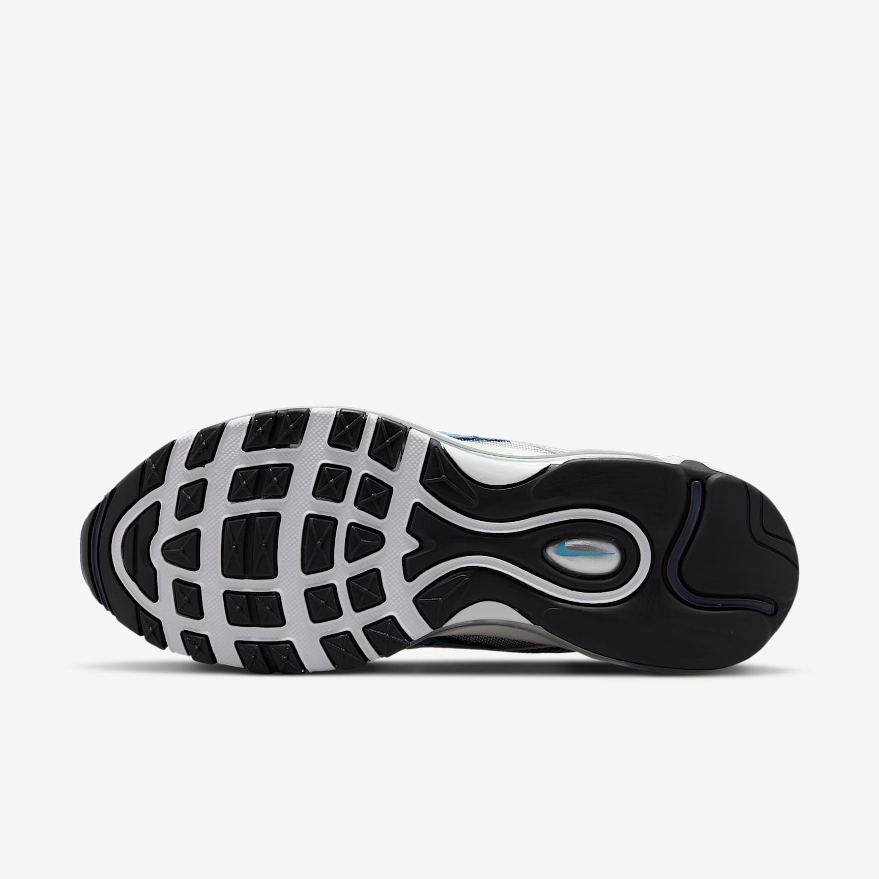 Push your style full speed ahead with the Air Max 97. Its iconic design takes inspiration from water droplets and Japanese bullet trains. Full-length Nike Air cushioning lets you ride in performance comfort. Lace up and ride first class. Benefits * Originally designed for performance running, full-length Air cushioning (the first of its kind) pairs best-in-class comfort with sporty style. * Hidden lacing system delivers a streamlined look. * Foam midsole delivers plush cushioning. * Rubber outsole adds traction and durability. Nike Air Max Origins Revolutionary Air technology first made its way into Nike footwear in 1978. In 1987, the Air Max 1 debuted with visible Air technology in its heel, allowing fans more than just the feel of Air cushioning—suddenly they could see it. Since then, next-generation Air Max shoes have become a hit with athletes and collectors by offering striking colour combinations and reliable, lightweight cushioning.