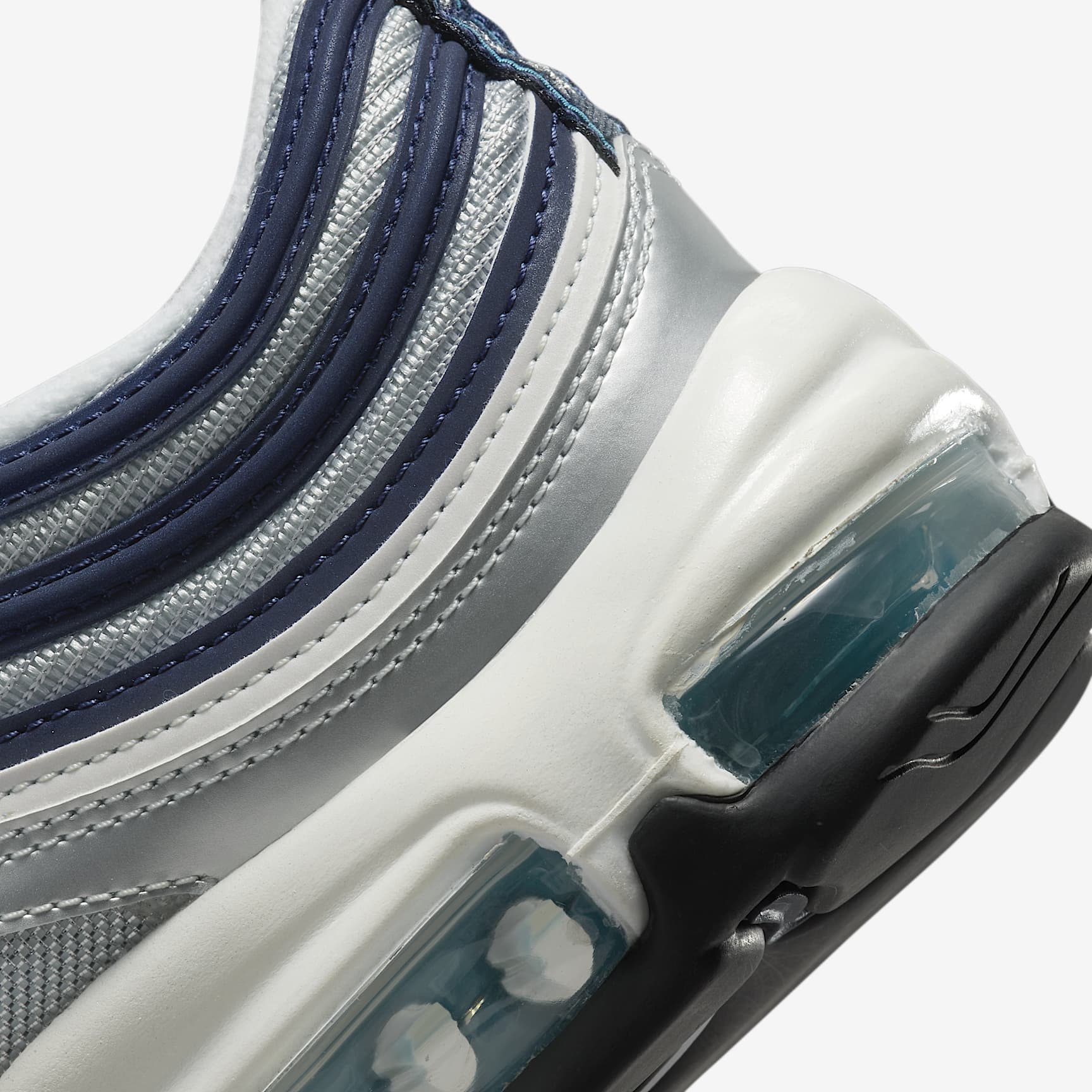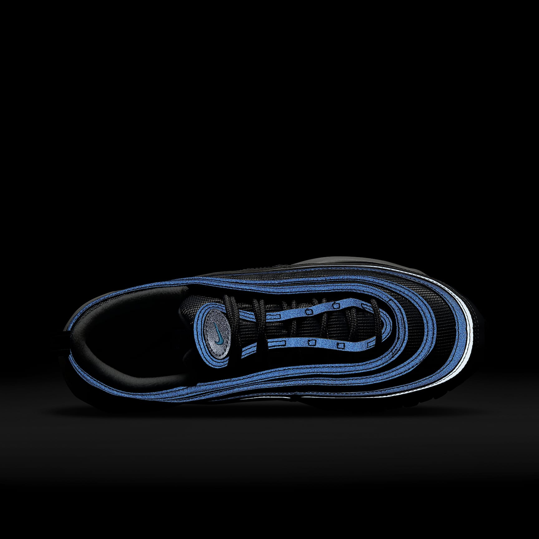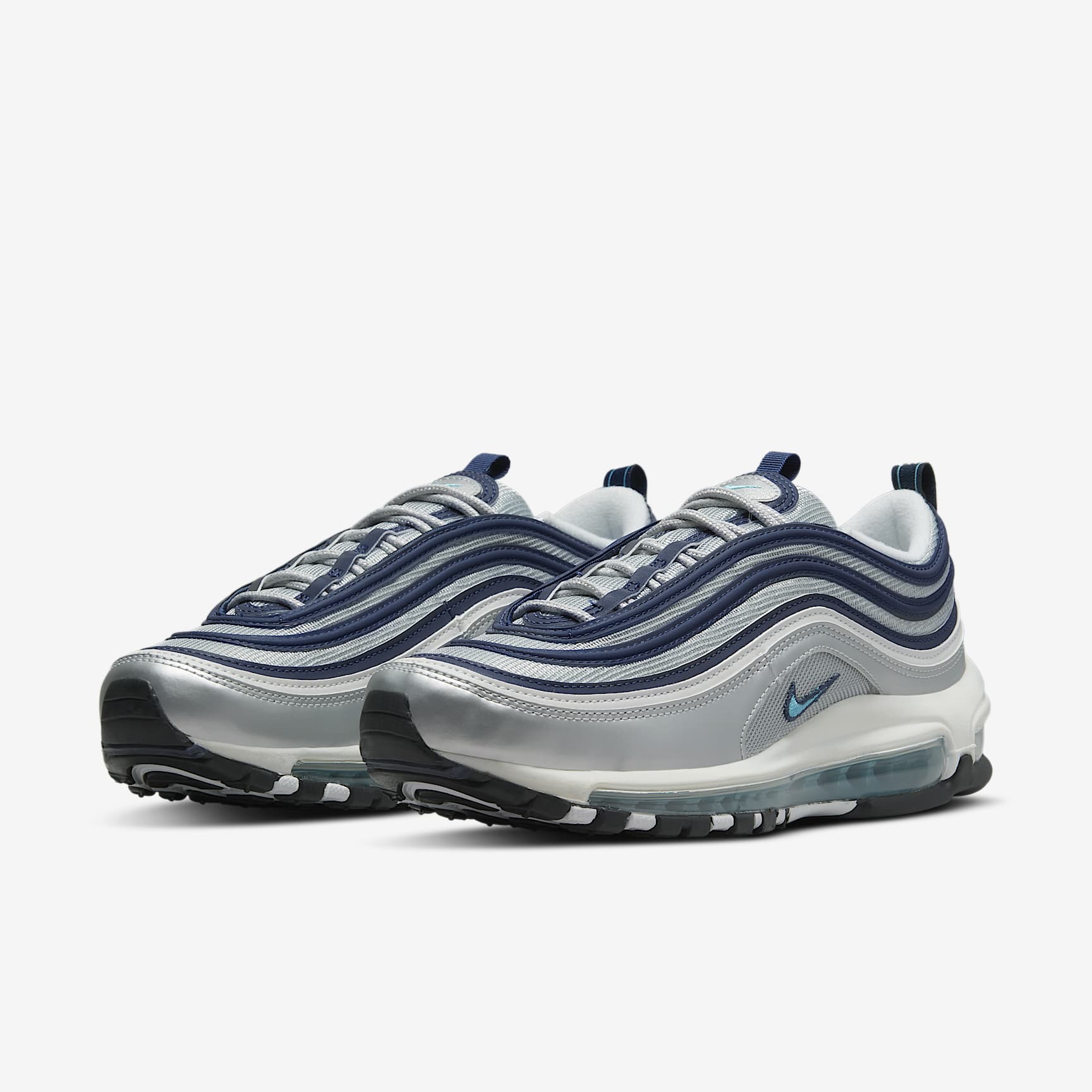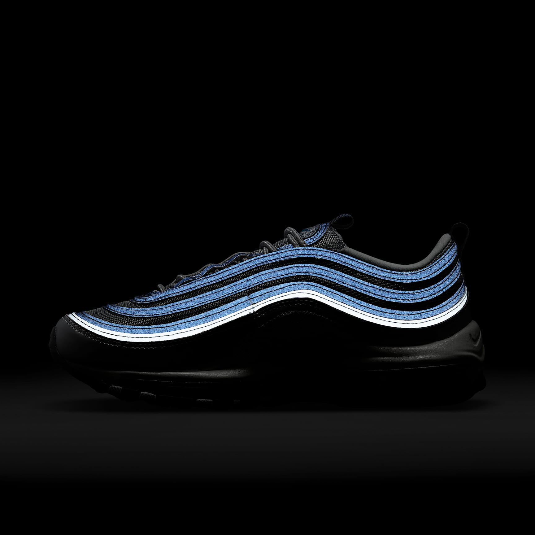 Push your style full speed ahead with the Air Max 97. Its iconic design takes inspiration from water droplets and Japanese bullet trains. Full-length Nike Air cushioning lets you ride in performance comfort. Lace up and ride first class. Benefits * Originally designed for performance running, full-length Air cushioning (the first of its kind) pairs best-in-class comfort with sporty style. * Hidden lacing system delivers a streamlined look. * Foam midsole delivers plush cushioning. * Rubber outsole adds traction and durability. Nike Air Max Origins Revolutionary Air technology first made its way into Nike footwear in 1978. In 1987, the Air Max 1 debuted with visible Air technology in its heel, allowing fans more than just the feel of Air cushioning—suddenly they could see it. Since then, next-generation Air Max shoes have become a hit with athletes and collectors by offering striking colour combinations and reliable, lightweight cushioning.