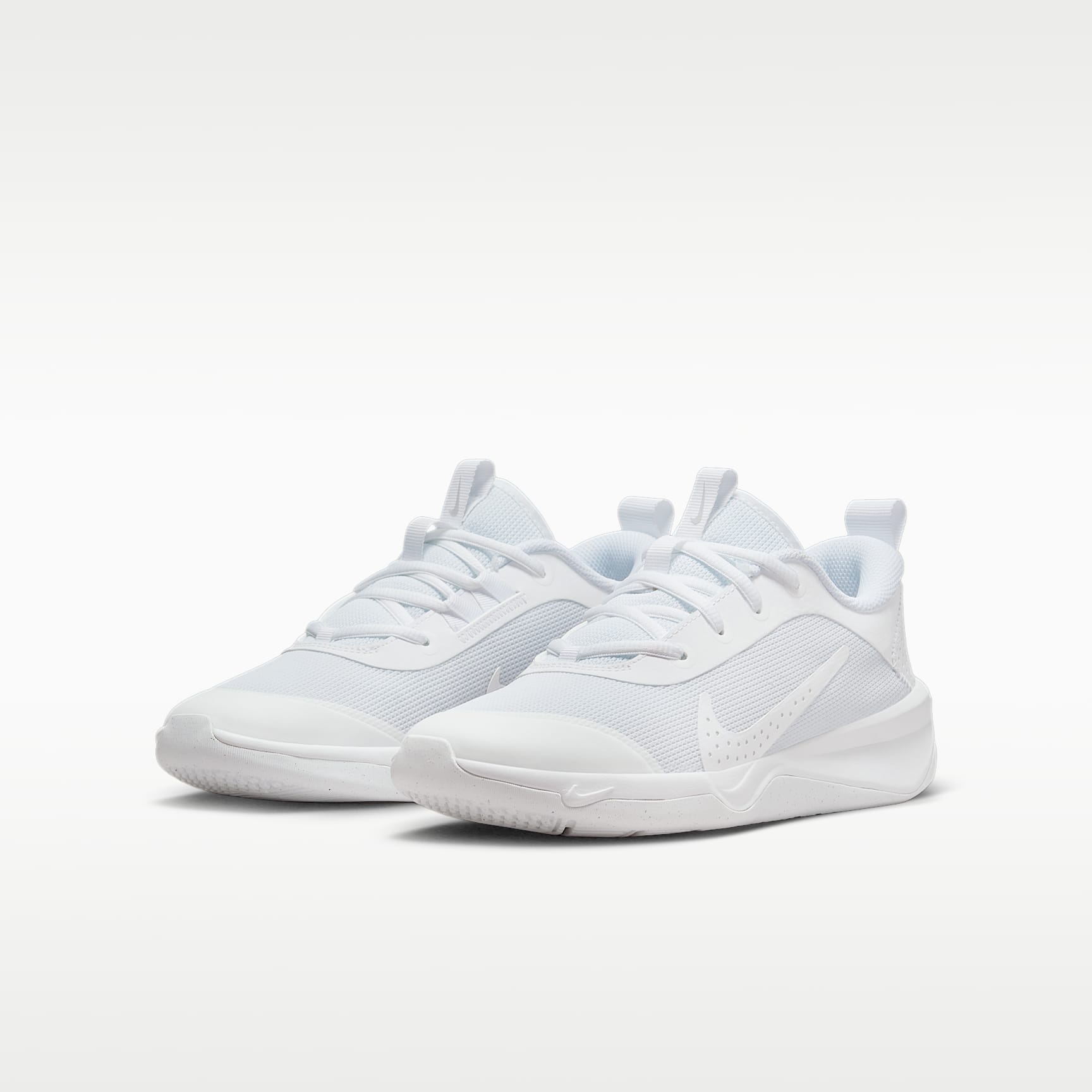 PLAY ANYWHERE, RUN ANY TIME. What's Omni, you ask? It means universal, inclusive and all—like for all your indoor sport needs. Durable and lightweight, they help make moving fast feel easy. Choose their favourite indoor court activity—volleyball, basketball, tennis, handball or PE lessons—and lace up! Play-Ready Traction From indoor volleyball courts to indoor tennis courts, a non-marking rubber sole provides traction. Plus rubber wraps up the sides of the shoes for extra durability. Move In Any Way The shoe's shape is designed to be wide around the heel and forefoot. Super-soft foam lets your feet sit low to the ground to promote more natural movement. Built for All-Day Wear Breathable mesh feels soft and lightweight. A reinforced toe tip helps keep shoes durable for toe-draggers. More Benefits * Cut-outs in the rubber sole create a lighter and more flexible feel. * Synthetic overlays around the heel and eyestays provide extra durability. Product Details * Classic laces