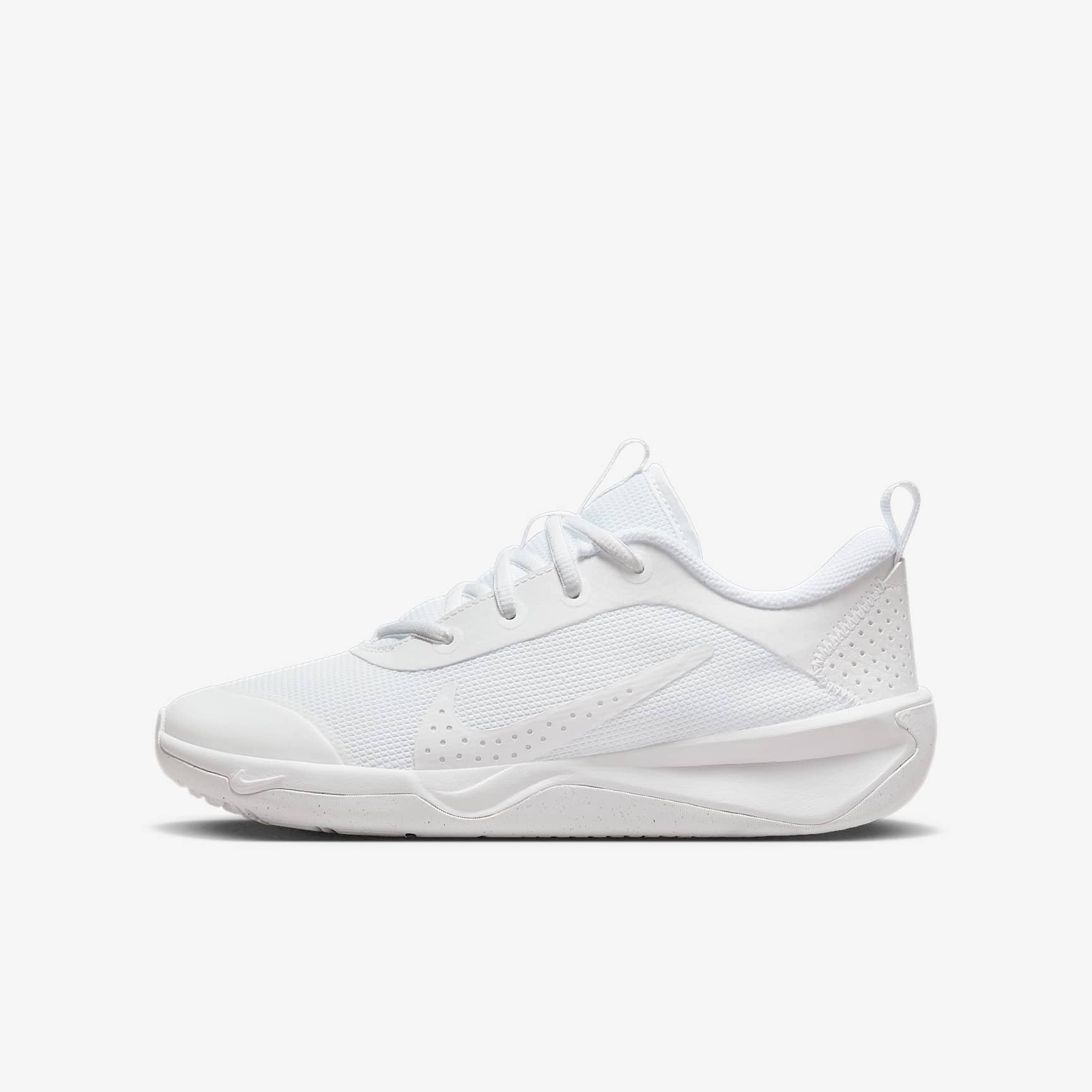 PLAY ANYWHERE, RUN ANY TIME. What's Omni, you ask? It means universal, inclusive and all—like for all your indoor sport needs. Durable and lightweight, they help make moving fast feel easy. Choose their favourite indoor court activity—volleyball, basketball, tennis, handball or PE lessons—and lace up! Play-Ready Traction From indoor volleyball courts to indoor tennis courts, a non-marking rubber sole provides traction. Plus rubber wraps up the sides of the shoes for extra durability. Move In Any Way The shoe's shape is designed to be wide around the heel and forefoot. Super-soft foam lets your feet sit low to the ground to promote more natural movement. Built for All-Day Wear Breathable mesh feels soft and lightweight. A reinforced toe tip helps keep shoes durable for toe-draggers. More Benefits * Cut-outs in the rubber sole create a lighter and more flexible feel. * Synthetic overlays around the heel and eyestays provide extra durability. Product Details * Classic laces