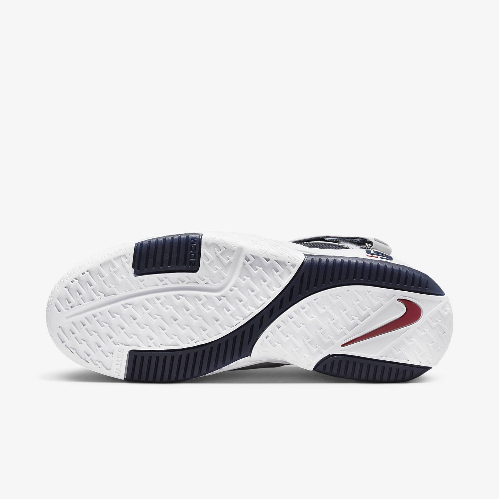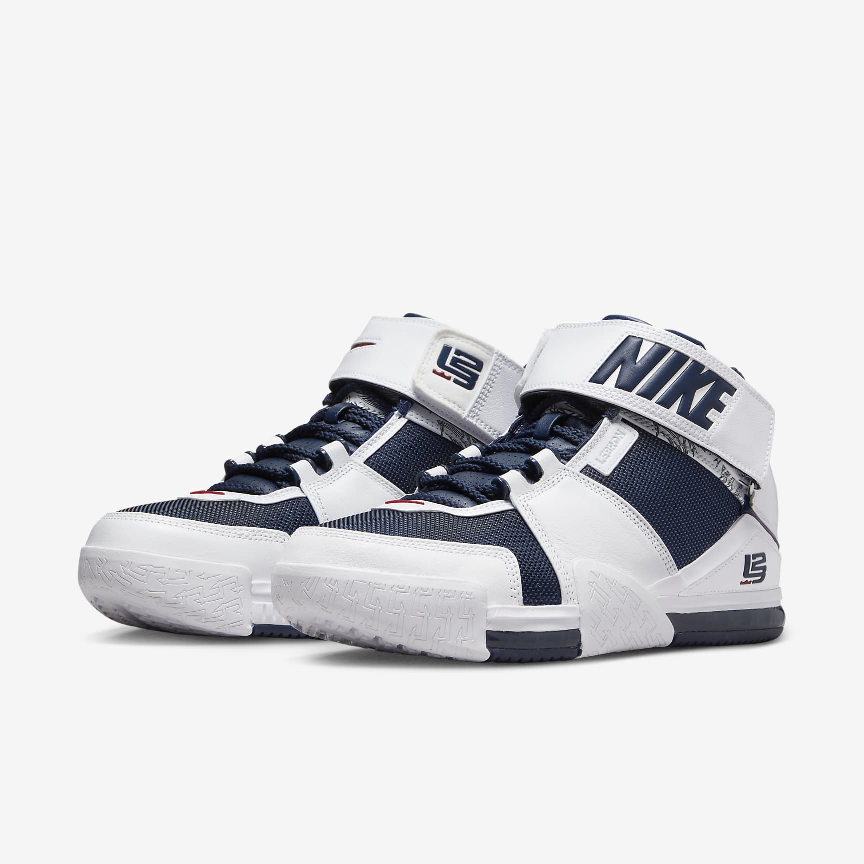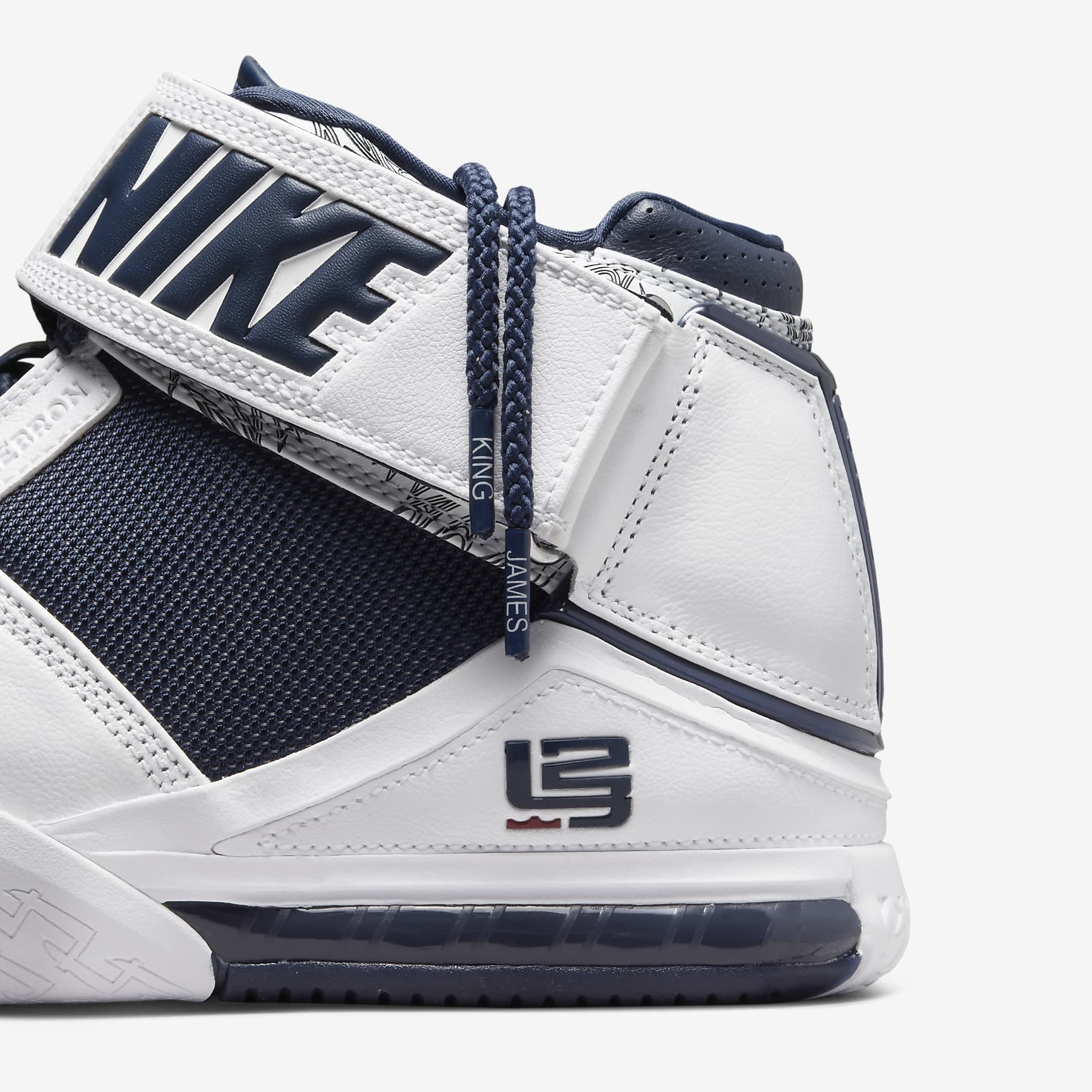 Showcase your game in this 1:1 throwback and celebrate the King's 1st run with the red, white and blue. All-American colours honour the special moment in history—a young LeBron flashing his raw talent—while graphics on the collar and tongue keep the royal detailing you expect. Ballistic fabric on the sides and crisp leather round off the look that shined on the world stage. Benefits * Leather in the upper is smooth and easy to clean. * Padded collar and hook-and-loop strap provide ankle support. * Rubber outsole gives you multi-directional traction.
