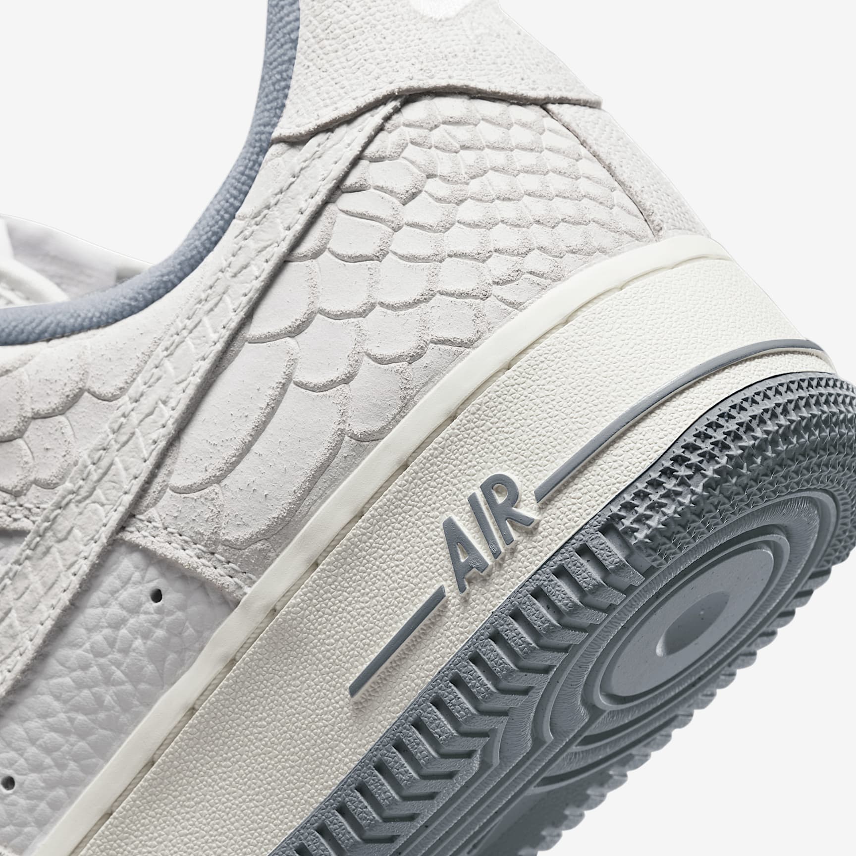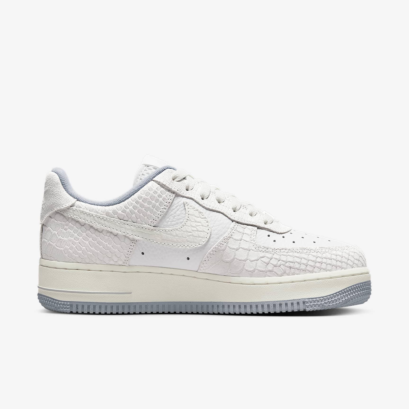 What do a fish, a crocodile and a snake have in common? Style. The Nike Air Force 1 '07 refreshes a hoops original to deliver the perfect amount of wild style. Richly textured white leather embossed with different scaly prints makes these kicks an outfit pleaser. A soft knit lining and hidden Nike Air cushioning bring you the tried-and-tested comfort that helped make the AF-1 so legendary. Benefits * From tough stitching to pristine leather to the cupsole design, these kicks deliver durable style that's smoother than backboard glass. * Originally designed for performance hoops, Nike Air cushioning delivers lasting comfort. * Low-cut, padded collar looks sleek and feels great. * Rubber outsole with heritage hoops pivot circles adds traction and durability. Product Details * Foam in the midsole * Perforations on the toe Air Force 1 Debuting in 1982 as a basketball must-have, the Air Force 1 came into its own in the '90s. The clean look of the classic white-on-white AF-1 was endorsed from the basketball courts to the street and beyond. Finding its rhythm in hip-hop culture, releasing limited collabs and colourways, Air Force 1 became an iconic sneaker around the globe. And with over 2,000 iterations of this staple, its impact on fashion, music and sneaker culture can't be denied.