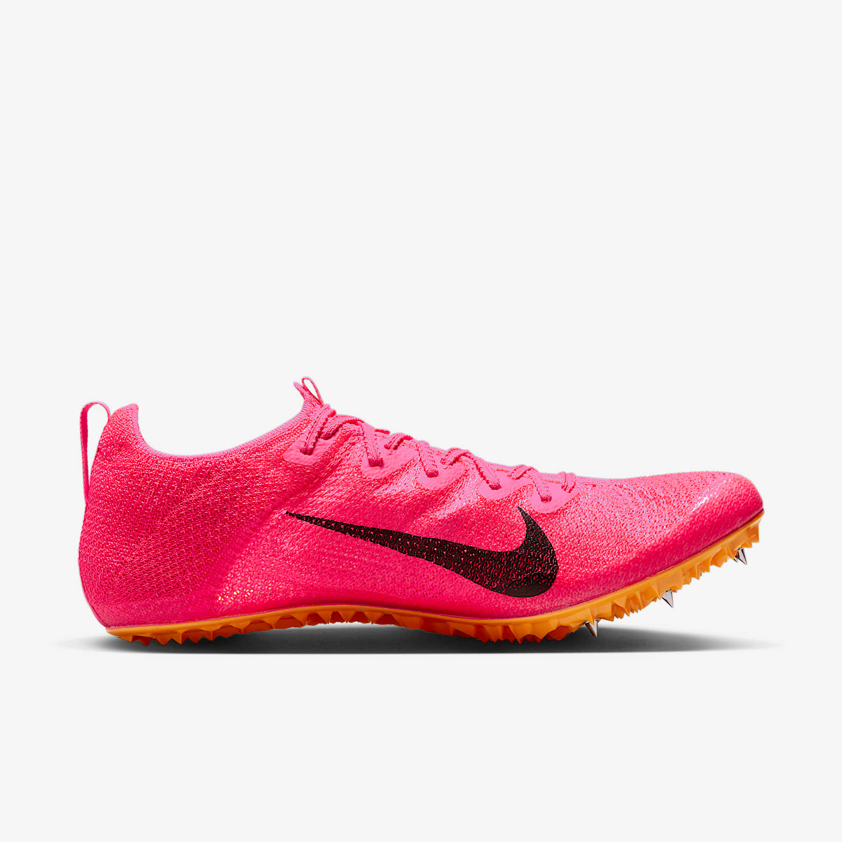 ULTRALIGHT, ULTRA FAST. The Nike Zoom Superfly Elite 2 delivers a high-tech design for the track.Ultra-lightweight fabric helps keep you cool, while a spike plate with 8 removable pins provides grip to power through the finish. Lightweight, Ready to Race Introducing the latest version of Flyknit—AtomKnit.Flyknit fabric is stretched, steamed and set, delivering a lightweight, contoured fit with minimal water absorption and enhanced breathability. Tough Grip The plate's design was created using data from hundreds of runners.The result is an outsole with increased stiffness and reduced weight.Peaks throughout the plate provide traction, giving your foot grip as you run around turns.It includes 8 removable stainless-steel pins to grip the track. Product Details * Ideal for 100m–400m sprinters * World Athletics approved