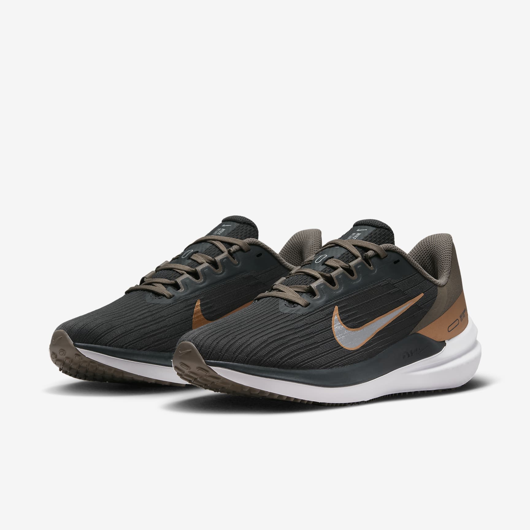 A LIGHTWEIGHT AND SNUG FIT WITH AN ENERGETIC RIDE. The Winflo 9 gives you the support you need to match your speed. It has a secure fit that helps keep your foot in place as the miles go by. We added plenty of foam through the midsole, giving you extra pep to every step. Lace up, lock in, win your goals. Lightweight, Breathable Support The upper uses translucent mesh on the forefoot for breathable comfort. The midfoot band works with the laces to provide more support as you tighten them. Energised Steps We updated the soft foam from the 8, giving you a springier feel that adds bounce to your stride. We used a Nike Air unit for enhanced cushioning and responsiveness from heel to toe. Feet to the Ground A rubber outsole with a Waffle-inspired pattern provides road-ready traction.