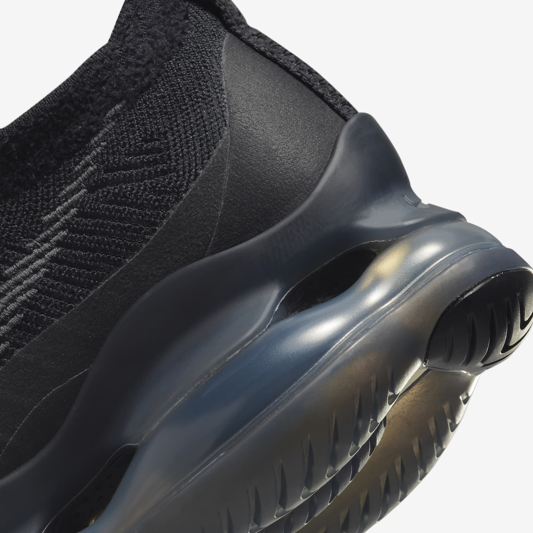 We looked into the future and it's gonna be comfy. Featuring a "point-loaded" Air unit (cushioning that forms to your every step), the Air Max Scorpion Flyknit delivers a futuristic sensation. And because looks count, we've crafted the upper from incredibly soft chenille-like fabric. The Future of Comfort Built around the concept of "point-loading" (designer jargon that simply means great responsiveness and improved comfort), the Air cushioning works in tandem with other components to deliver a new underfoot sensation. Responsible Style The expressive upper pairs super-soft chenille-style fabric with incredibly lightweight Flyknit, striking a balance between fashion and sport. To top it off, we've made it from at least 20% recycled material by weight so you can look good while doing good. Traction to Get You Places A generative design pattern on the outsole improves traction on a variety of surfaces so you can focus on the journey ahead. Product Details * Embroidered details * Beaded branding * Chord eyelets Nike Air Max Origins Revolutionary Air technology first made its way into Nike footwear in 1978. The Air Max 1 debuted with visible Air technology in its heel, allowing fans more than just the feel of Air cushioning—suddenly they could see it. Since then, next-generation Air Max shoes have become a hit with athletes and collectors by offering striking colour combinations and reliable, lightweight cushioning.