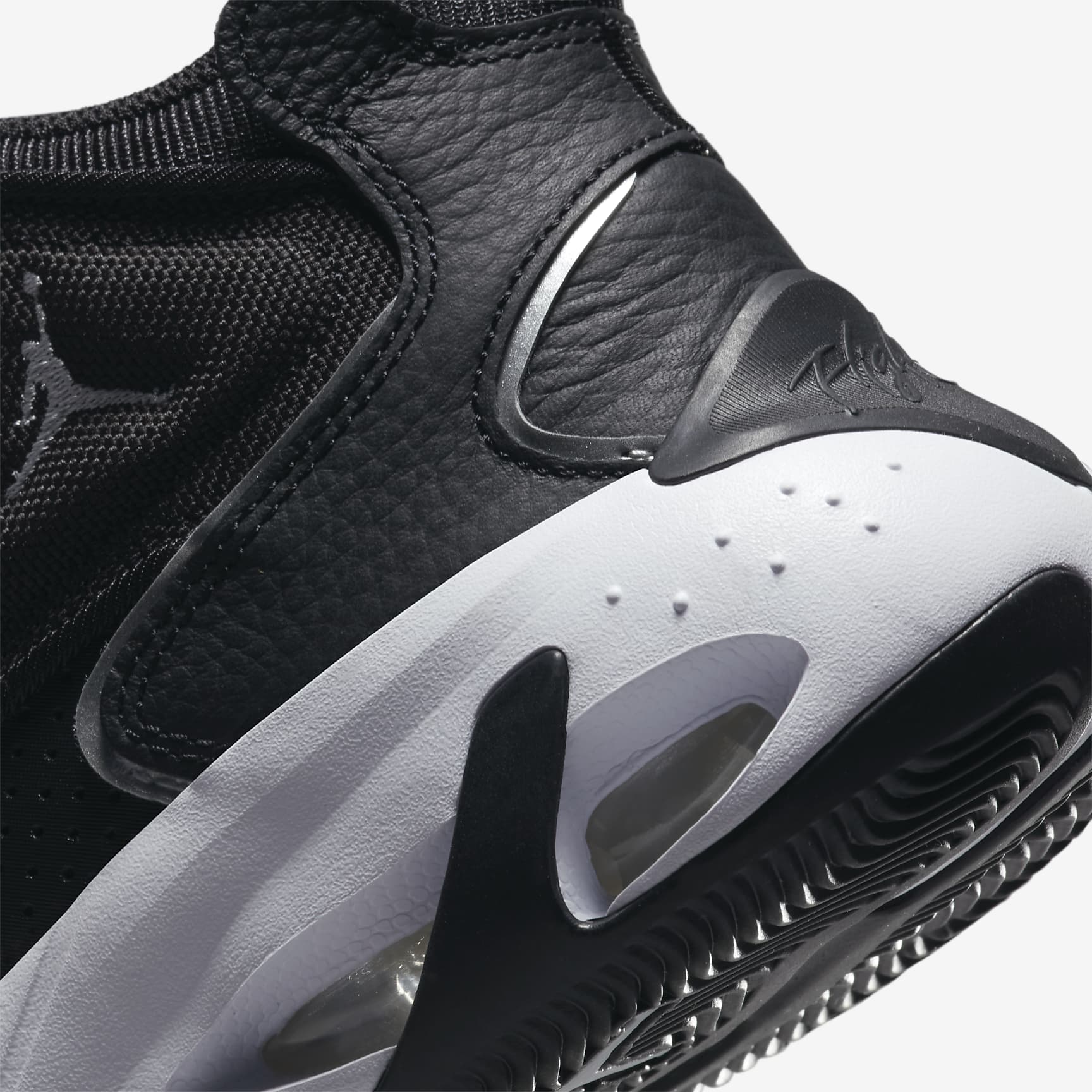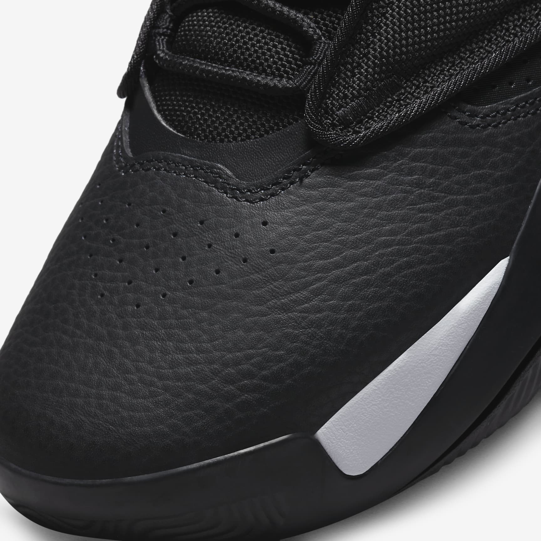 The lightweight cushioning found in this next generation basketball shoe takes cues from its predecessors. Take flight on the court with timeless style and cloud-like heel support. Benefits * Genuine leather, synthetic leather and polyester combine in the upper for exterior cushioning. * Classic branding shows up in moulded details and embroidered graphics. * Visible Max Air unit supplies lightweight impact cushioning and comfort beneath your heel. * Six futuristic waves of tread on the rubber outsole provide multi-surface traction. Product Details * Rubber outsole * Not intended for use as Personal Protective Equipment (PPE)