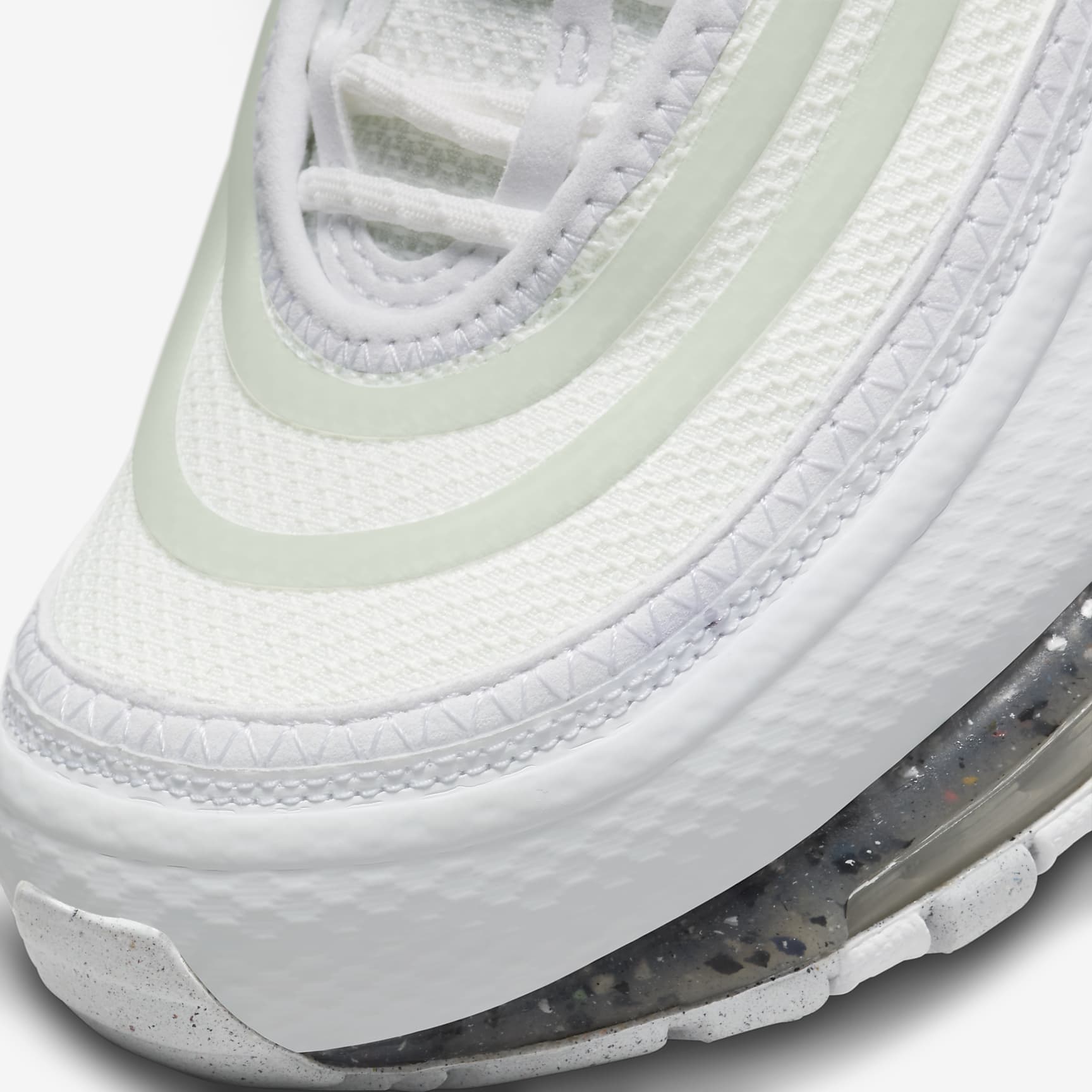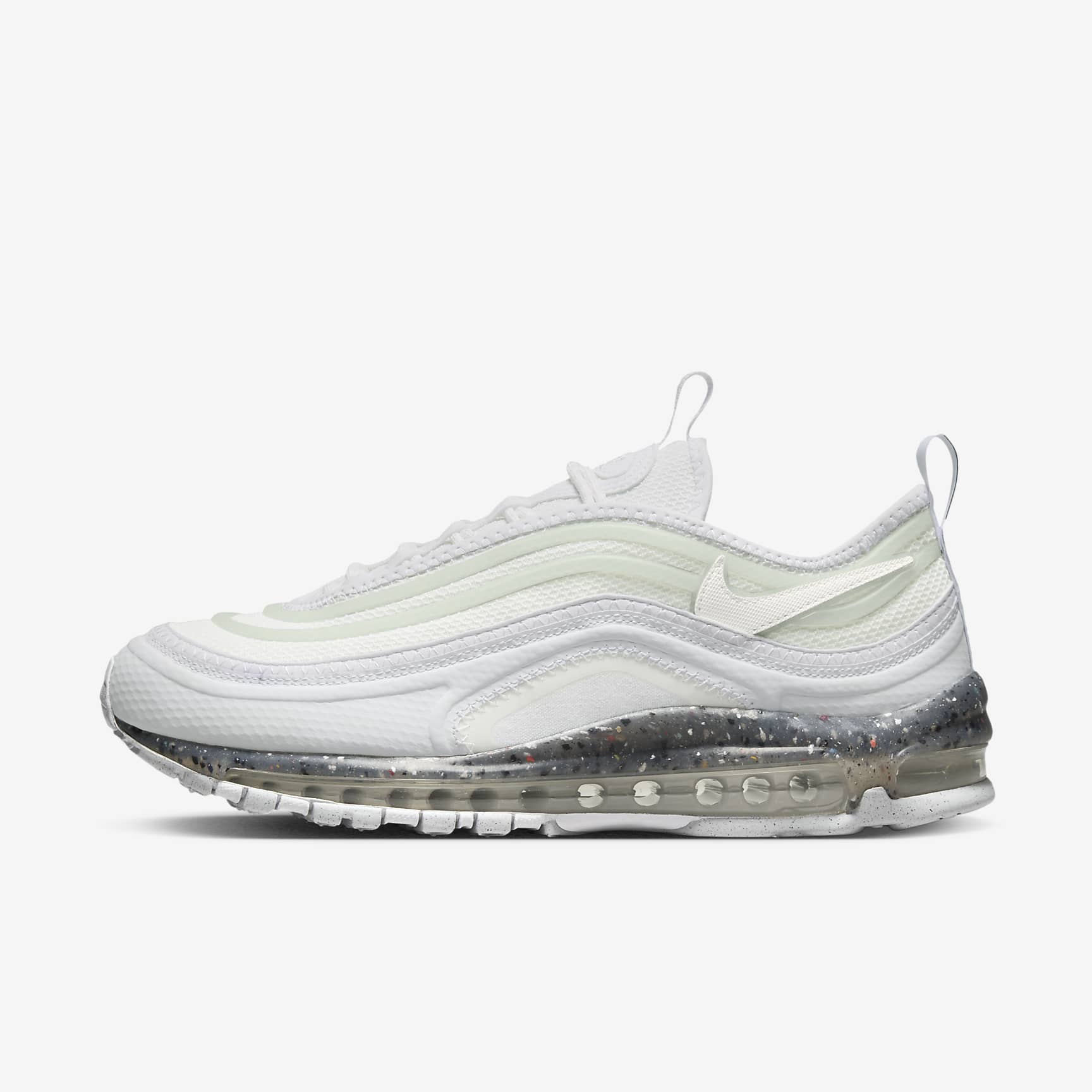 Looking to nature for inspiration, the Nike Air Max Terrascape 97 lets you push your style full speed ahead. Made from at least 20% recycled materials by weight, nearly every detail is thoughtfully crafted with some recycled content. Upping the ante, durable foam in the midsole and rubber on the outsole feature speckled Nike Grind for a playful, earthy look. One Small Step Made from at least 20% recycled materials by weight, no detail is overlooked. From 100% recycled polyester pull tabs to the Nike Grind outsole, the design is one small part of Nike's commitment to help protect the future of sport. Take Them Outside Durable plastic accents in high-wear areas stand up to rough and tough living from the city to the parks. Legendary Look Featuring the original's ripple design that was inspired by Japanese bullet trains and the revolutionary full-length Nike Air unit that shook up the running world, it brings you a flash of the past with tried-and tested comfort. More Benefits * Originally designed for performance running, full-length Air cushioning (the first of its kind) pairs best-in-class comfort with sporty style. * Hidden lacing system delivers a streamlined look. * Foam midsole delivers plush cushioning. * Nike Grind outsole adds traction and durability. Nike Air Max Origins Revolutionary Air technology first made its way into Nike footwear in 1978. In 1987, the Air Max 1 debuted with visible Air technology in its heel, allowing fans more than just the feel of Air cushioning—suddenly they could see it. Since then, next-generation Air Max shoes have become a hit with athletes and collectors by offering striking colour combinations and reliable, lightweight cushioning.