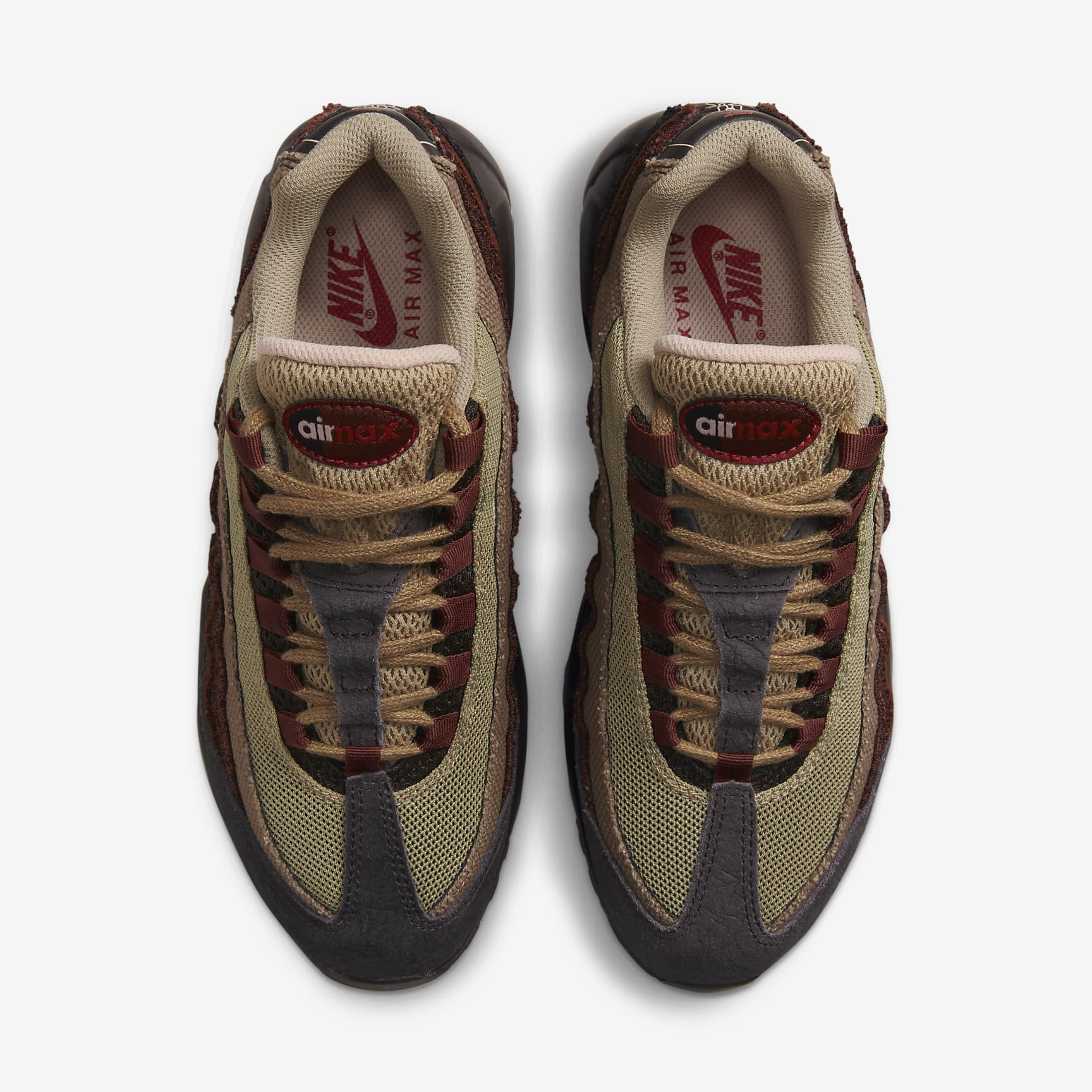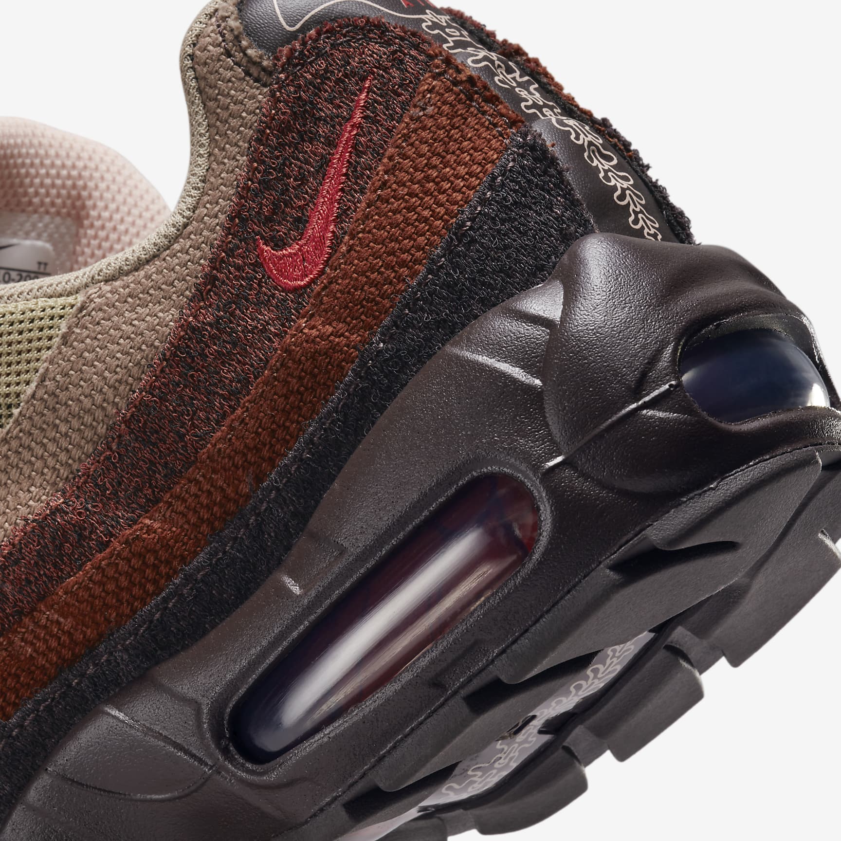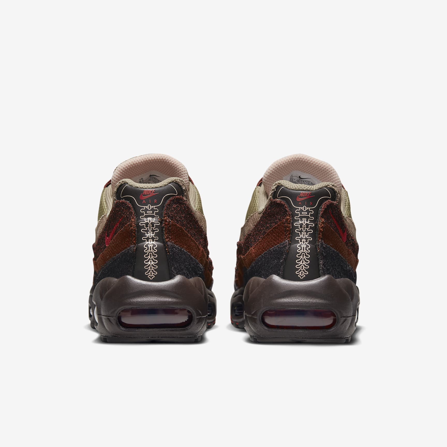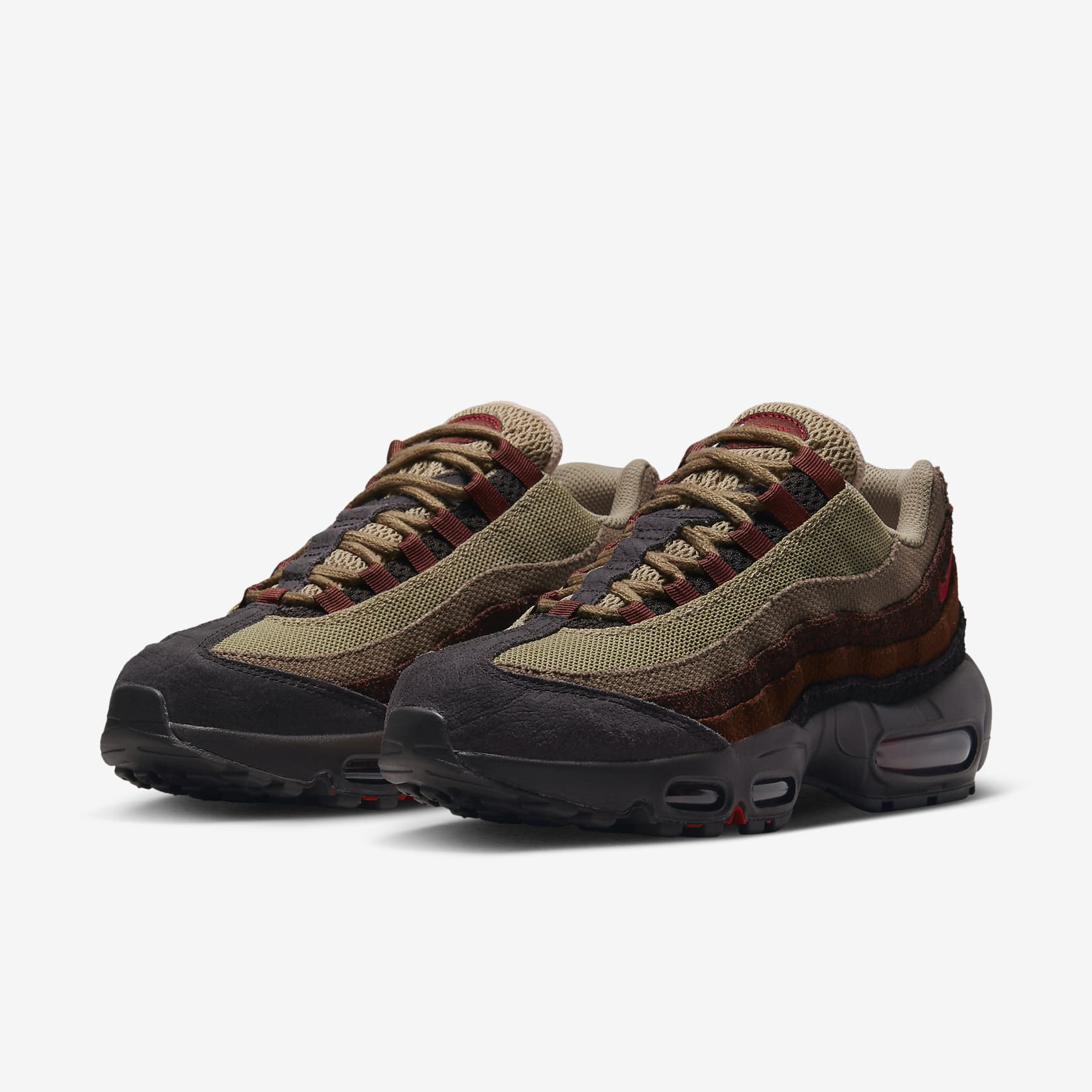 The classic is back. Taking inspiration from the human body and '90s athletics style, the Nike Air Max 95 mixes unbelievable comfort with head-turning design. Wavy side panels add natural flow to any outfit, while warm earthy tones ground your look in rugged style. Plus, Nike Air in the heel and forefoot delivers comfort with every step. Benefits * Upper draws inspiration from the human body—the midsole represents the spine, graduated panels are the muscles and the laces are the shoe's ribs. * Originally developed for performance running, visible Nike Air cushioning delivers lasting comfort. * Breathable mesh upper is reinforced with leather and textile overlays for a ventilated, classic Nike look. * Innovative lacing system adds easy on and off while letting you quickly personalise your fit. * Flex grooves in the outsole help you move freely. Product Details * Foam in the midsole * Rubber outsole Air Max 95 There are layers to the Air Max 95. Sporting a grooved design, these were the first Nike shoes to don a forefoot Air unit. And debuting with a black sole, unheard of at the time, these kicks looked fresh no matter where you stepped.