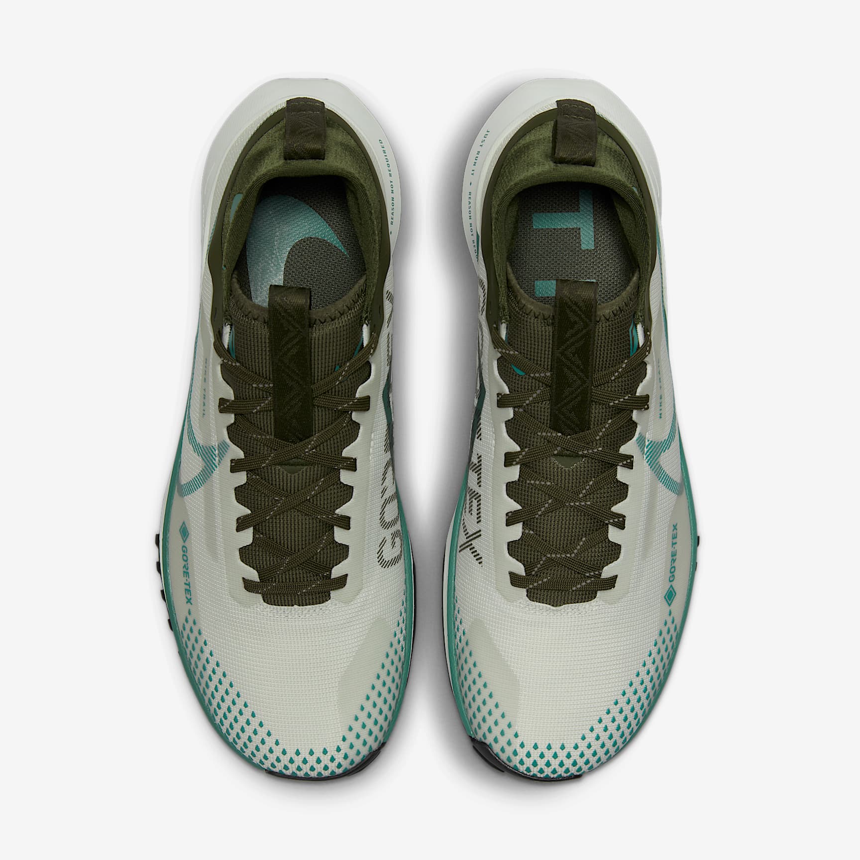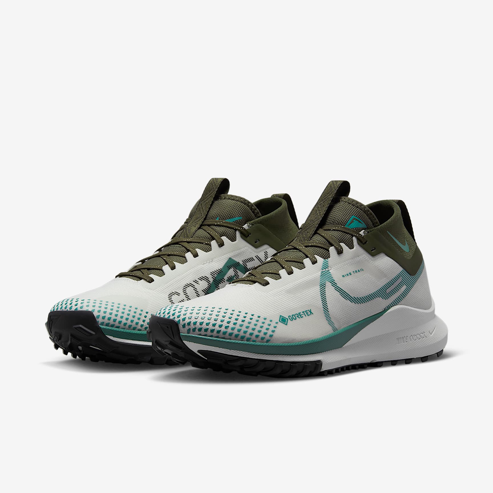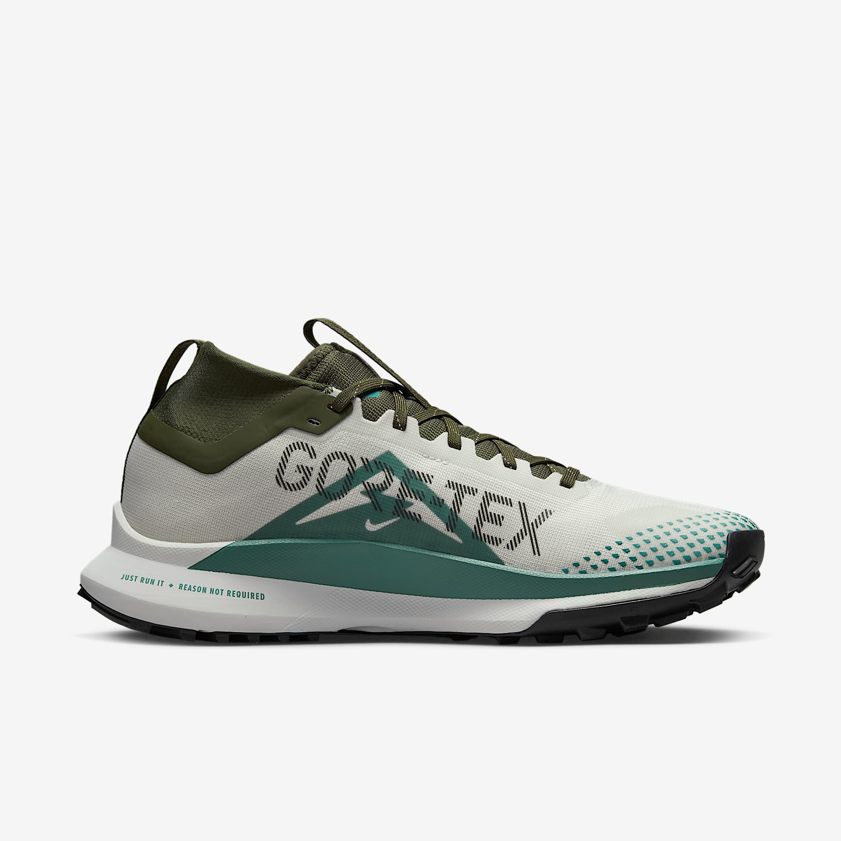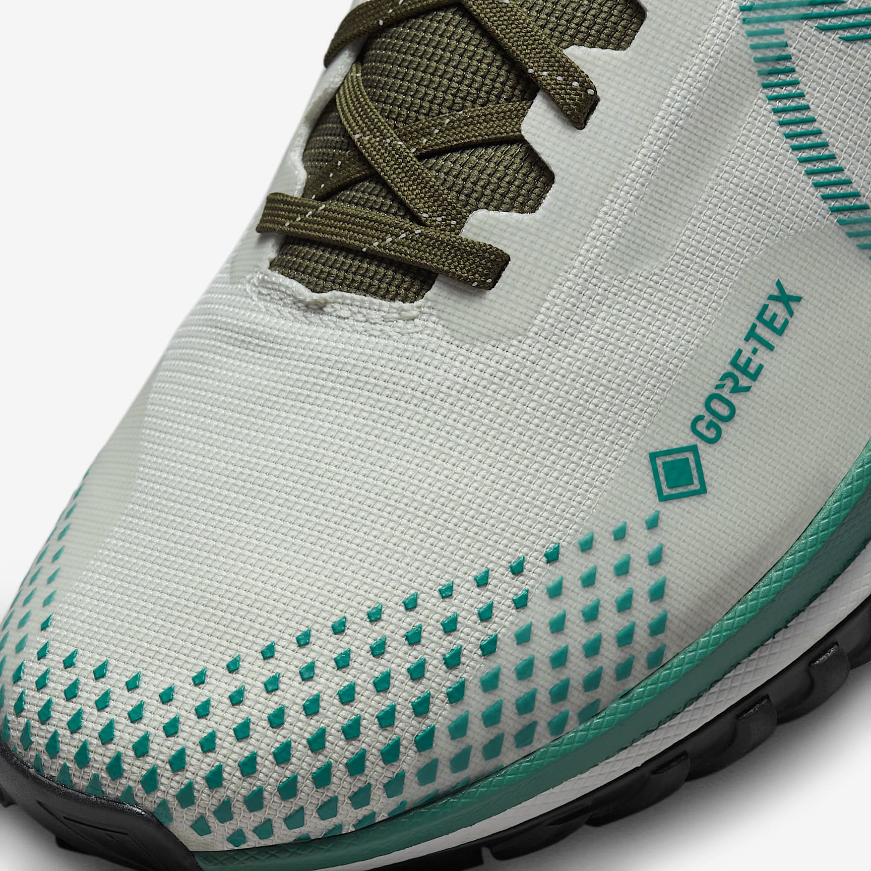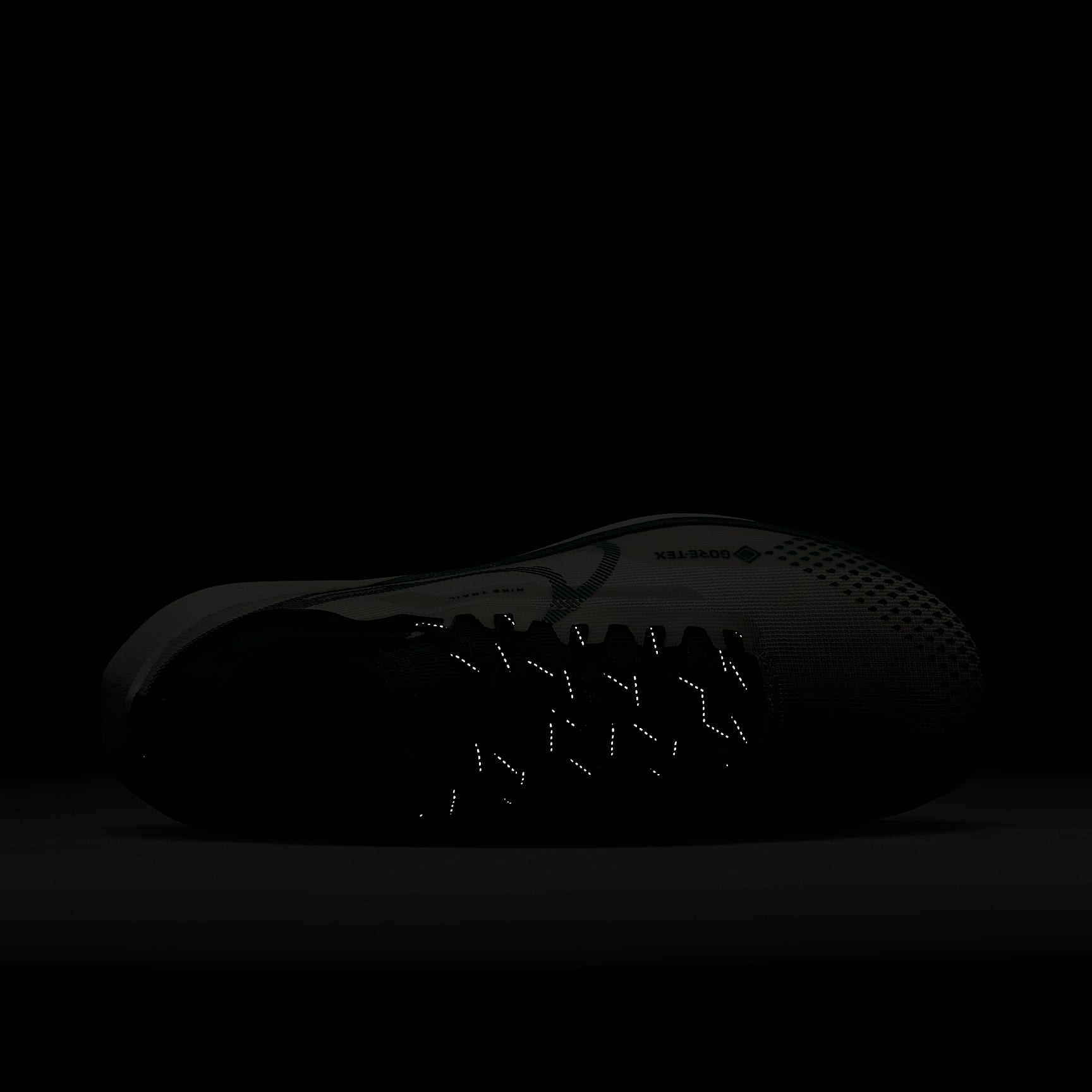 The Nike Pegasus Trail 4 GORE-TEX is made for those moments when you don't want to turn back, no matter what. Feel confident in even the most unforeseen weather conditions with waterproof GORE-TEX helping you stay dry. Plus, a higher ankle gaiter gives you extra coverage to help keep water out. Responsive Nike React foam lets you take your wet run from the road to the trail without breaking your stride. Storm Ahead A GORE-TEX layer helps keep water out so your feet stay dry while a higher gaiter at the collar helps keep extra debris and water from getting inside your shoe. GORE-TEX's invisible fit along the upper provides protection from precipitation without sacrificing the comfortable feel of the Pegasus Trail. Its flexible, lightweight design keeps your foot dry when running between the wet roads and trails. Smooth and Stable Nike React technology is a lightweight, durable foam that delivers a smooth, responsive ride. Its full-length design provides stability as you brave rocky terrain. Traction In All Directions Less rubber along the outsole creates a smoother transition from road to trail. The rubber wraps around the front of the shoe for extra durability. Its generative traction pattern is combined with rubber nubs to give you grip when going uphill or downhill. A generative traction pattern combined with rubber provides extra grip for technical trails while maintaining a smooth ride for the road. Product Details * Pull loops on the heel and tongue * Reflective design elements * Not intended for use as Personal Protective Equipment (PPE)