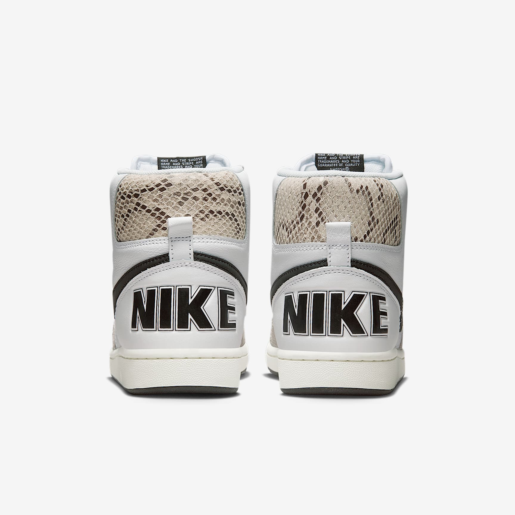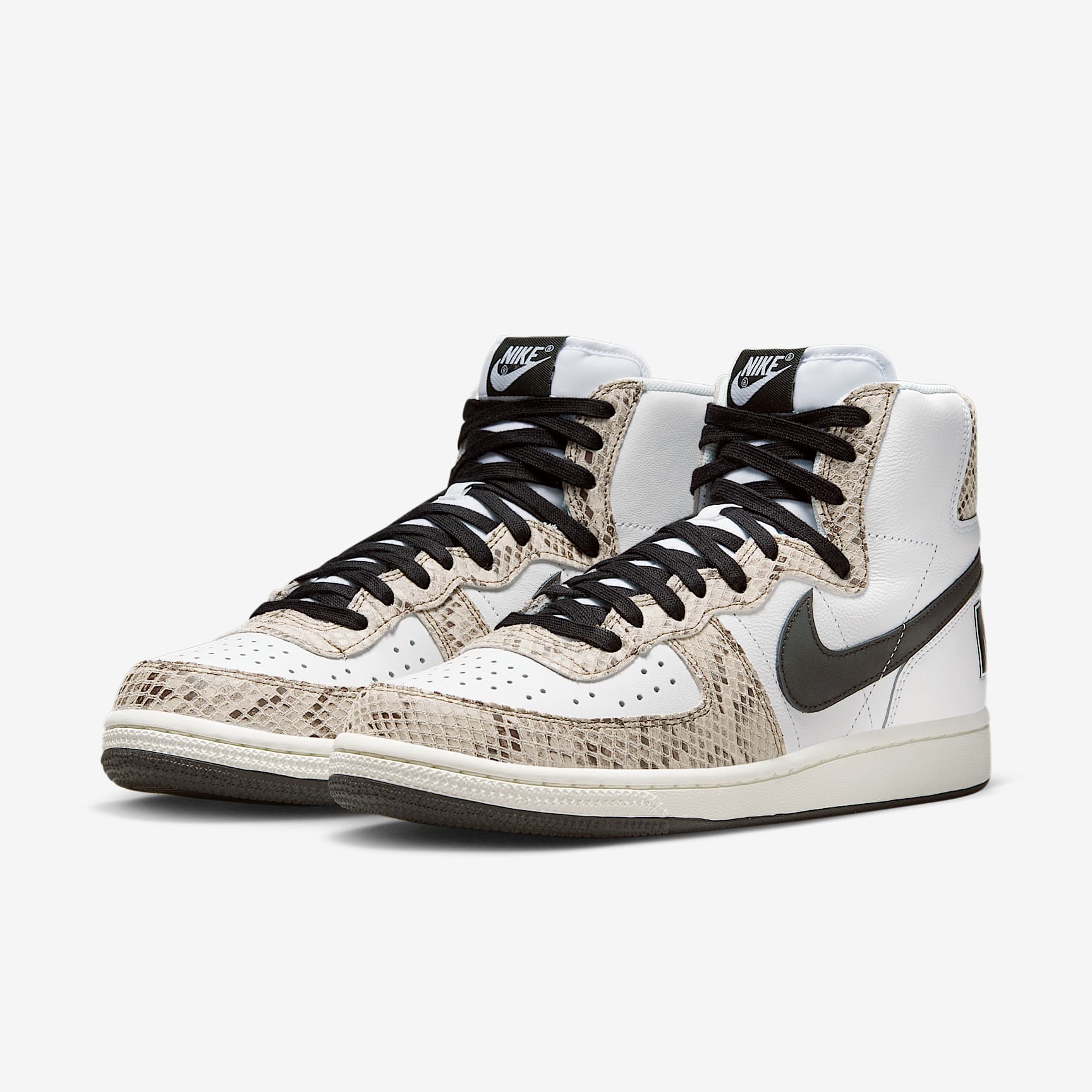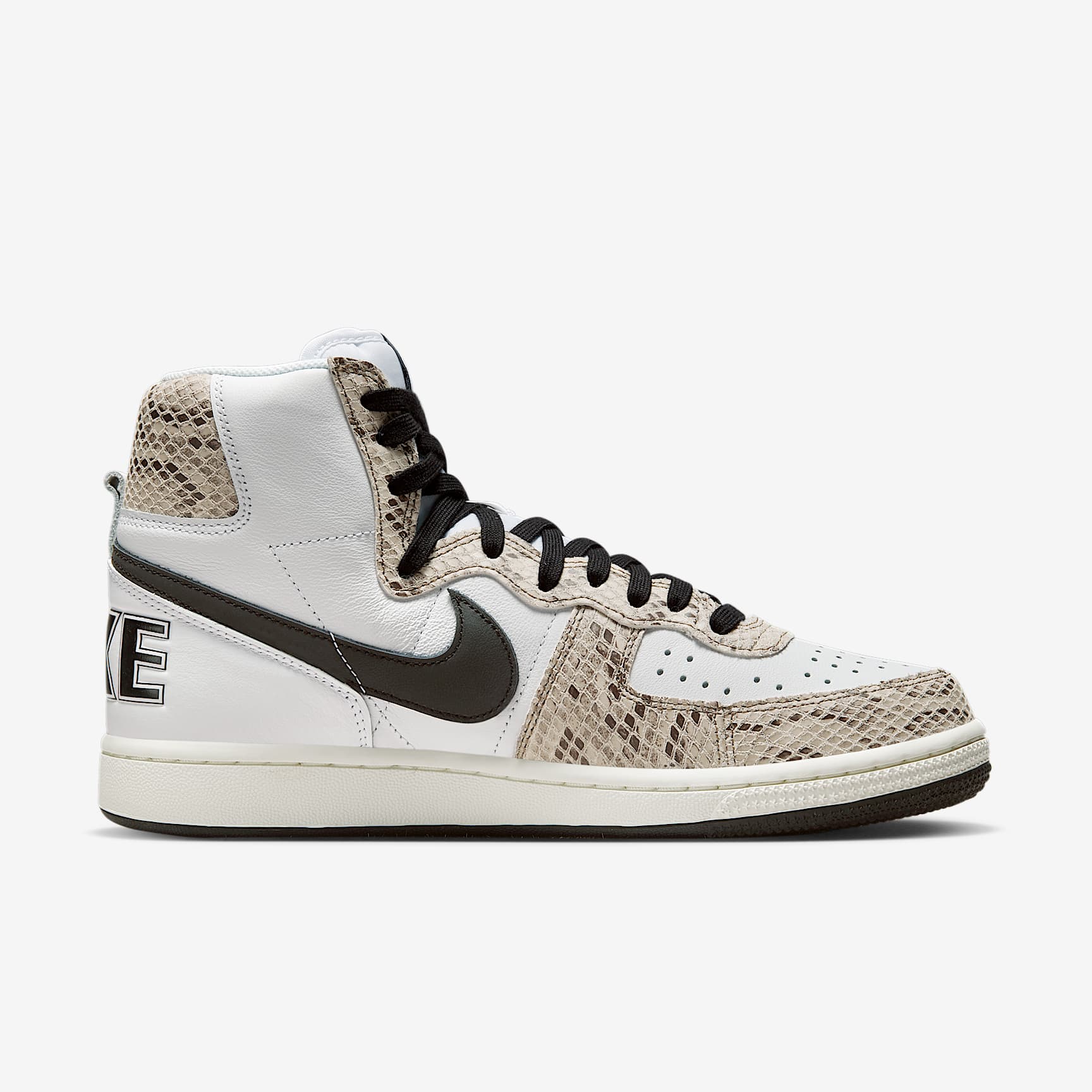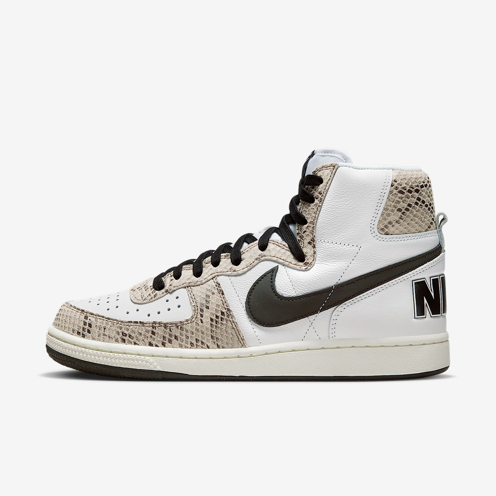 Untouched, unaltered and straight from the vault—you get the picture. The Terminator High lets you step back to the era of hook shots, knee pads and calf-high socks. Returning to the '85 original (the 1st signature school shoe by Nike), the throwback look goes a little wild with snakeskin-print overlays. And let's not forget the retro branding—delivering a big varsity finish. It's game time! Benefits * Tough leather on the upper stands up to the demands of your day. * Padded, high-top collar adds an old-school look that feels great. * Rubber outsole provides durable traction. Product Details * Perforations on the toe * Traditional lacing